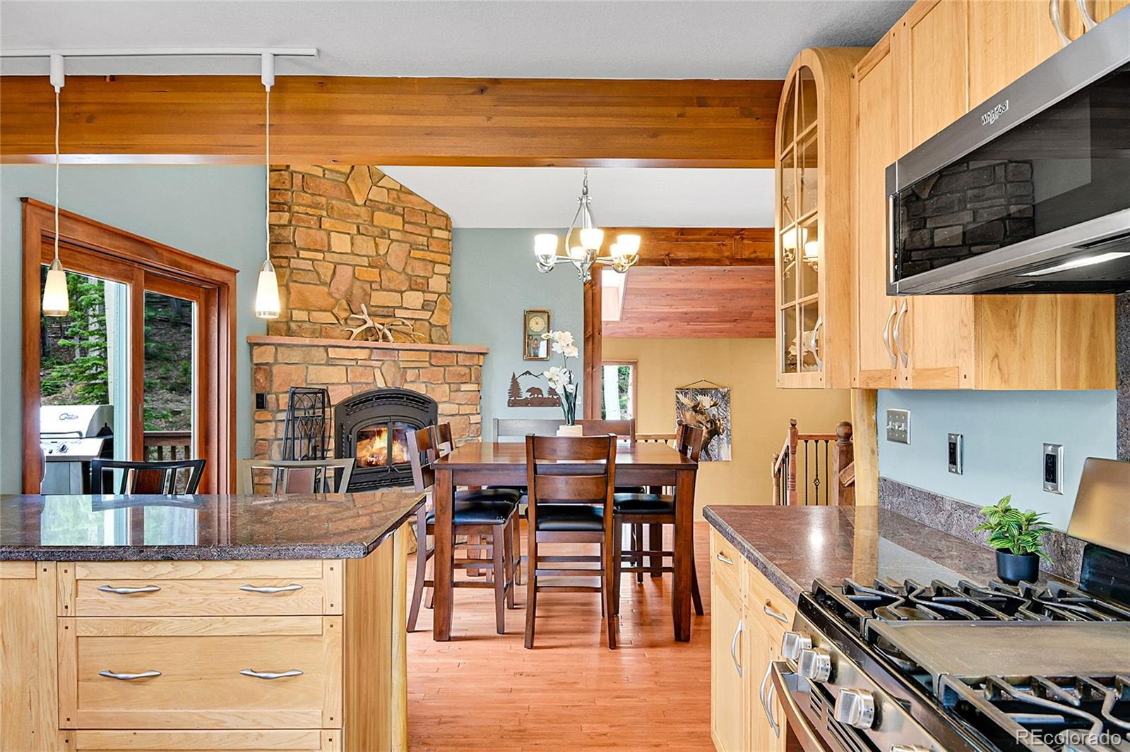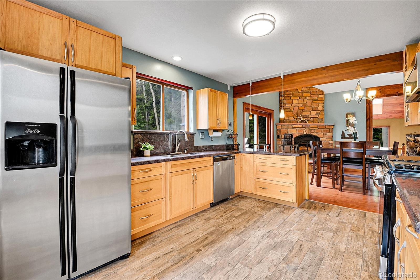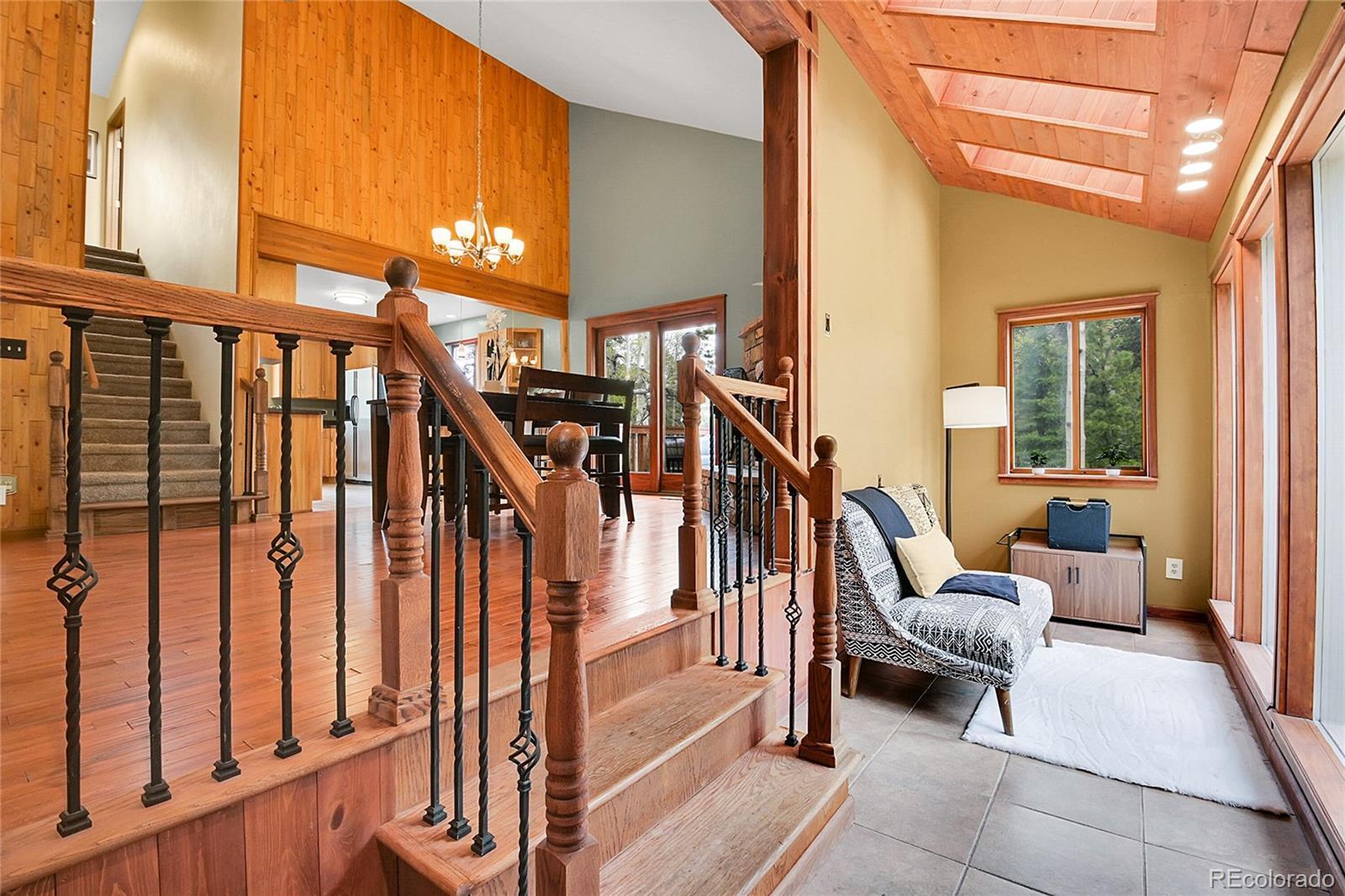 Welcome to your private mountain sanctuary nestled on 5 gentle, usable acres of pristine land. This stunning property offers the perfect blend of modern comfort and natural serenity, featuring an open-concept main level with soaring ceilings that flood the space with natural light. The recently renovated kitchen and bathrooms are complemented by brand-new flooring throughout. Upstairs, discover generously sized bedrooms with vaulted ceilings and abundant windows. You'll love the view of the snowcapped peaks from the primary bedroom. The property includes a massive, detached garage/shop with oversized doors - perfect for RV storage or creating your dream workshop - complete with a large air compressor and enough height for a lift. Above the garage is a bonus recreation room ideal for entertainment or escape. Recent 2025 upgrades include a new roof on both the house and garage, a new energy-efficient furnace, and modern sliding glass doors throughout. High-speed internet is available via Clear Creek broadband. Experience the tranquility of nature with frequent wildlife visitors and complete privacy from neighboring properties. Would you like to schedule a private viewing to experience this perfect balance of modern living and mountain serenity?