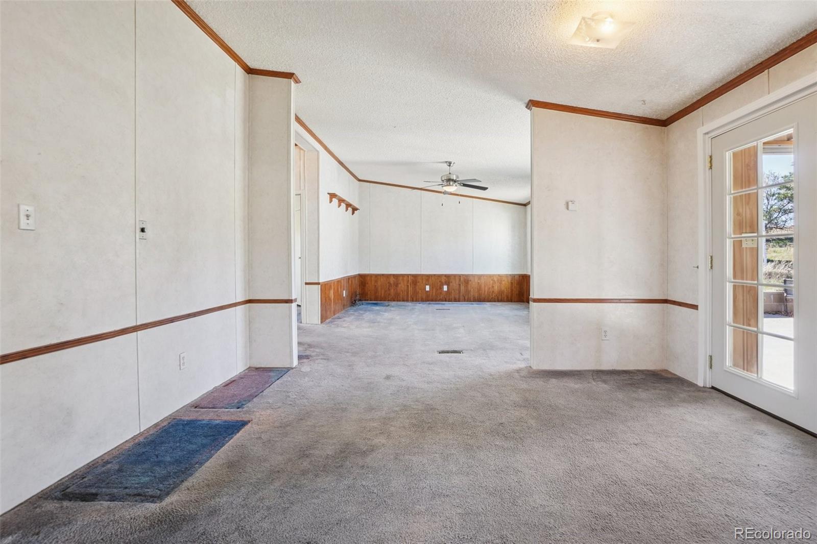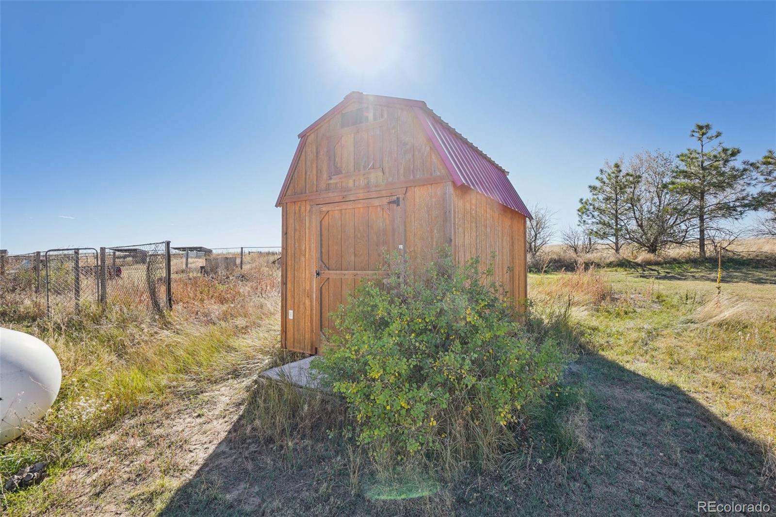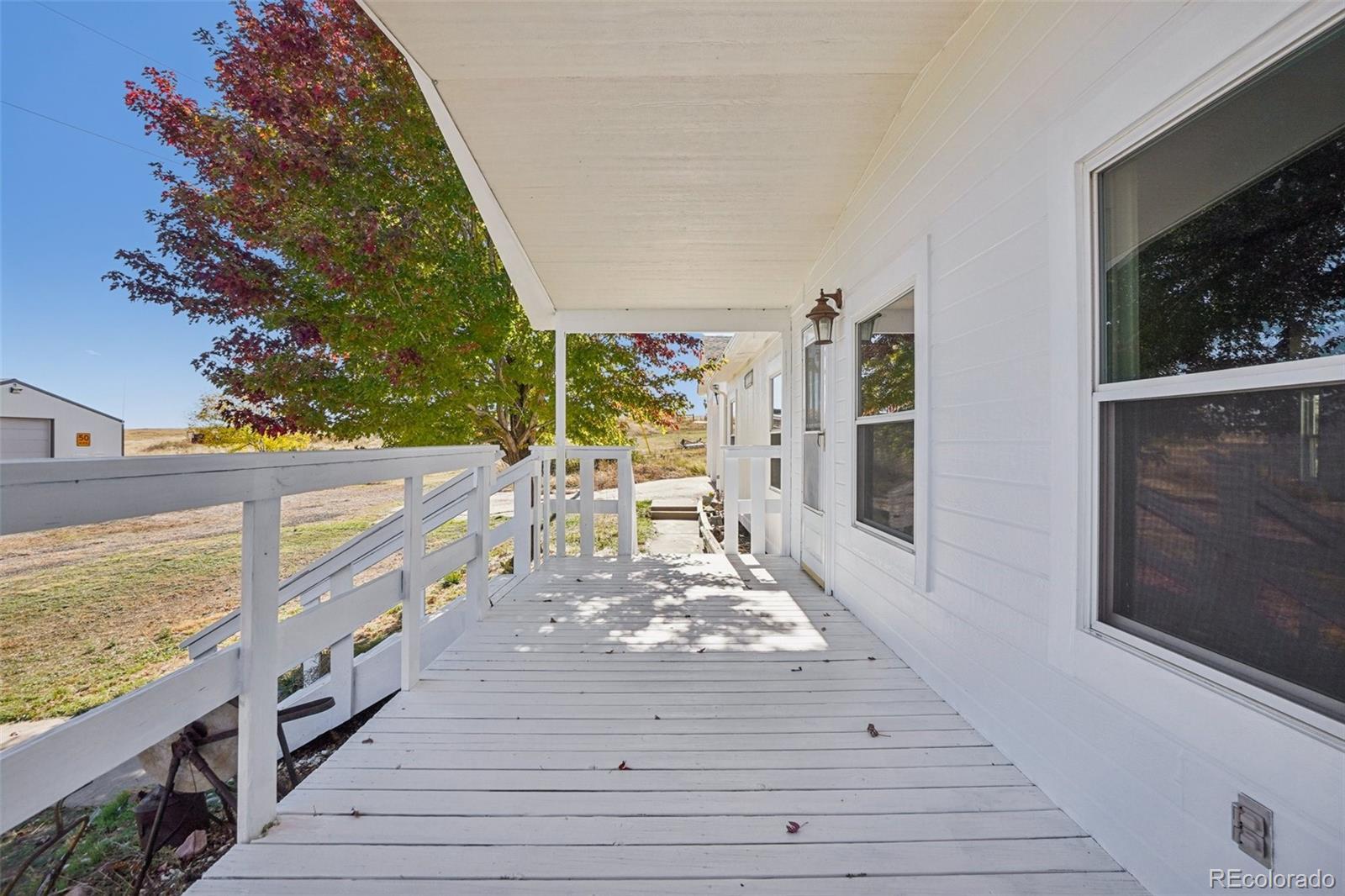 Welcome, this is not just a home, it is a lifestyle. This beautiful 35-acre property in Elbert County offers mature trees, privacy, and endless potential. This 1994 manufactured home spans 1,928 sq ft and features 3 bedrooms, 2 baths, two living spaces, a generously sized kitchen with plenty of counter and cabinet space, and a large sunroom addition with a wood stove, window AC, and a hot tub. Just outside the sunroom is a patio with a retaining wall, perfect for a morning cup of coffee or stargazing. The exterior has been newly painted, all windows have been replaced, new roof, and the 500-gallon propane tank is owned. The five-piece primary bath includes a walk-in shower and a jacuzzi tub. The bones are solid, and the systems are in place. A fresh coat of interior paint and new flooring will make this home shine. Step outside to enjoy the stunning, mature trees, ponderosa pines, blue spruces, and maples, plus a covered front porch with both stairs and a ramp. The land is fenced and cross-fenced with north and south pastures, multiple corrals, and alleyways for easy trailer access. The 32x48 insulated shop is a dream workspace with 12-ft walls, 11’6” door, two welding circuits, 16x16 loft mezzanine, urinal/sink, wood stove, heater, and swamp cooler, and cement floors; it even fits a 30-ft RV. The car lift will stay with the shop. The detached 24x28 garage offers two doors (7’ and an oversized 8’), a welding circuit, and its own wood stove. A 10x12 shed with electricity and a loft adds bonus space. You’ll also find a 12x20 stage/hay structure. The well house (8x8 cinder-block) includes the pressure tank, electricity, and could double as a storm shelter. This property offers RV parking, corrals with 220 power and water, and room to create your dream arena or expand the homestead. After 30 years of thoughtful care and growth, this peaceful property is ready for its next chapter. Enjoy rural living, privacy, and endless opportunity, all just outside Deer Trail.