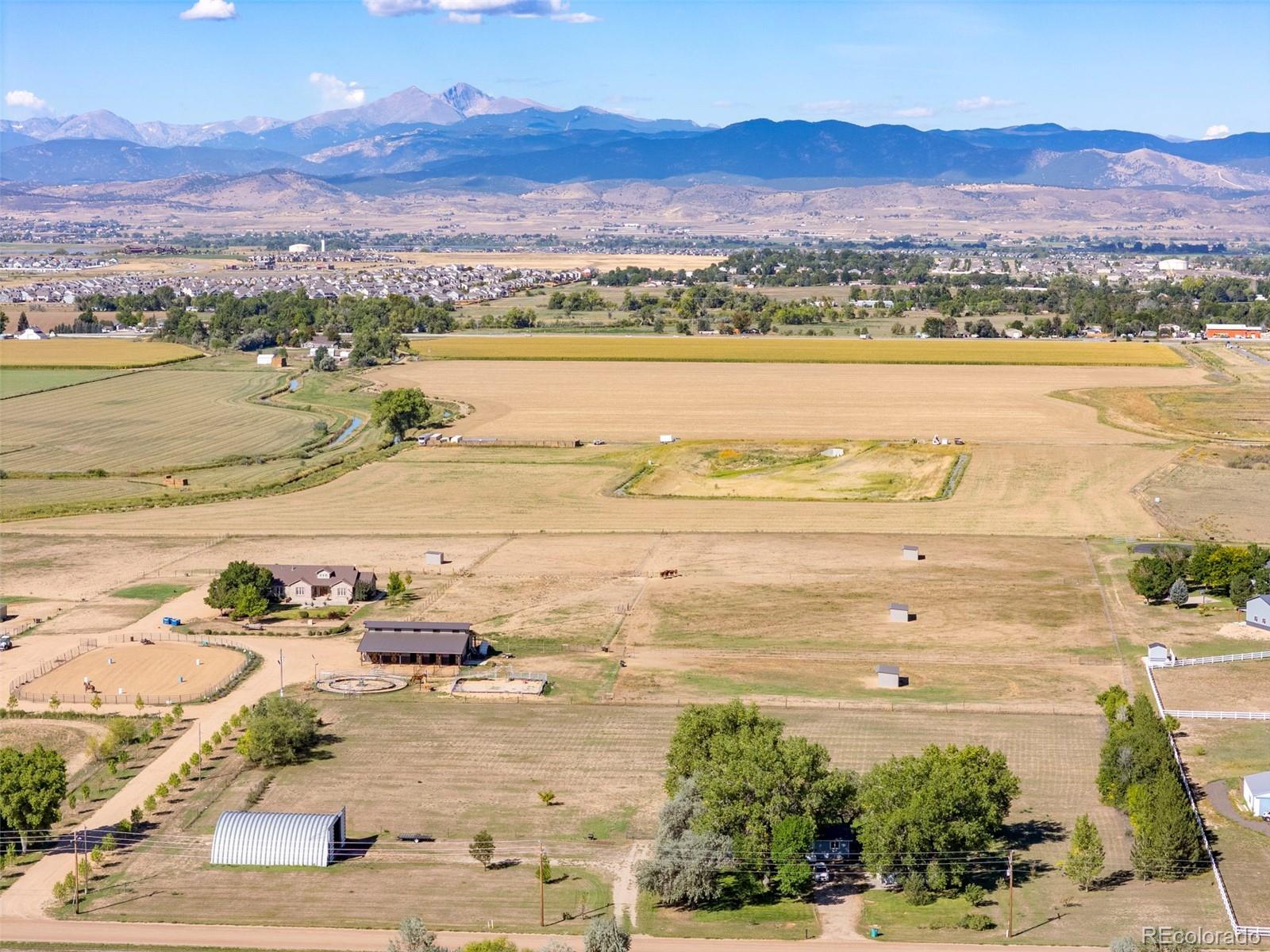 Welcome to your slice of country living in South Loveland! This 5-acre property offers incredible usability and sweeping western views that stretch across the Front Range, including Longs Peak and Mount Meeker. With level ground and wide-open space, the land is ideal for a variety of uses-whether you envision a hobby farm, extra outbuildings, or simply a peaceful retreat with room to roam. The 2,431 sq. ft. manufactured home provides the convenience of single-level living with a spacious layout ready for your personal touch. Complementing the home is an oversized detached garage with power and a dedicated 30-amp exterior outlet, perfect for RV parking and hook-ups. For those needing serious storage or workshop space, the 44' x 50' Quonset building delivers an additional 2,200 sq. ft. with extra-tall doors to accommodate large vehicles, equipment, or recreational toys. Utilities include water through the Little Thompson Water District, natural gas via Xcel Energy, and ample power capacity to support modern needs. The property is surrounded by high-value rural homes, offering both a sense of community and long-term value. All of this comes with the advantage of location-just 10 minutes to downtown Loveland or Berthoud, and a quick drive to I-25 for easy access to Northern Colorado and the Denver metro area. This property combines the best of country lifestyle with unbeatable convenience.