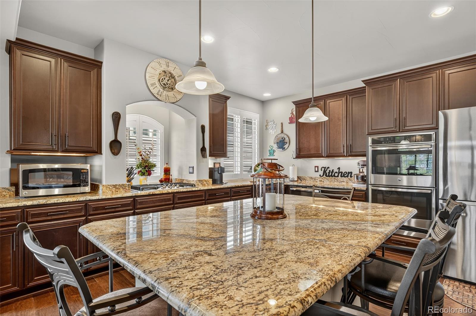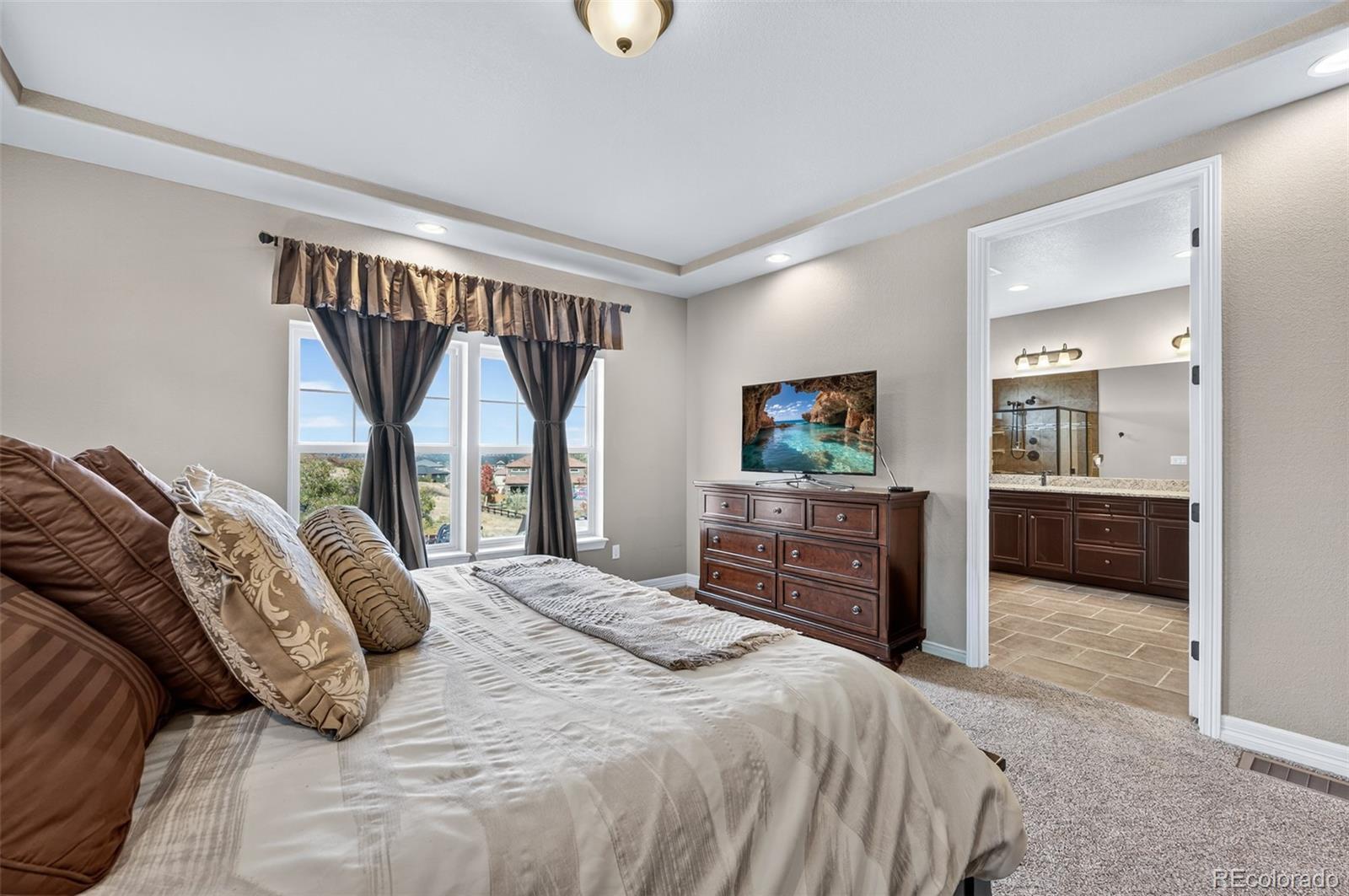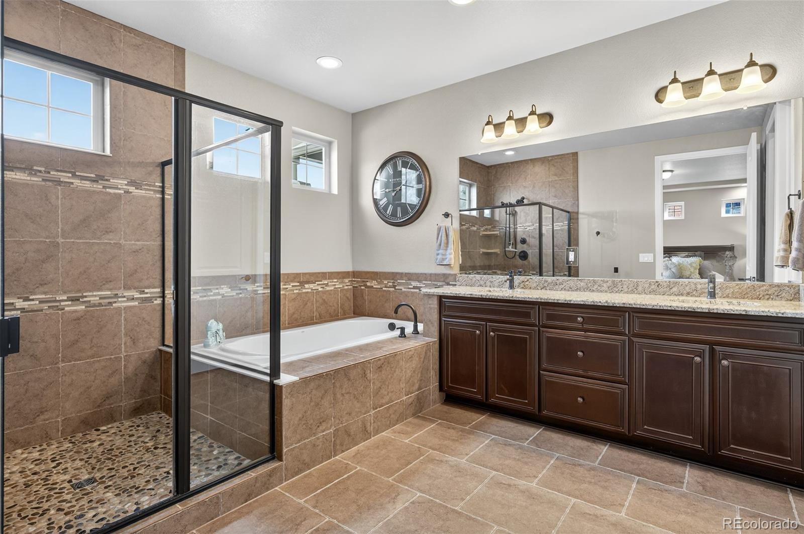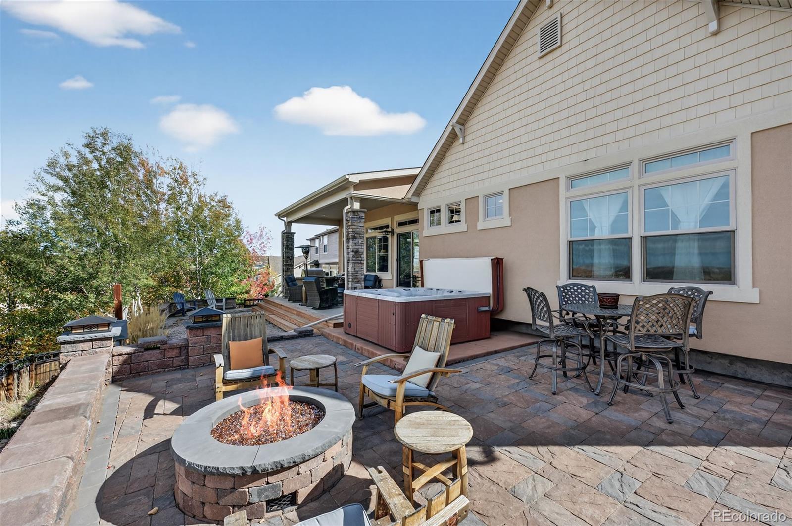 Welcome to 4141 Marblehead Place! This beautiful unique floorplan has three bedrooms on the main floor and a secondary primary suite with ensuite bath upstairs. The main floor provides generous space for both entertaining and everyday dining. Incredible kitchen with double ovens, gas cooktop, large island for entertaining with granite countertops. A dedicated office with French doors offers quiet productivity! Upstairs, a sunlit loft provides the perfect setting for a playroom, den, or reading nook. The expansive primary suite and a five-piece ensuite with soaking tub and glass shower, and a generous walk-in closet. The outside living space is to die for... Custom raised stone patio with a hot tub and gas fire pit. Notables; plantation shutters, dual furnaces, oversized three car garage with sealed concrete. This wonderful home is situated on a cul de sac and close to all open spaces, Bison park, and schools. Take advantage of the stunning open spaces right from your backyard, along with the community's trail systems, and easy access to I-25, Santa Fe, and downtown Castle Rock. This home is a perfect blend of elegance and functionality, offering a peaceful retreat with easy access to the vibrant amenities of Castle Rock.