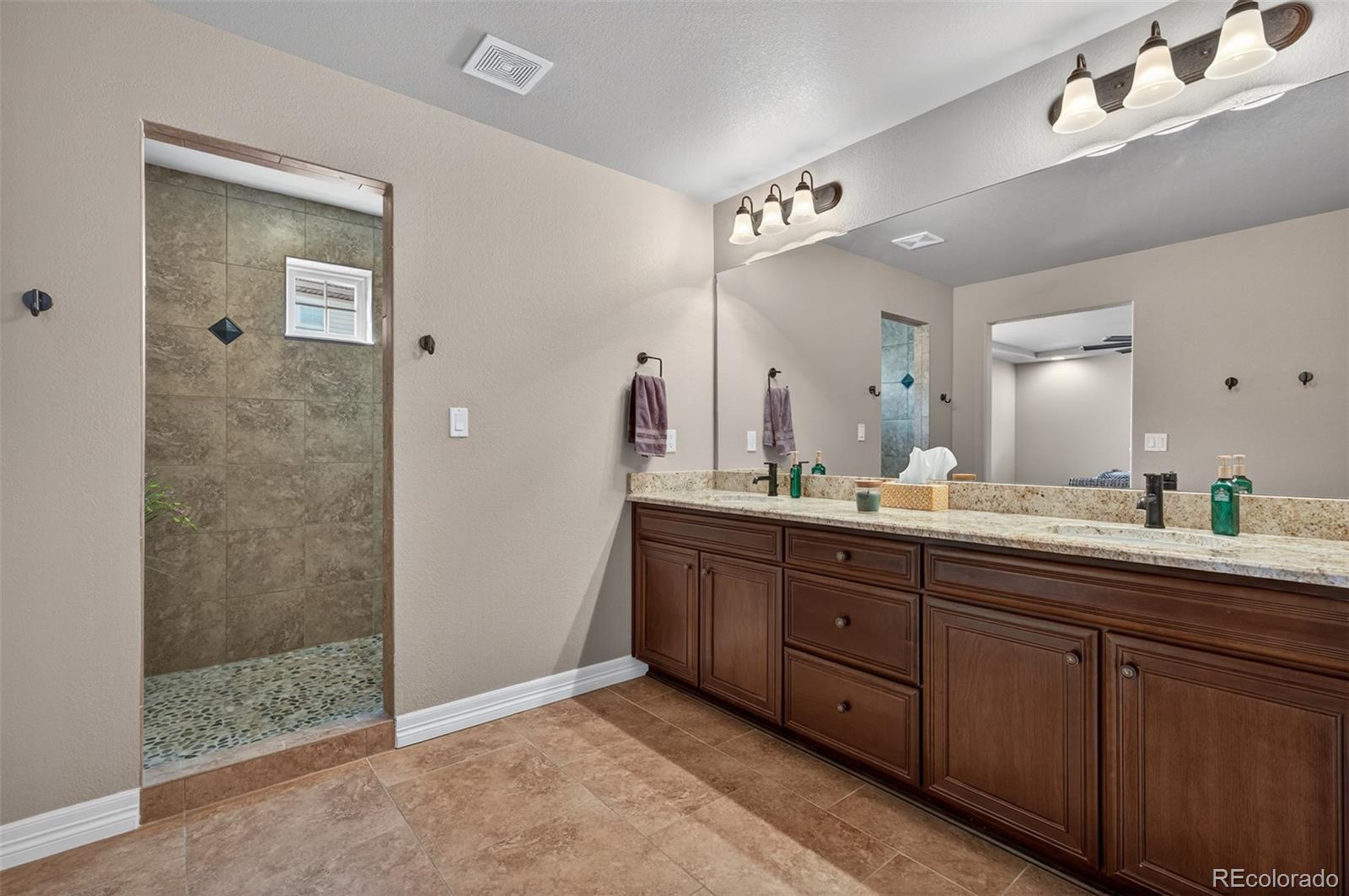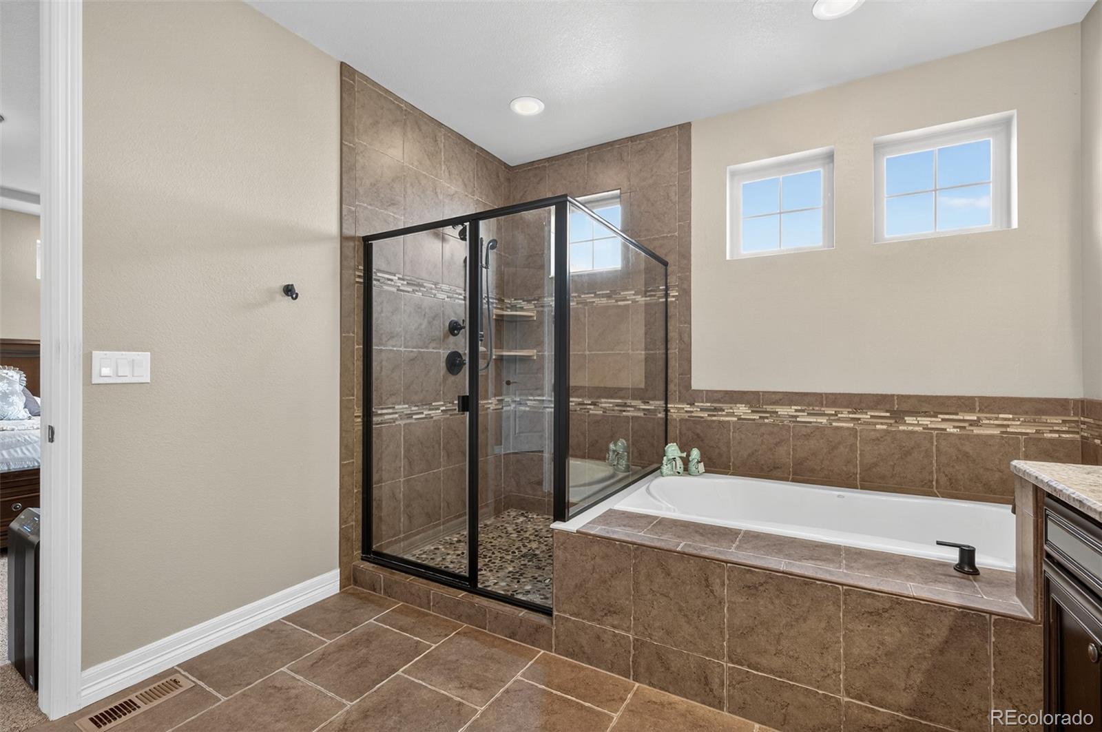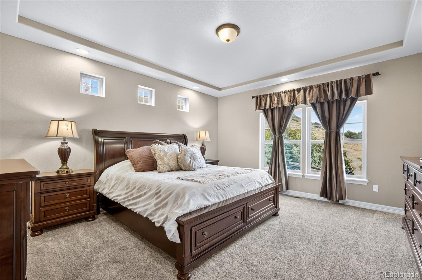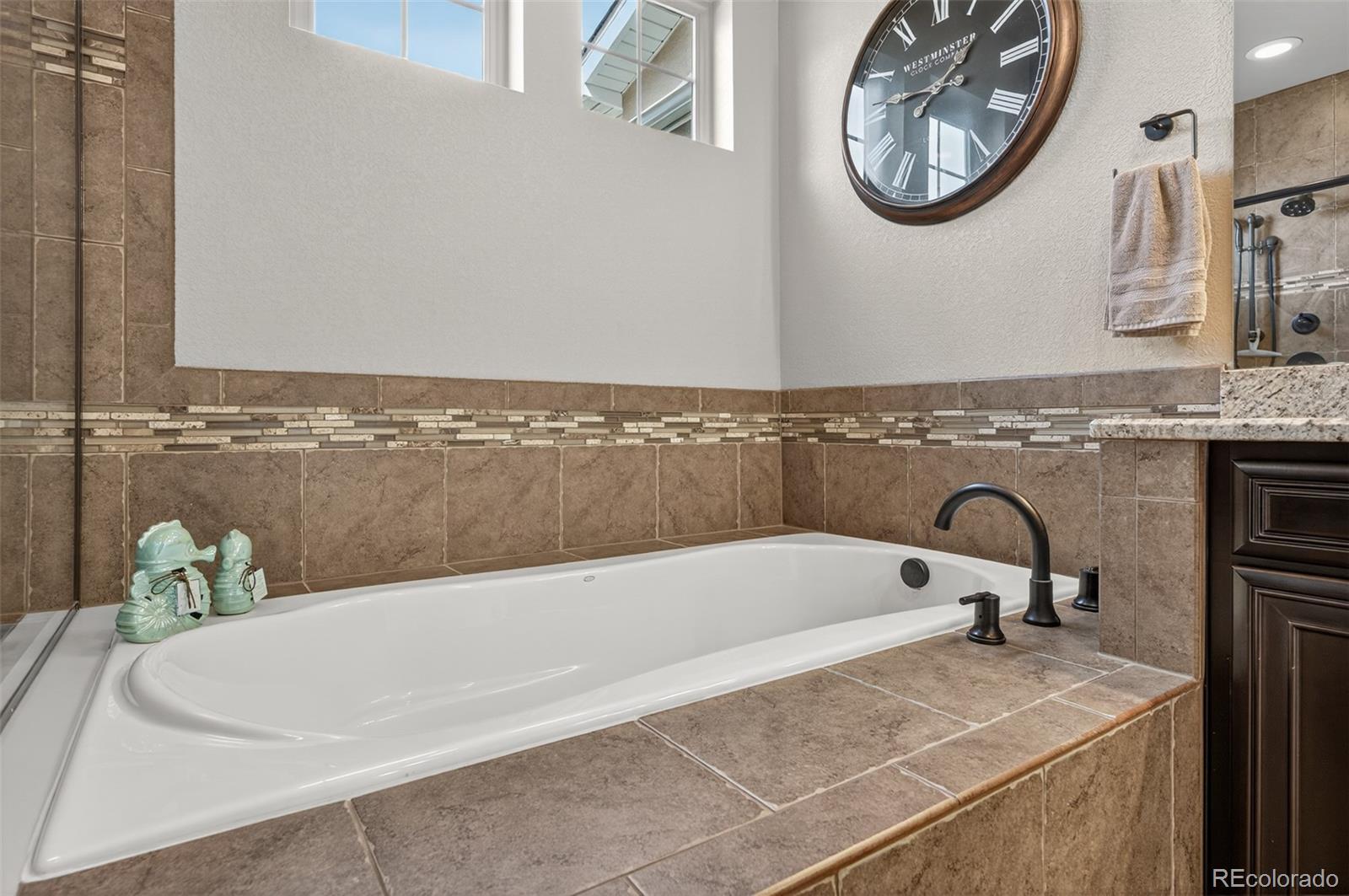 Welcome to 4141 Marblehead Place! This beautiful unique floorplan has three bedrooms on the main floor and a secondary primary suite with ensuite bath upstairs. The main floor provides generous space for both entertaining and everyday dining. Incredible kitchen with double ovens, gas cooktop, large island for entertaining with granite countertops. A dedicated office with French doors offers quiet productivity! Upstairs, a sunlit loft provides the perfect setting for a playroom, den, or reading nook. The expansive primary suite and a five-piece ensuite with soaking tub and glass shower, and a generous walk-in closet. The outside living space is to die for... Custom raised stone patio with a hot tub and gas fire pit. Notables; plantation shutters, dual furnaces, oversized three car garage with sealed concrete. This wonderful home is situated on a cul de sac and close to all open spaces, Bison park, and schools. Take advantage of the stunning open spaces right from your backyard, along with the community's trail systems, and easy access to I-25, Santa Fe, and downtown Castle Rock. This home is a perfect blend of elegance and functionality, offering a peaceful retreat with easy access to the vibrant amenities of Castle Rock.