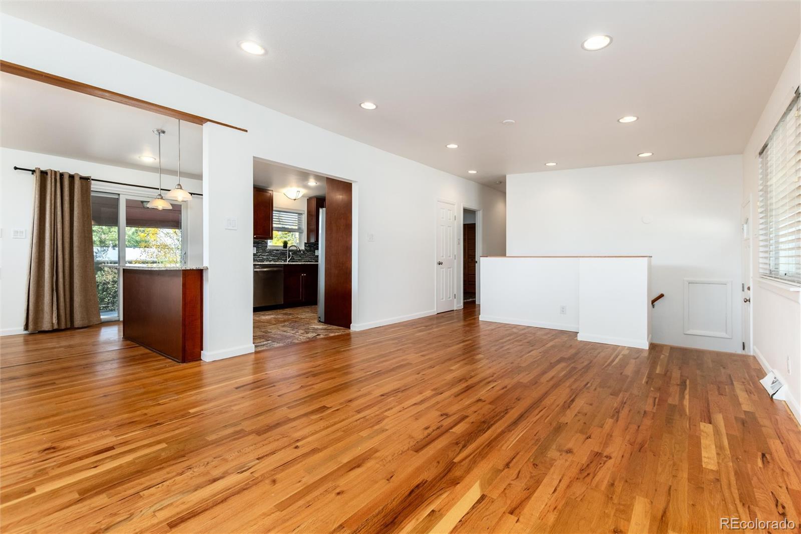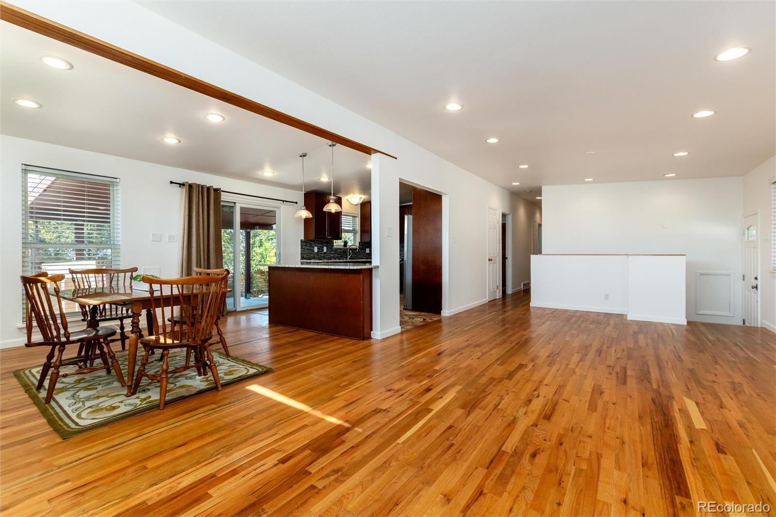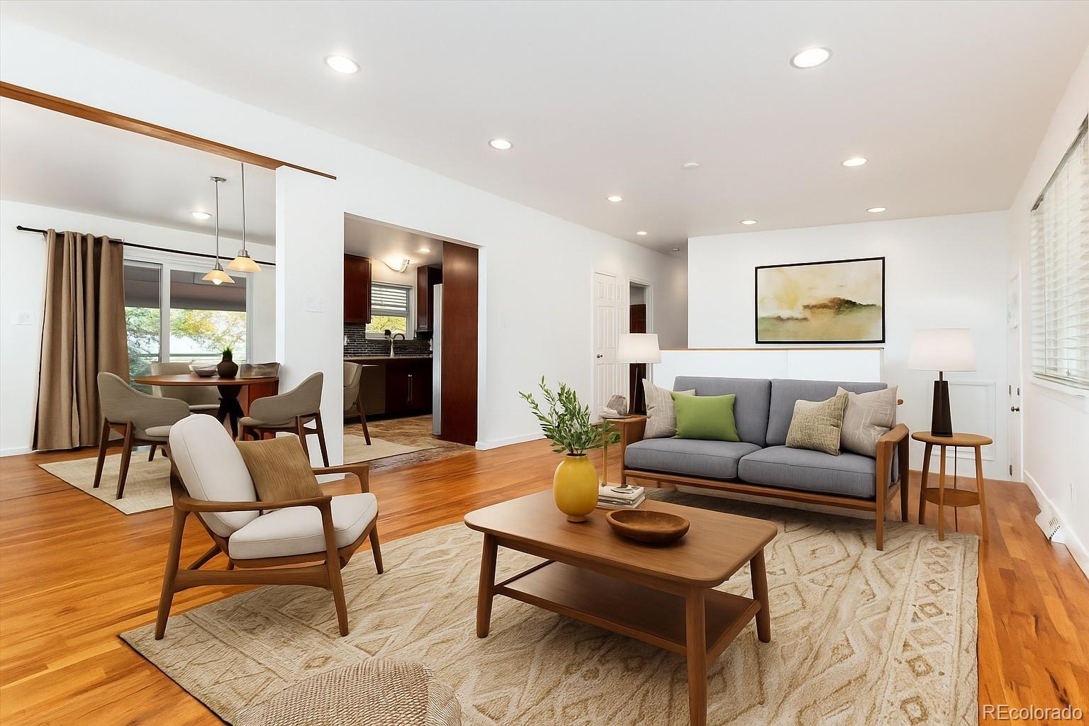 Welcome to 3095 Maplewood Avenue, a beautifully updated 5-bedroom, 3-bath single-story Mid-Century Modern home nestled on a spacious 1/3 acre corner lot in the highly sought-after Dream House Acres neighborhood. With no HOA, this home combines timeless design with modern convenience and an unbeatable location. An inviting open floor plan welcomes you with gleaming hardwood floors, abundant natural light, and a freshly painted interior. The modernized kitchen is a true centerpiece, featuring stainless steel appliances, granite countertops, rich cabinetry, a stylish backsplash, and a large island that opens seamlessly to the dining and living areas — ideal for gathering and entertaining. Enjoy easy main-level living with three generous bedrooms and two updated baths, while the finished basement expands your options with a spacious great room, two additional bedrooms, a 3/4 bathroom, and a workshop area. Updates include newer windows throughout and a newer sewer line, offering peace of mind for years to come. Outside, relax under the covered back patio overlooking the expansive yard — perfect for morning coffee, outdoor dining, or weekend barbecues. Located in the highly rated Littleton School District, this home is within walking distance to Willow Academy, as well as parks and the scenic High Line Canal Trail. You’ll also love being just minutes from DTC, The Streets at SouthGlenn, and a variety of restaurants and shopping options. Don’t miss this rare opportunity to own a stylish, move-in ready home in one of Centennial’s most desirable neighborhoods!