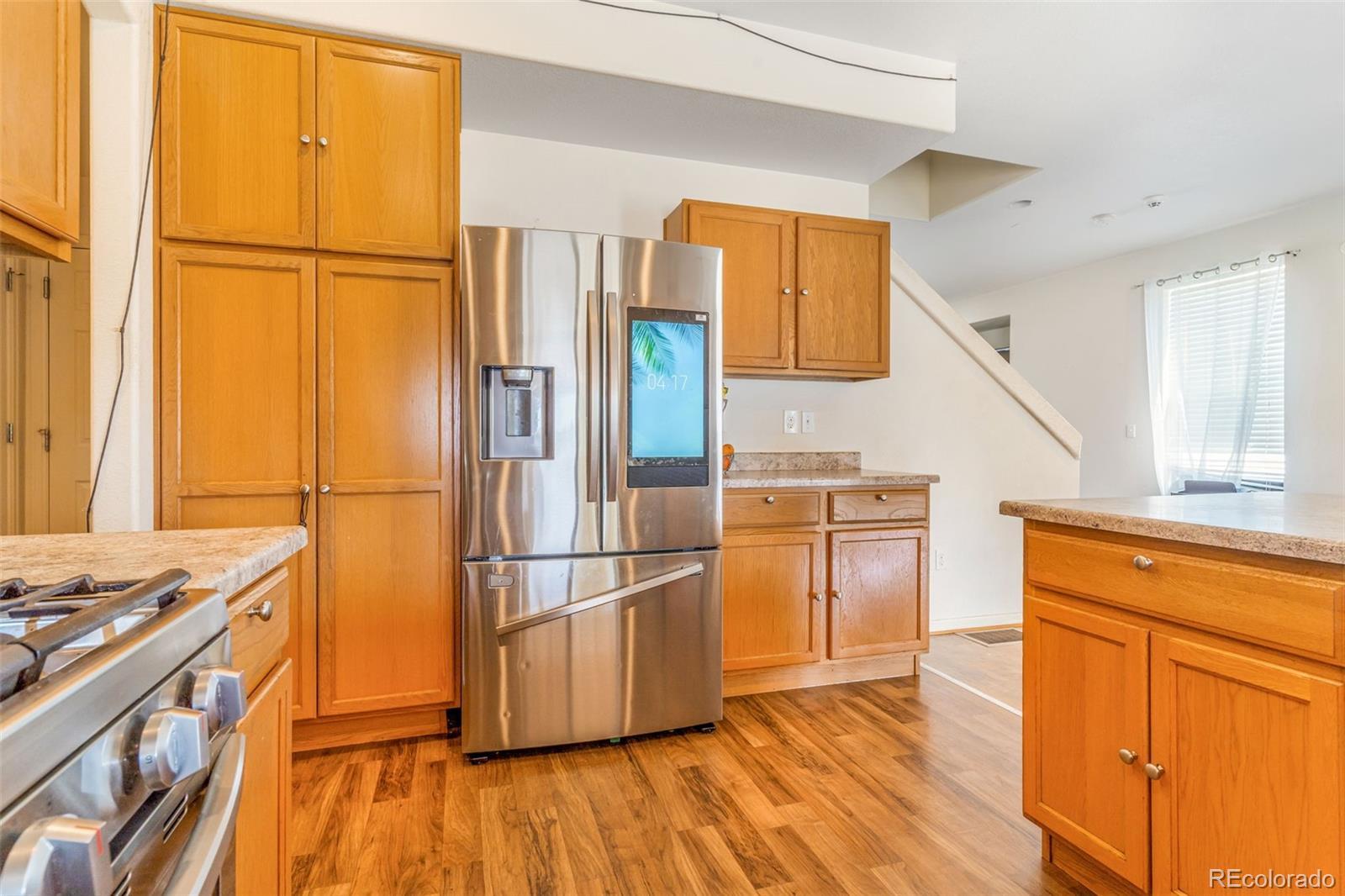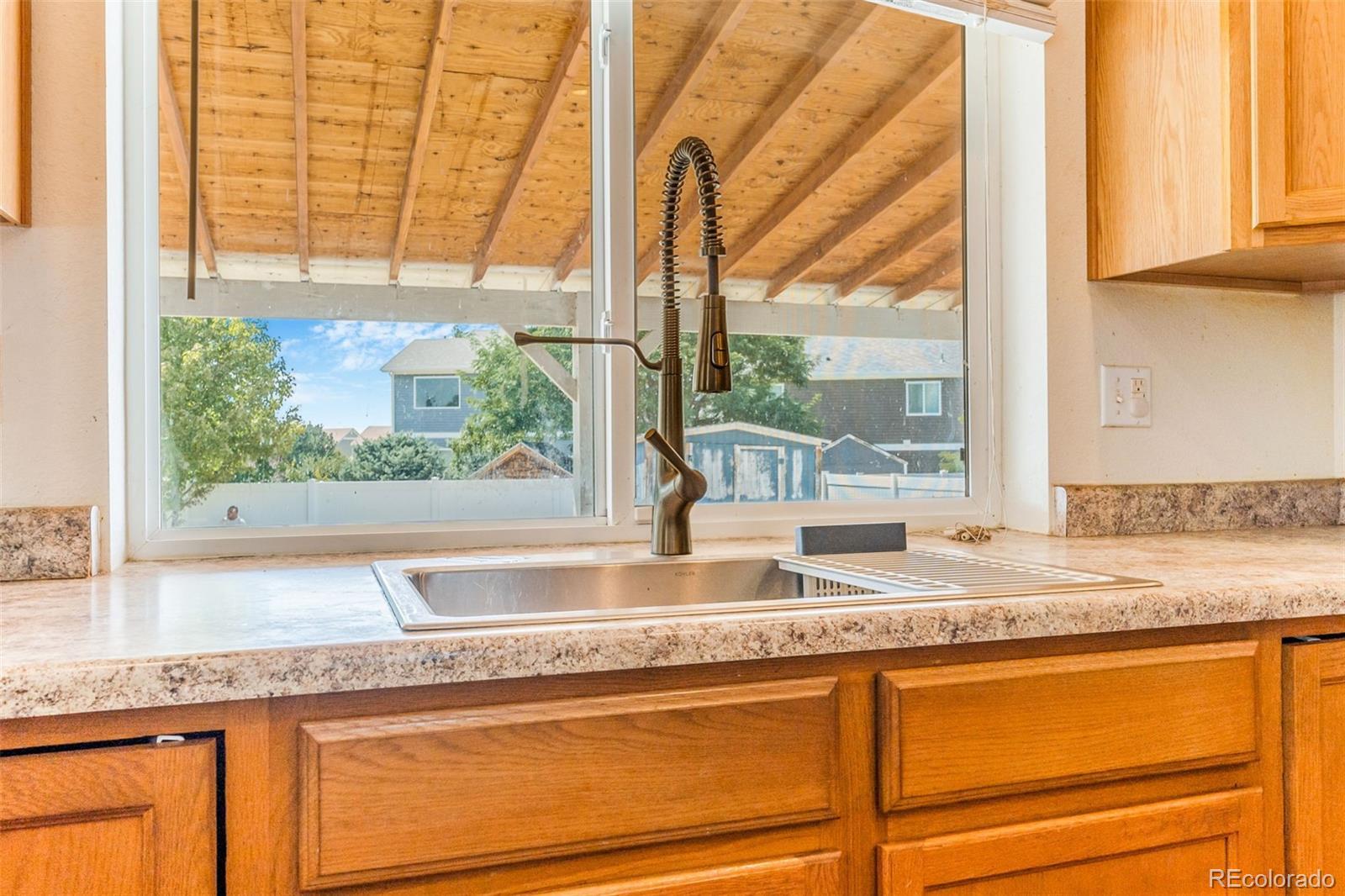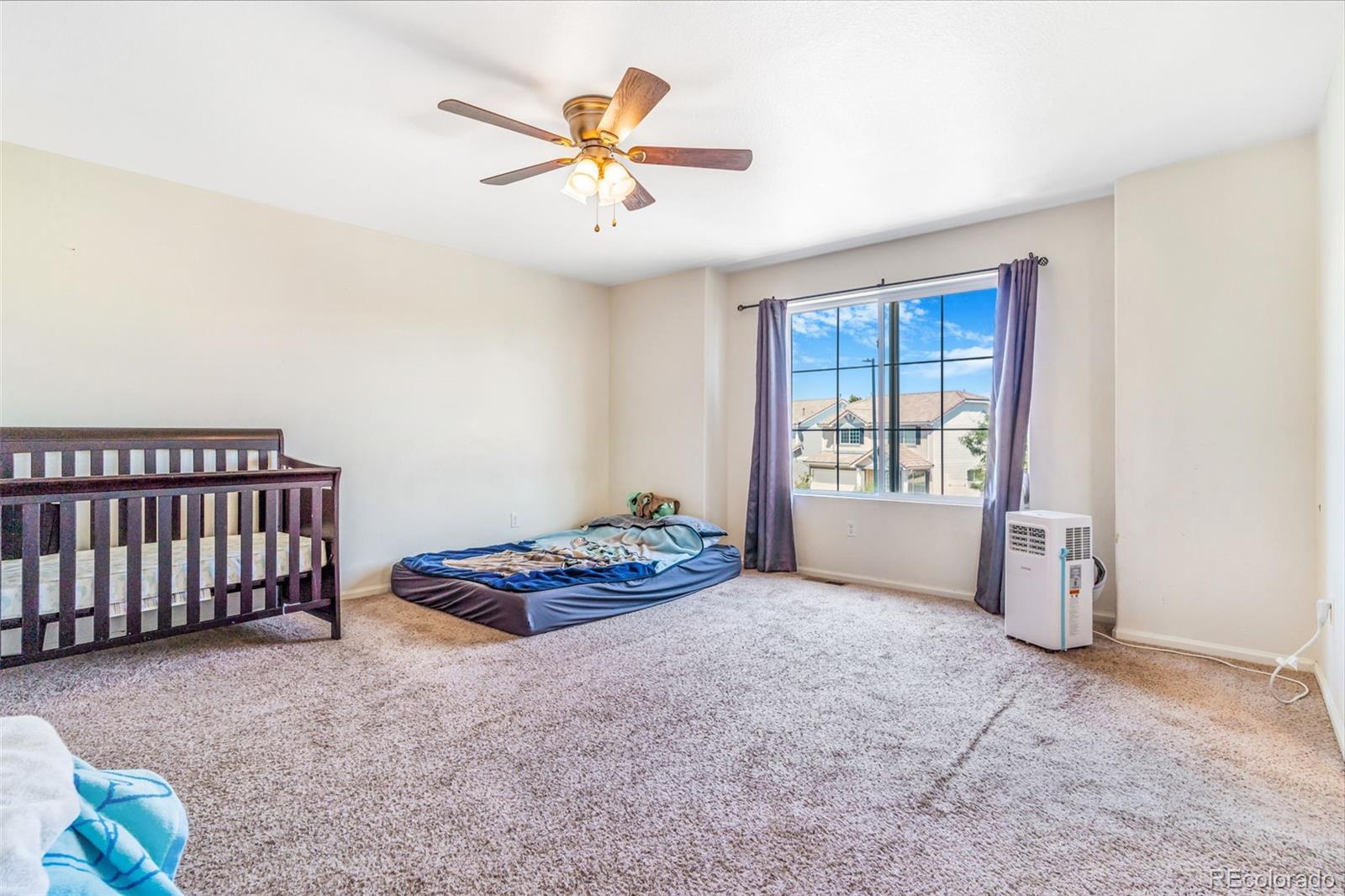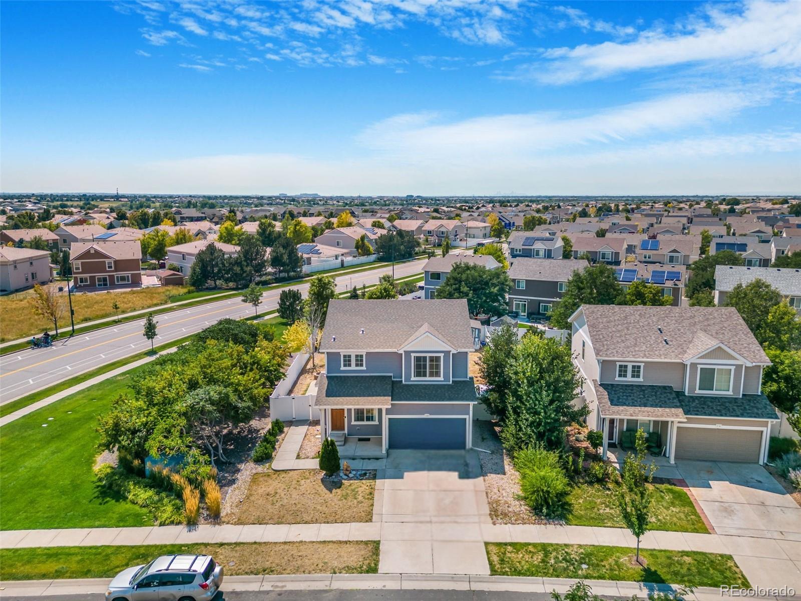 Don’t miss this competitively priced 3-bedroom, 3-bath home on a premium corner lot in Green Valley Ranch. With 1,743 square feet above grade and a spacious unfinished basement offering over 700 additional square feet, this two-story home offers solid bones, great natural light, and plenty of potential for equity growth. The main floor features an open layout with laminate flooring, a cozy gas fireplace, and a kitchen designed for function with a gas stove, exterior venting, and ample cabinet space. A sunny dining area overlooks the large backyard, and a sliding door leads to the covered patio—perfect for relaxing or entertaining. Upstairs, the expanded primary suite is a true retreat, complete with a massive walk-in closet, vaulted ceilings, and a luxurious 5-piece bath. Two additional bedrooms and a bright full bath with an extra window offer space for family, guests, or a home office. The home sits across from the golf course and offers quick access to DIA, the light rail, major highways, and shopping at Green Valley Ranch Town Center. This home is a rare opportunity to build equity in a fast-growing community. Schedule your showing today and imagine the possibilities.