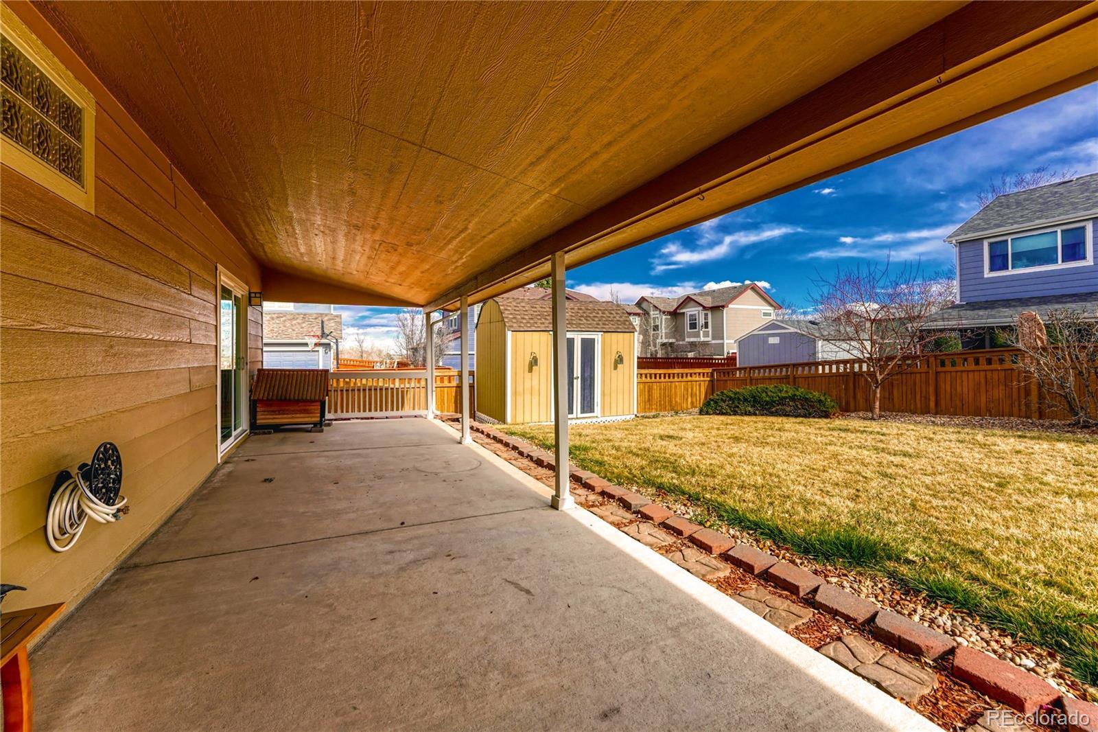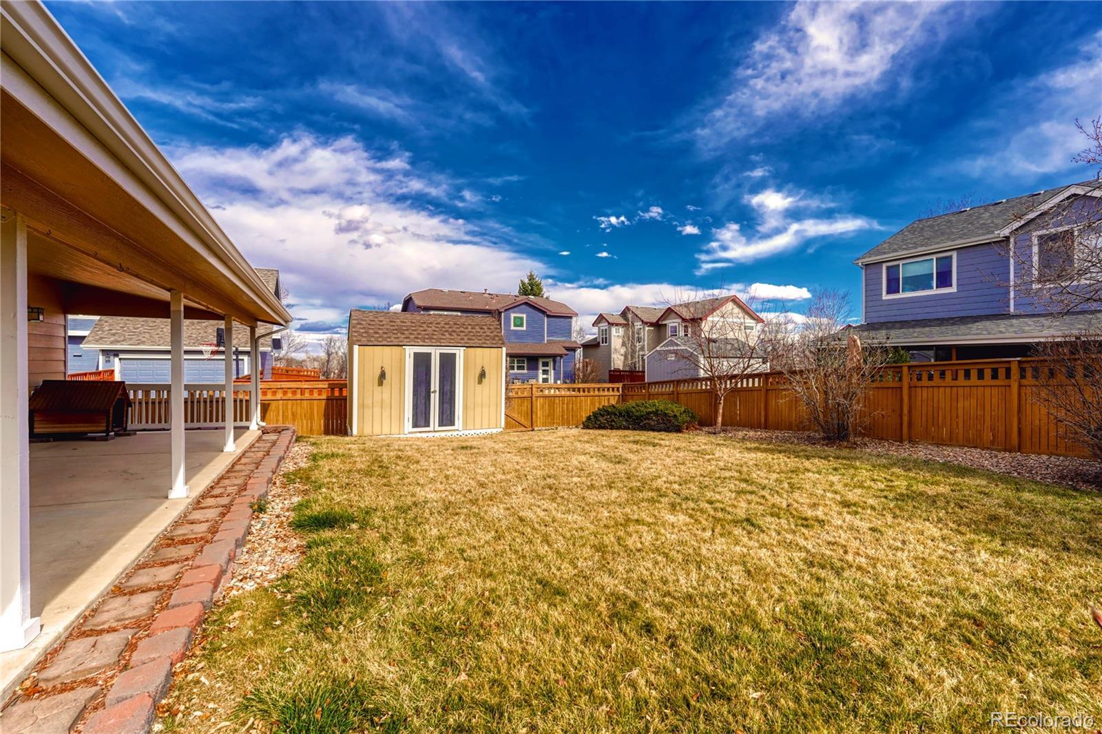 Step into this highly desirable one story ranch that blends comfort, style, and functionality in one of Brighton’s most inviting communities. This well maintained home offers 3 bedrooms and 2 baths, including a spacious primary suite designed for privacy and comfort. The primary bedroom features a large walk in closet and a fully remodeled three quarter bath with updated flooring, tiled shower, modern lighting, and double sinks with clean contemporary finishes. The second bedroom is generously sized with great natural light. The third bedroom offers flexibility for a home office, guest room, or creative space and includes French doors for added character. The open kitchen provides ample counter space and storage, making it ideal for daily living and entertaining. It flows directly into the backyard, where you will find a large covered patio perfect for gatherings throughout the year, a storage shed, an included backyard swing, and a dog house. The home includes a sprinkler system in both the front and back yards for easier landscape maintenance, and all trees were professionally trimmed in 2025. The living room features wood flooring, a fireplace, and classic window shutters that add warmth and definition to the space. Additional highlights include a two-car attached garage with a new garage door opener installed in 2023 and a dedicated laundry area with storage. Located in Bromley Park, the neighborhood offers tree-lined streets, front porches, pocket parks, and green spaces located close by. The community provides convenient access to shopping, restaurants, entertainment, Prairie Center, and major routes, including I-76, making commuting to Denver or DIA practical. This property reflects clear pride of ownership and presents a move-in-ready opportunity for buyers seeking main-level living, functional layout, outdoor enjoyment, and a strong community setting in Brighton.