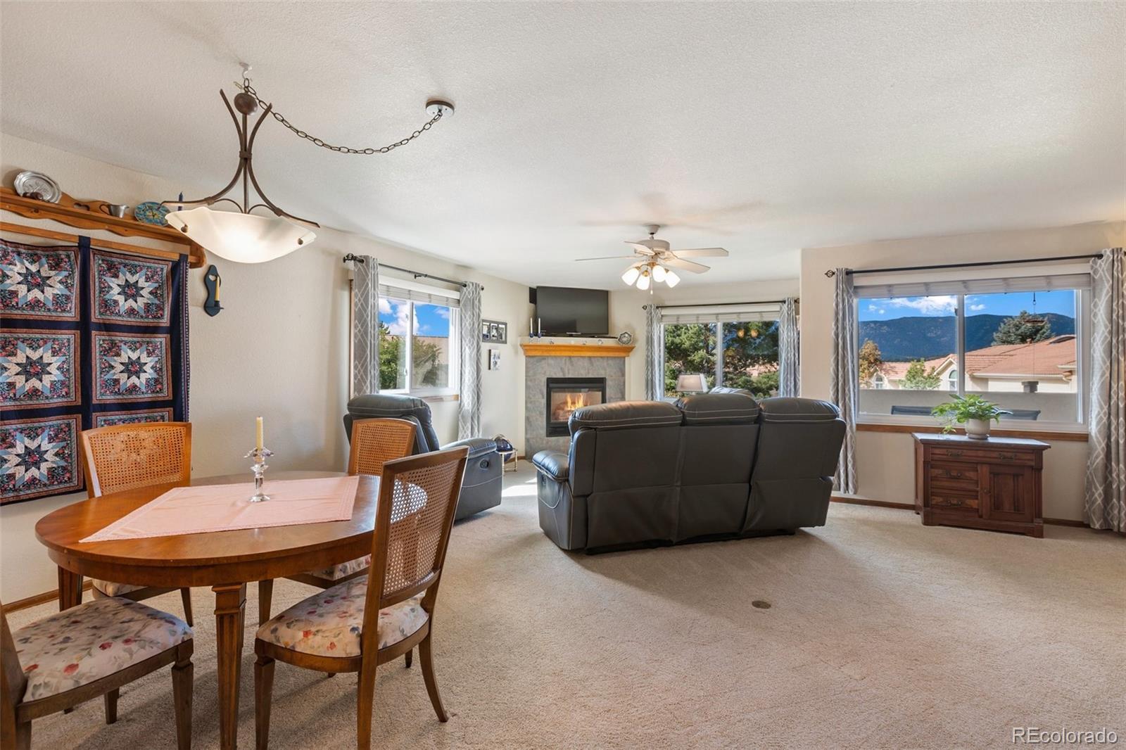 Location, storage, beauty, and views — all in one! This inviting townhome in the sought-after Northgate community is the perfect mix of comfort and Colorado charm. Step inside to find brand-new carpet on the main level and a primary bedroom suite on the main floor. The 5-piece bath with a Jacuzzi tub is just waiting for you to enjoy those quiet, relaxing evenings. Then step into your cozy living room with gas fireplace and double pained windows for extra comfort on cozy winter nights. Storage is abundant, giving you room for all your gear and hobbies. The balcony opens to peaceful mountain views, the kind that remind you why you love Colorado. Sitting on a corner lot in a friendly, tranquil neighborhood, this home feels tucked away yet close to everything you need. Downstairs, the finished basement expands your living space with two additional bedrooms featuring oversized walk-in closets, a dedicated office, and a cozy living room area—perfect for movie nights, game days, or simply relaxing. The kitchen features quartz countertops and plenty of space to whip up meals, entertain friends, or put together the perfect charcuterie board after a day outdoors. Best of all, the beautifully maintained landscaping is yours to enjoy without the upkeep—leaving you more time to soak up the views and the lifestyle you’ve been dreaming of.