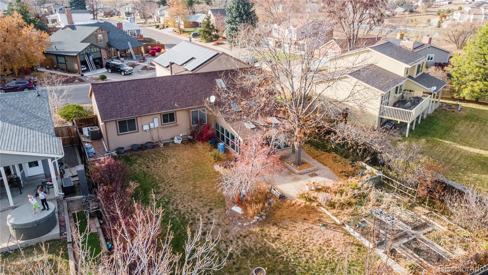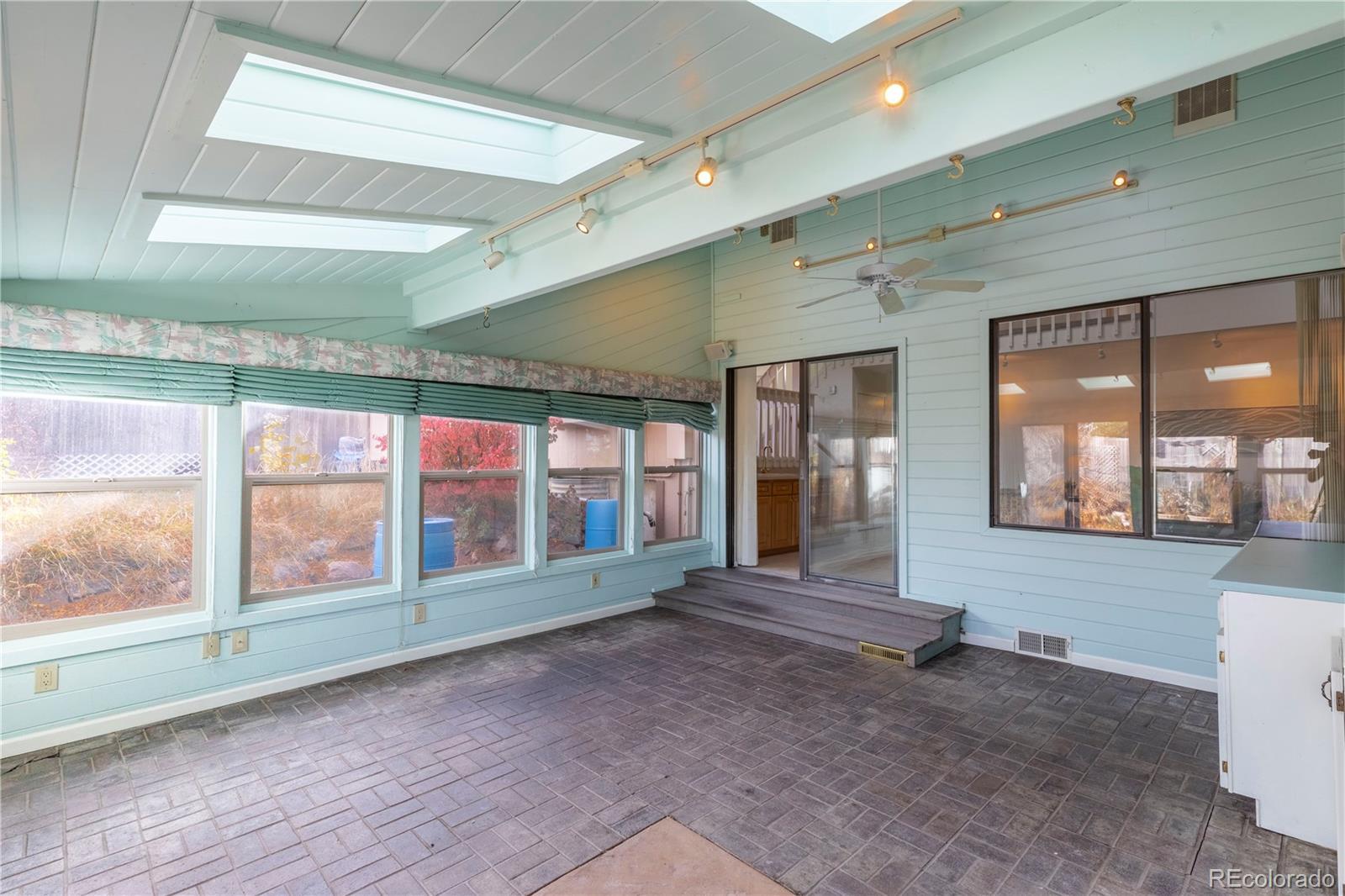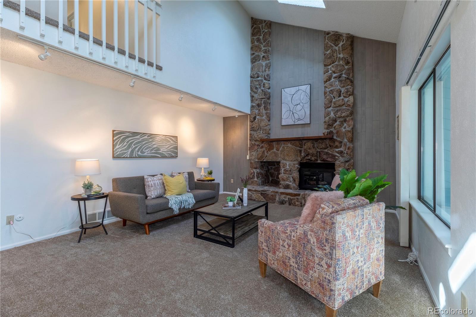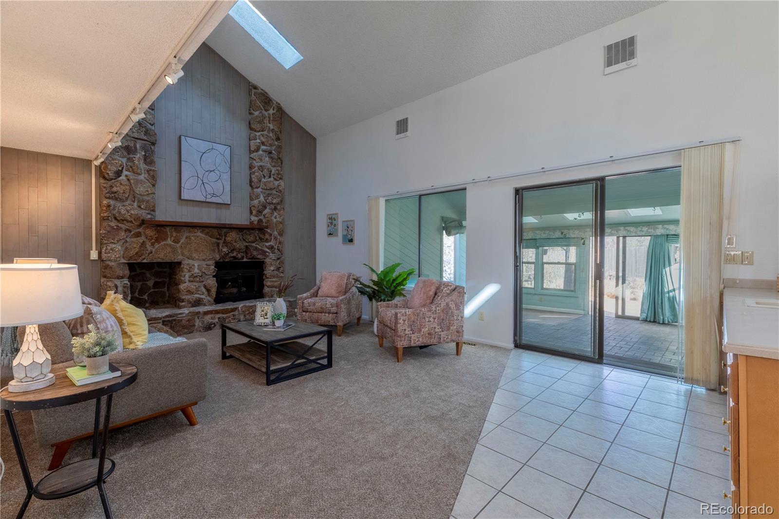 MUST SEE… move-in-ready, 3BR/3BA single family home in Foothill Green!! If you’re looking for a GREAT value in South Jeffco… this Property is it! You’re welcomed to the home by a covered access, an entry door w sidelights & beveled-glass panels, and low-maint tile floor! The Main Floor of this tri-level home includes a the Living Rm, Dining Rm & an updated eat-in Kitchen! The Kitchen features a convenient pantry, updated cabs, composite countertops/backsplashes, plumbing fixtures, can lights & a peninsula/bar w pendant lighting! All appliances are incl! The Entry, Eating Space, Dining Rm & Living Rm all have vaulted ceilings w the latter having skylights! All 3 BRs are located on the Upper Level! The spacious Primary Suite has a private 3/4-BA & a large walk-in closet! You’ll also find a Full BA for the use of BRs #2 & #3! The highlight of this home is found in the Lower Level Family Rm… a gorgeous, 2-story fireplace w stone veneer & hearth! This Family Rm includes a vaulted ceiling & skylights! On one side is a heated Sunrm (fin space!) w more skylights & on the other is a 1/2-BA! The large Laundry Rm is also found on the Lower Level! [NOTE: All int walls, ceilings & trim have just been painted, and all carpet/pad has just been replaced!] The oversized, att Garage is longer than most garages & also includes a sizeable Workshop area! All workbenches, cabs, shelves & storage racks are incl! For add’l storage, attached sheds are located on the north side of the Garage! This Property includes a solar system – included & Seller-owned (NO encumbrance)! The backyard has wood privacy fencing, multiple planter beds & a large patio for entertaining! Add’l amenities include a newer composite shingle roof [date?], central A/C & an unfin Bsmt – ready for your plans & dreams! This lovely property is located conveniently near the SW Plaza Mall & retail corridor, C-470, the lightrail in downtown Littleton, ACC, Blue Heron & Clement Parks & Westridge ES (in neighborhood)!