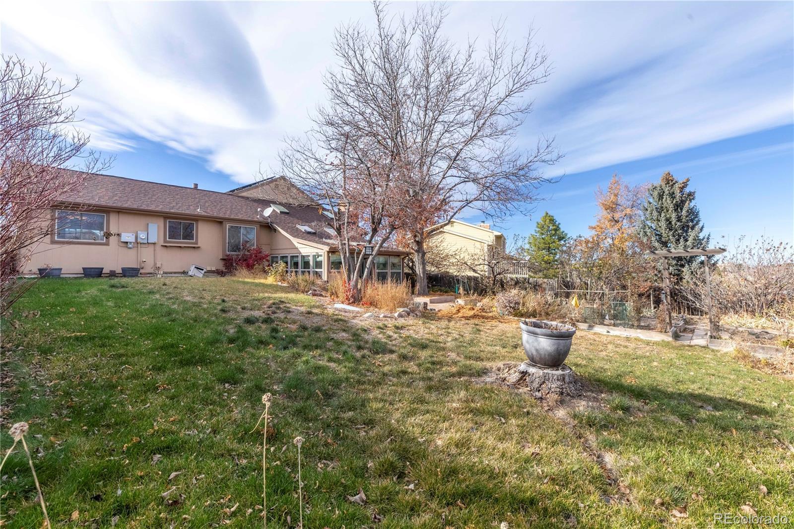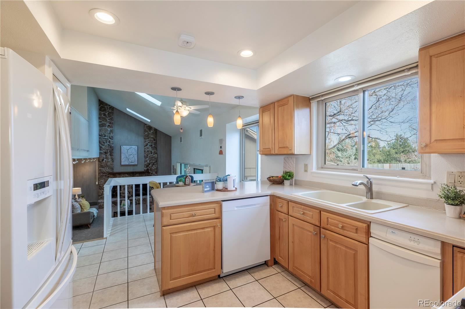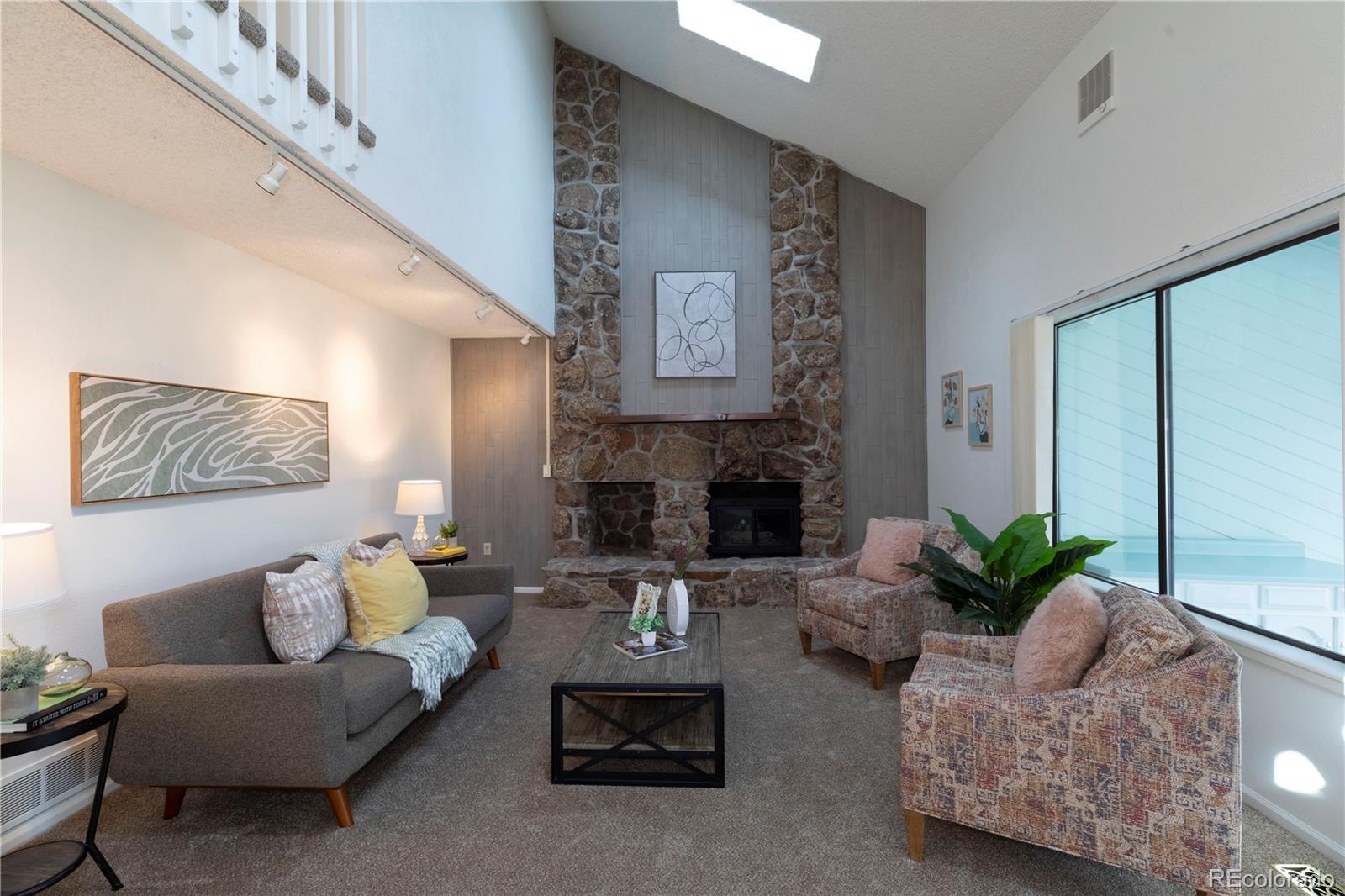 MUST SEE… move-in-ready, 3BR/3BA single family home in Foothill Green!! If you’re looking for a GREAT value in South Jeffco… this Property is it! You’re welcomed to the home by a covered access, an entry door w sidelights & beveled-glass panels, and low-maint tile floor! The Main Floor of this tri-level home includes a the Living Rm, Dining Rm & an updated eat-in Kitchen! The Kitchen features a convenient pantry, updated cabs, composite countertops/backsplashes, plumbing fixtures, can lights & a peninsula/bar w pendant lighting! All appliances are incl! The Entry, Eating Space, Dining Rm & Living Rm all have vaulted ceilings w the latter having skylights! All 3 BRs are located on the Upper Level! The spacious Primary Suite has a private 3/4-BA & a large walk-in closet! You’ll also find a Full BA for the use of BRs #2 & #3! The highlight of this home is found in the Lower Level Family Rm… a gorgeous, 2-story fireplace w stone veneer & hearth! This Family Rm includes a vaulted ceiling & skylights! On one side is a heated Sunrm (fin space!) w more skylights & on the other is a 1/2-BA! The large Laundry Rm is also found on the Lower Level! [NOTE: All int walls, ceilings & trim have just been painted, and all carpet/pad has just been replaced!] The oversized, att Garage is longer than most garages & also includes a sizeable Workshop area! All workbenches, cabs, shelves & storage racks are incl! For add’l storage, attached sheds are located on the north side of the Garage! This Property includes a solar system – included & Seller-owned (NO encumbrance)! The backyard has wood privacy fencing, multiple planter beds & a large patio for entertaining! Add’l amenities include a newer composite shingle roof [date?], central A/C & an unfin Bsmt – ready for your plans & dreams! This lovely property is located conveniently near the SW Plaza Mall & retail corridor, C-470, the lightrail in downtown Littleton, ACC, Blue Heron & Clement Parks & Westridge ES (in neighborhood)!