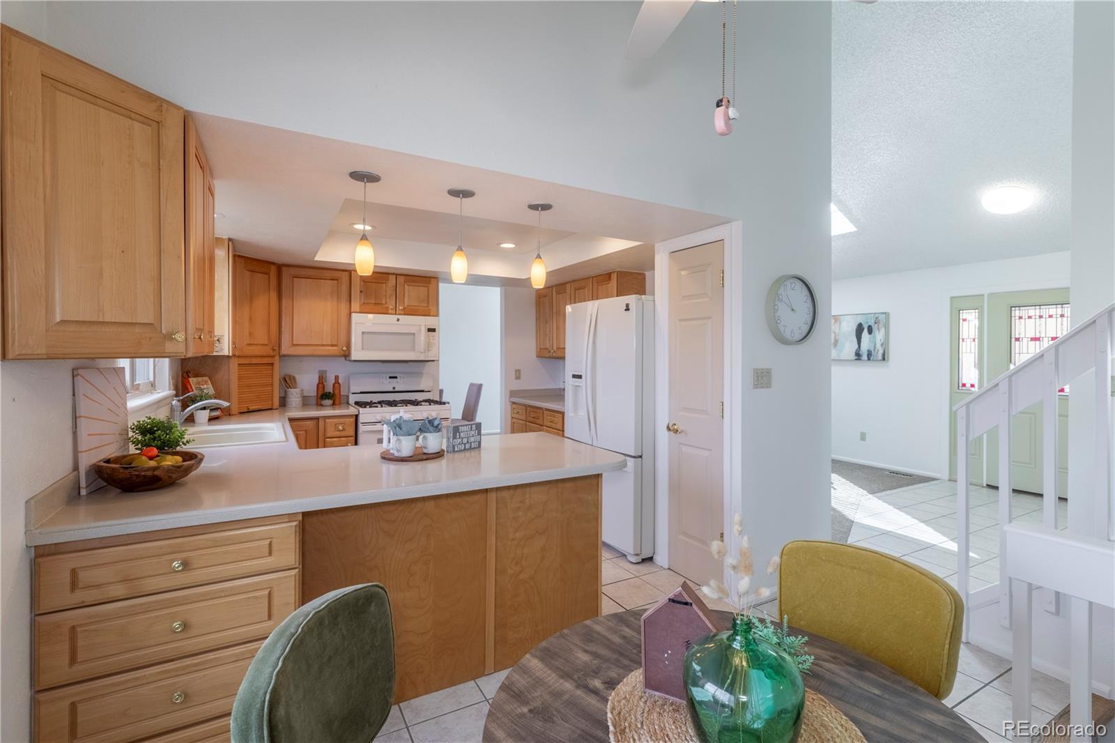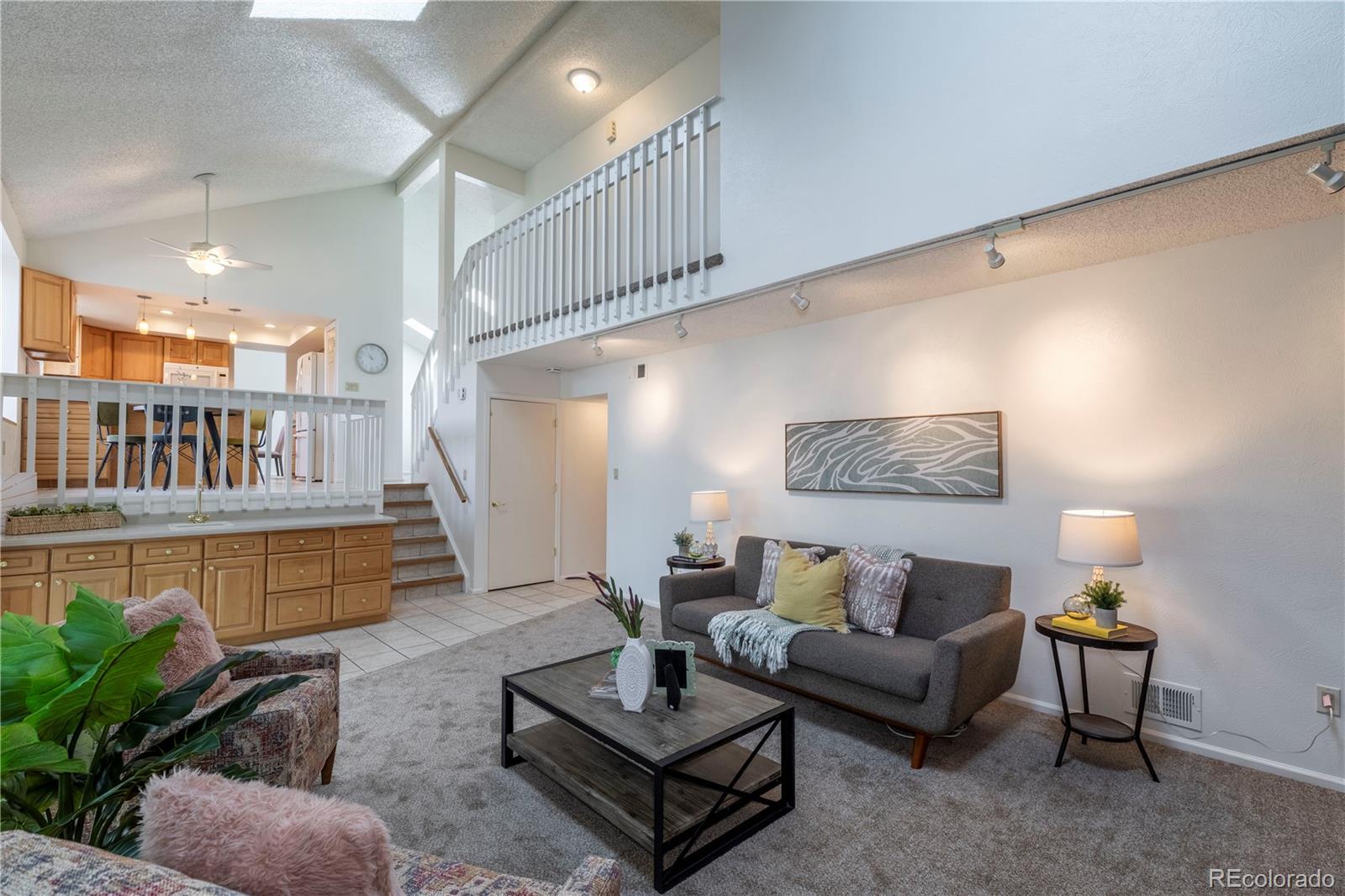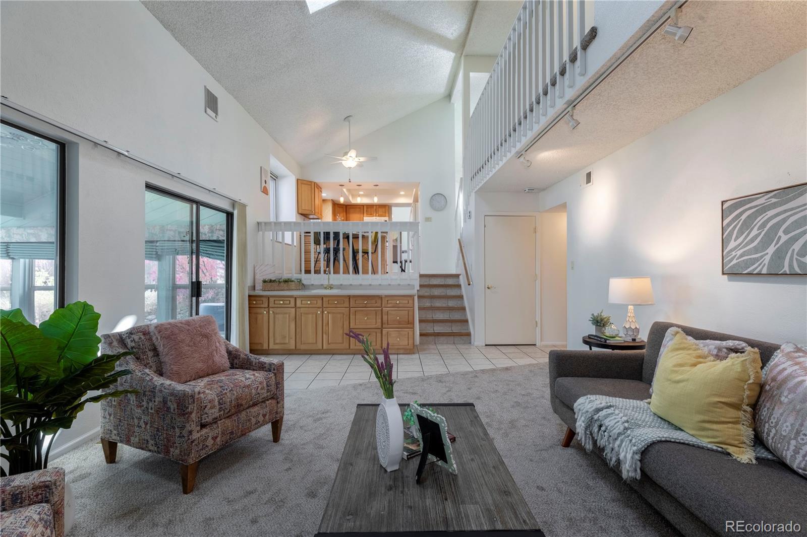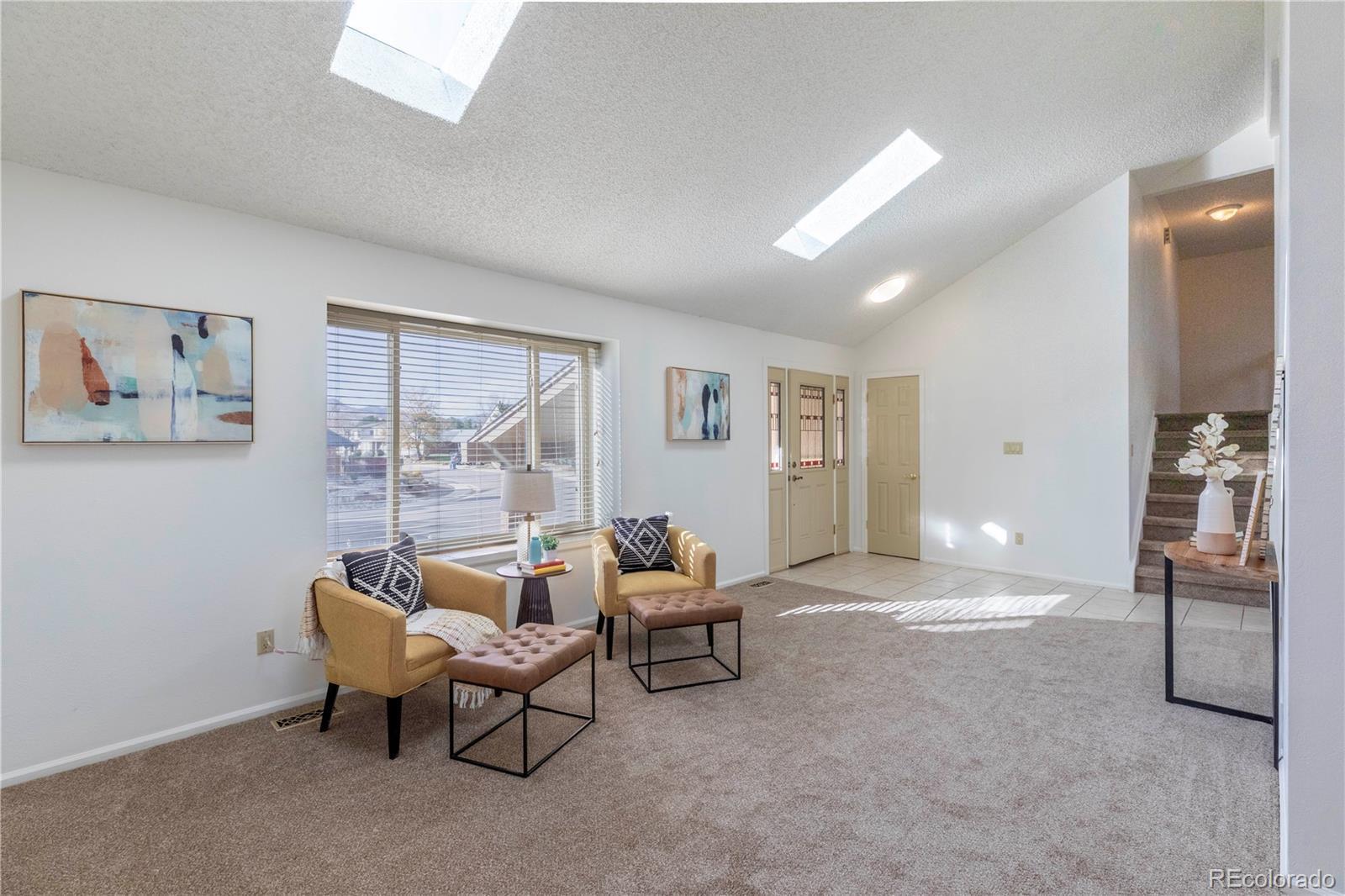 MUST SEE… move-in-ready, 3BR/3BA single family home in Foothill Green!! If you’re looking for a GREAT value in South Jeffco… this Property is it! You’re welcomed to the home by a covered access, an entry door w sidelights & beveled-glass panels, and low-maint tile floor! The Main Floor of this tri-level home includes a the Living Rm, Dining Rm & an updated eat-in Kitchen! The Kitchen features a convenient pantry, updated cabs, composite countertops/backsplashes, plumbing fixtures, can lights & a peninsula/bar w pendant lighting! All appliances are incl! The Entry, Eating Space, Dining Rm & Living Rm all have vaulted ceilings w the latter having skylights! All 3 BRs are located on the Upper Level! The spacious Primary Suite has a private 3/4-BA & a large walk-in closet! You’ll also find a Full BA for the use of BRs #2 & #3! The highlight of this home is found in the Lower Level Family Rm… a gorgeous, 2-story fireplace w stone veneer & hearth! This Family Rm includes a vaulted ceiling & skylights! On one side is a heated Sunrm (fin space!) w more skylights & on the other is a 1/2-BA! The large Laundry Rm is also found on the Lower Level! [NOTE: All int walls, ceilings & trim have just been painted, and all carpet/pad has just been replaced!] The oversized, att Garage is longer than most garages & also includes a sizeable Workshop area! All workbenches, cabs, shelves & storage racks are incl! For add’l storage, attached sheds are located on the north side of the Garage! This Property includes a solar system – included & Seller-owned (NO encumbrance)! The backyard has wood privacy fencing, multiple planter beds & a large patio for entertaining! Add’l amenities include a newer composite shingle roof [date?], central A/C & an unfin Bsmt – ready for your plans & dreams! This lovely property is located conveniently near the SW Plaza Mall & retail corridor, C-470, the lightrail in downtown Littleton, ACC, Blue Heron & Clement Parks & Westridge ES (in neighborhood)!