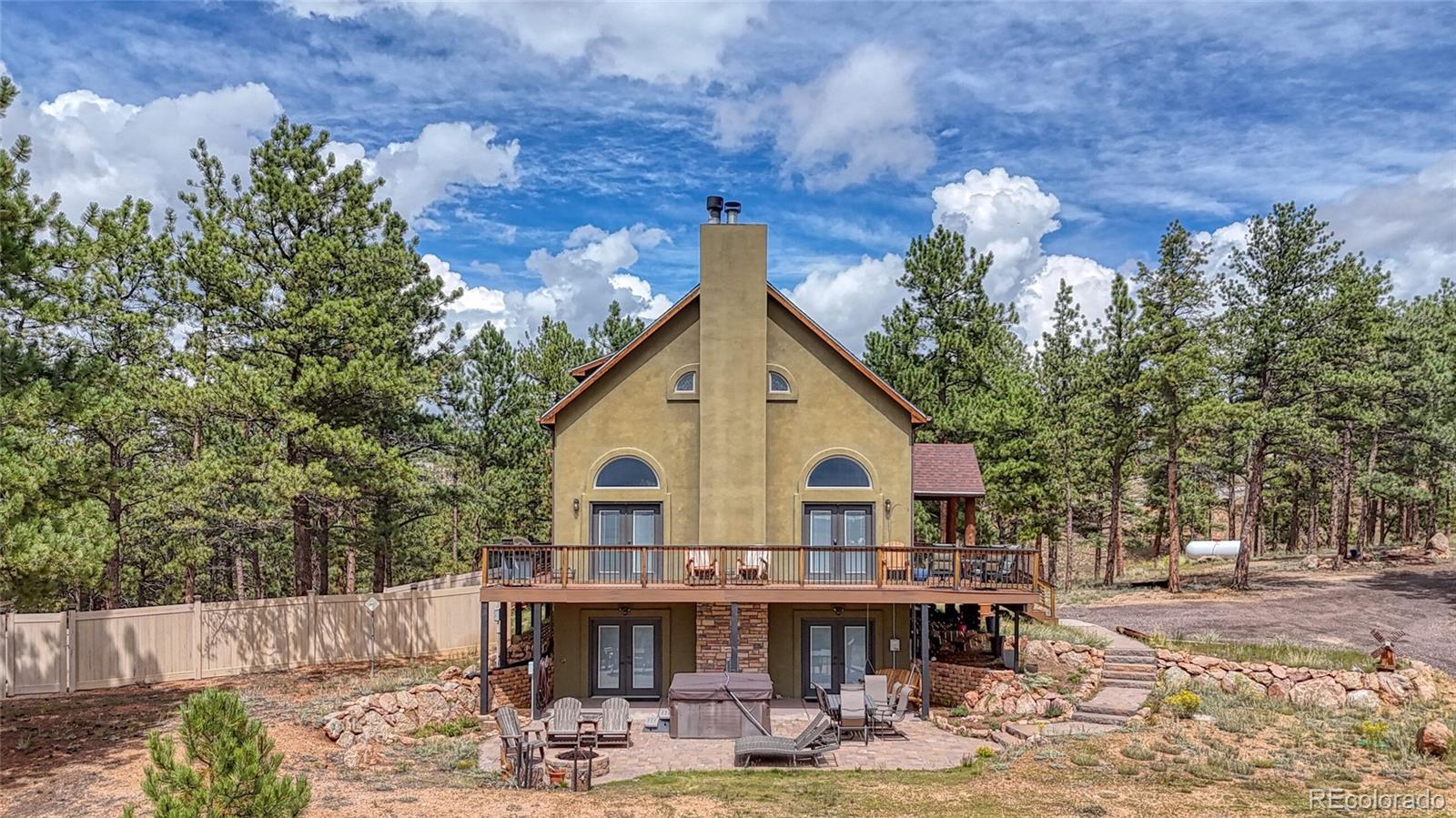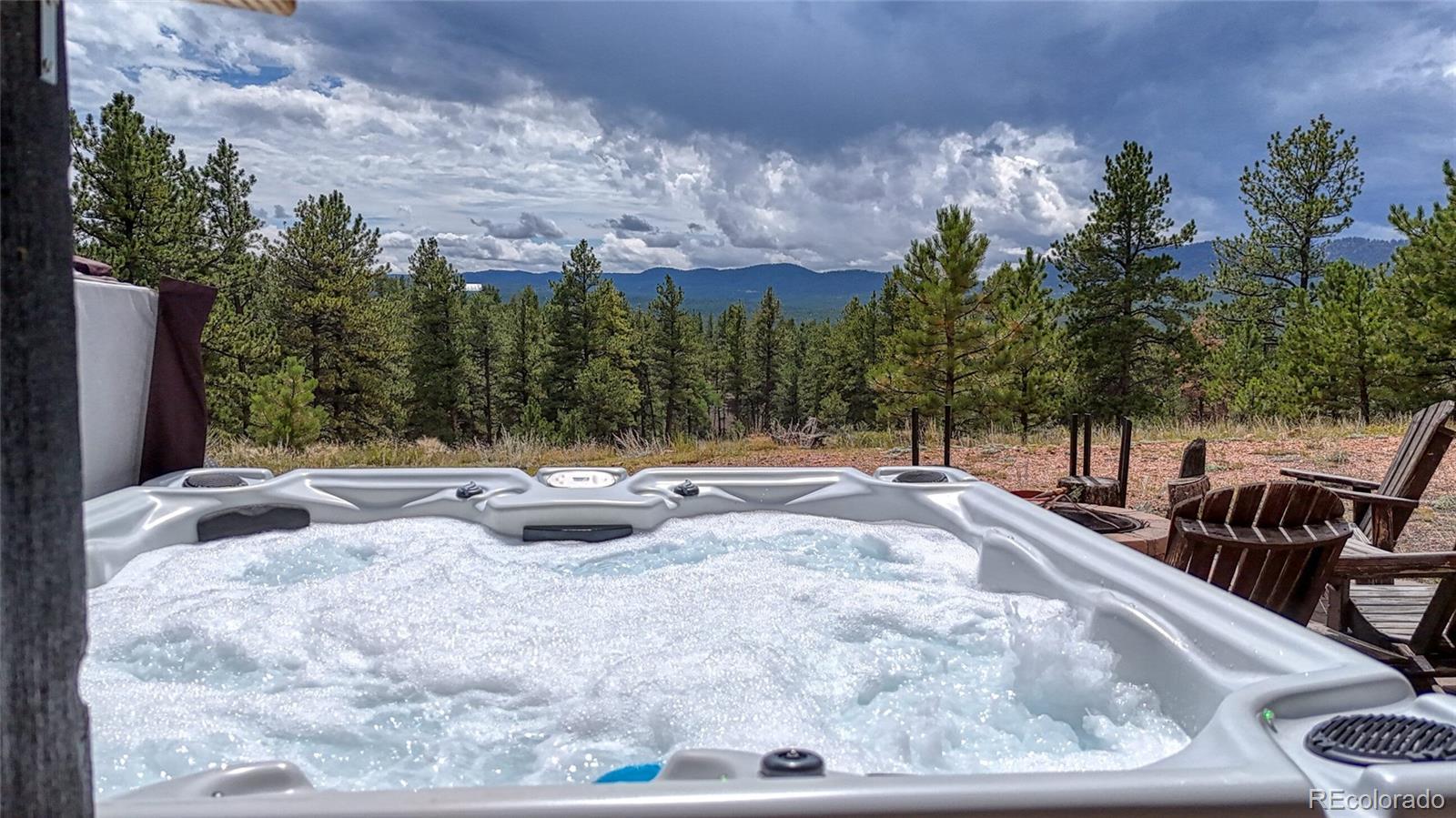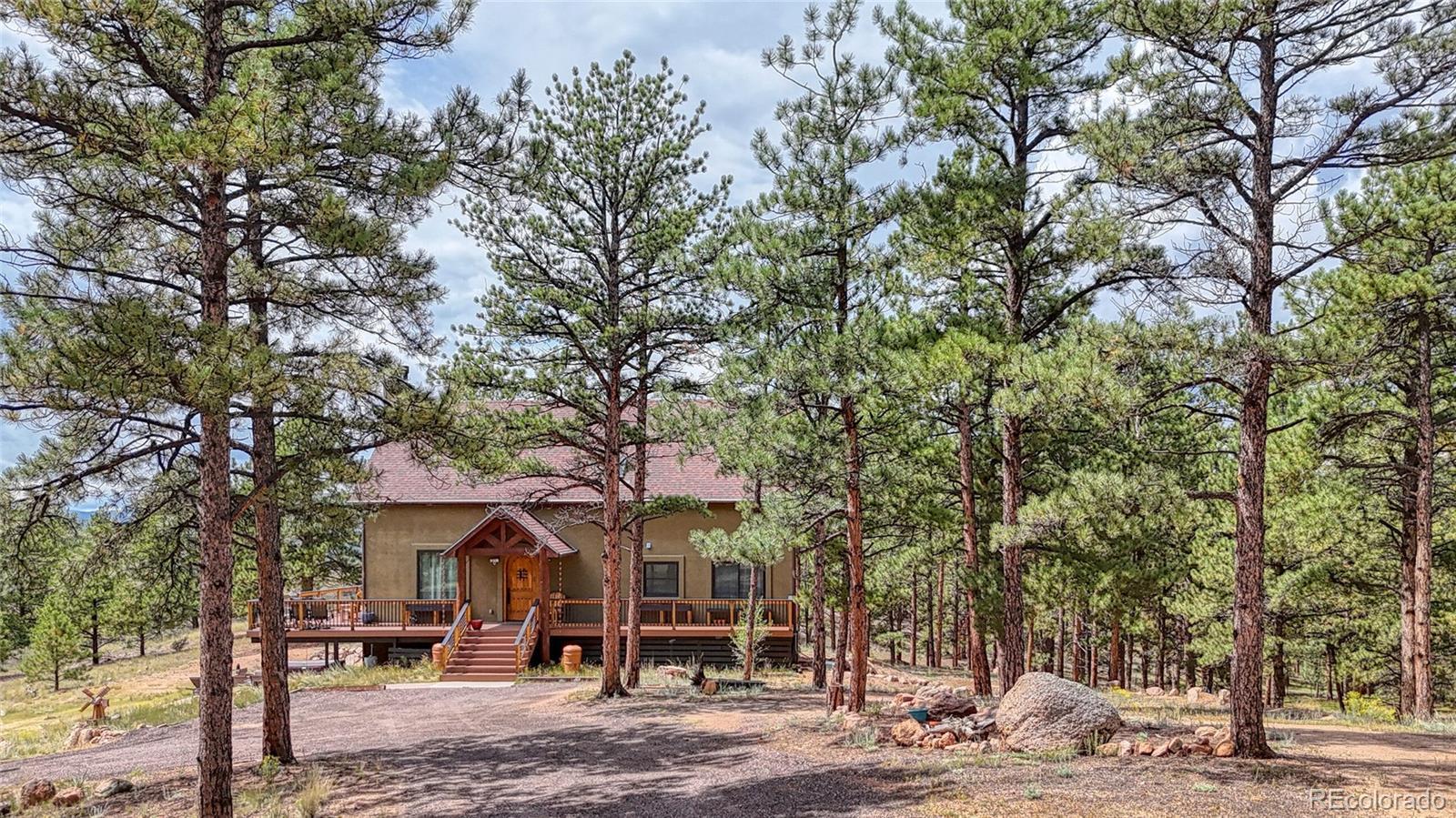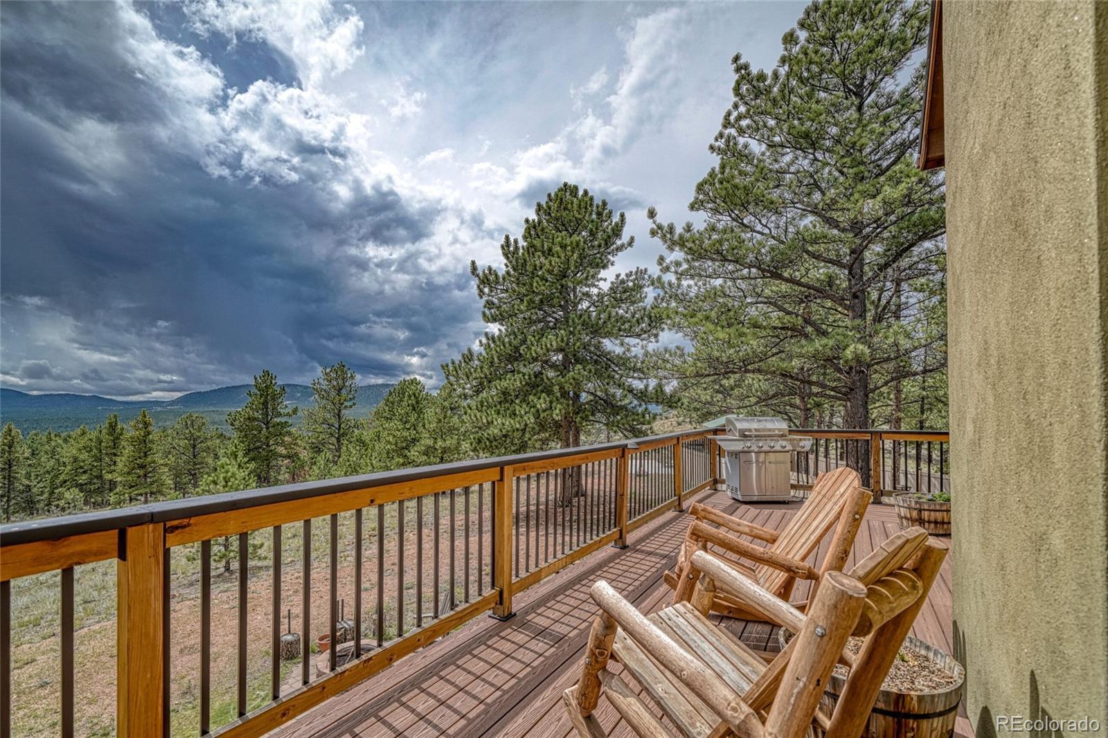 Stunning Mountain Retreat on 5 Acres Welcome to your Colorado dream home—where breathtaking views, privacy, and modern conveniences come together. This 3-bedroom, 3-bath mountain retreat sits on 5 acres and offers endless opportunities for relaxation and recreation. Soak up the sunshine on the expansive wraparound deck with southern exposure, or unwind in the hot tub on the lower patio just outside the oversized family rec room, complete with a bar for entertaining. The large, oversized kitchen features custom cabinetry, a gas range, and plenty of space for gathering. High ceilings, large windows, and fireplaces in both living areas create a warm and inviting mountain atmosphere. The private master suite offers his-and-her closets and a beautiful walk-in shower. A bonus building on the property provides flexible options—perfect for a home office, creative studio, or additional bunk space for guests. Previously used as a short-term rental, this home also includes main-level laundry, a fenced yard for privacy, and a charming garden area with a shed. Stay connected with modern services while enjoying off-grid capabilities thanks to solar power and a Generac generator. With ample room for RV parking and space to build a future shop, this property is as versatile as it is beautiful. All this, just 30 minutes to Woodland Park and an hour from Colorado Springs. With its many unique outdoor spaces and mountain charm, this home is the perfect getaway or full-time retreat.