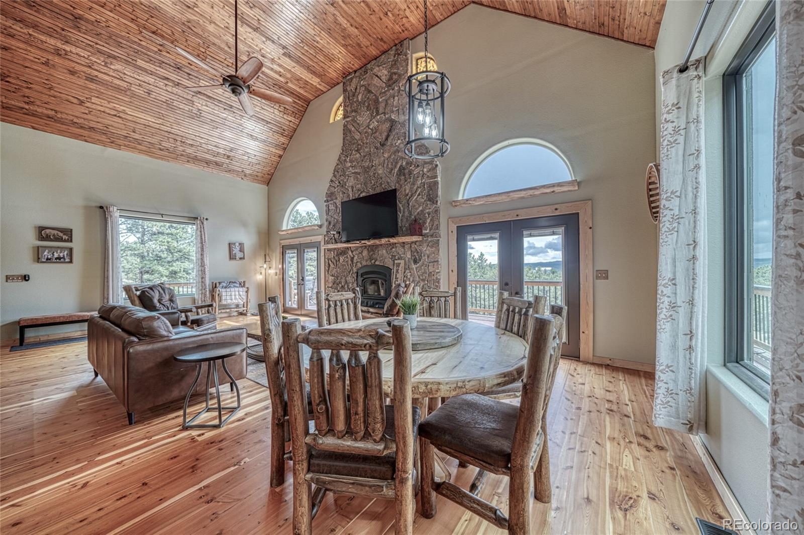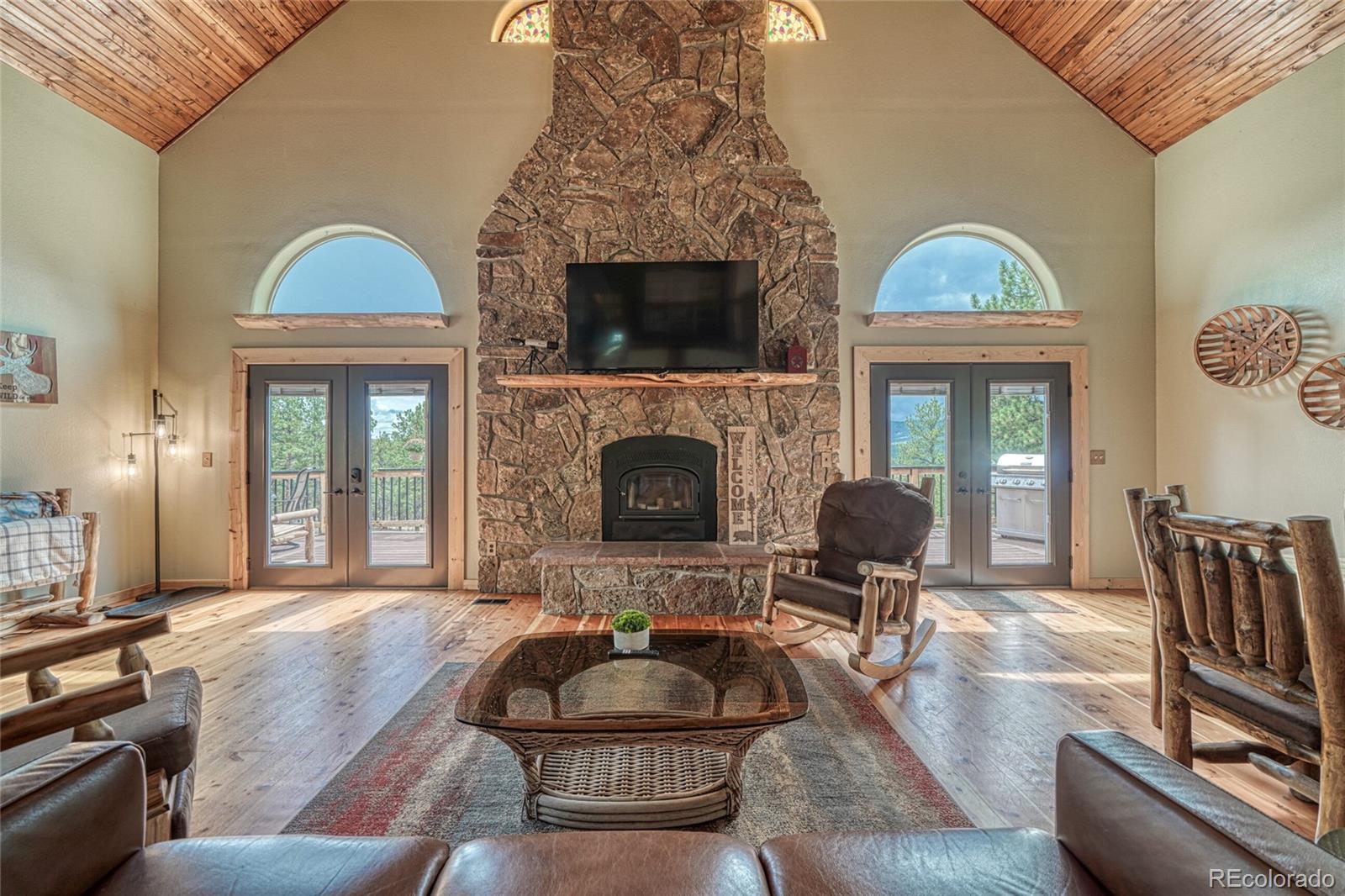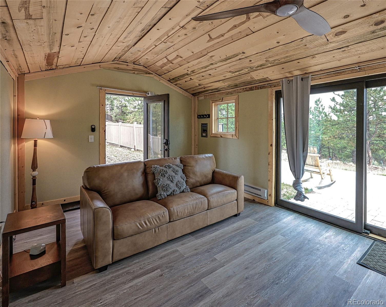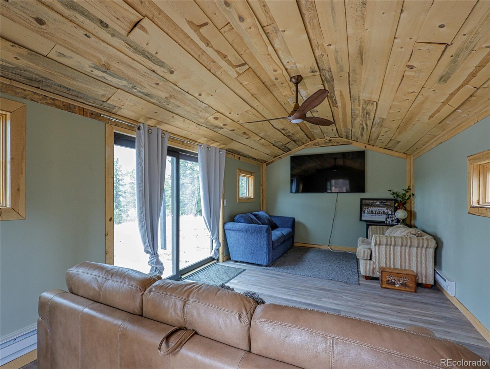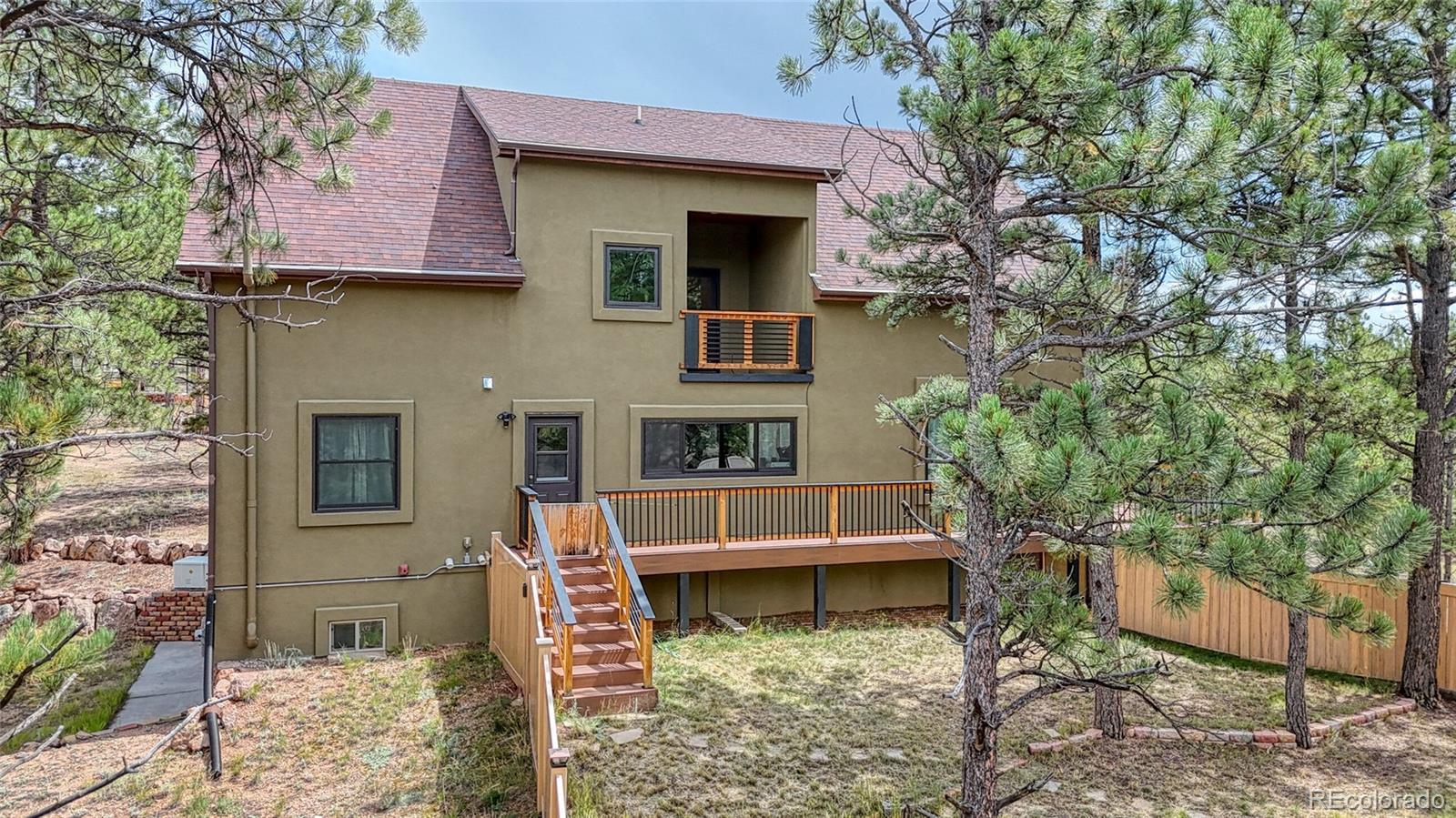 Stunning Mountain Retreat on 5 Acres Welcome to your Colorado dream home—where breathtaking views, privacy, and modern conveniences come together. This 3-bedroom, 3-bath mountain retreat sits on 5 acres and offers endless opportunities for relaxation and recreation. Soak up the sunshine on the expansive wraparound deck with southern exposure, or unwind in the hot tub on the lower patio just outside the oversized family rec room, complete with a bar for entertaining. The large, oversized kitchen features custom cabinetry, a gas range, and plenty of space for gathering. High ceilings, large windows, and fireplaces in both living areas create a warm and inviting mountain atmosphere. The private master suite offers his-and-her closets and a beautiful walk-in shower. A bonus building on the property provides flexible options—perfect for a home office, creative studio, or additional bunk space for guests. Previously used as a short-term rental, this home also includes main-level laundry, a fenced yard for privacy, and a charming garden area with a shed. Stay connected with modern services while enjoying off-grid capabilities thanks to solar power and a Generac generator. With ample room for RV parking and space to build a future shop, this property is as versatile as it is beautiful. All this, just 30 minutes to Woodland Park and an hour from Colorado Springs. With its many unique outdoor spaces and mountain charm, this home is the perfect getaway or full-time retreat.