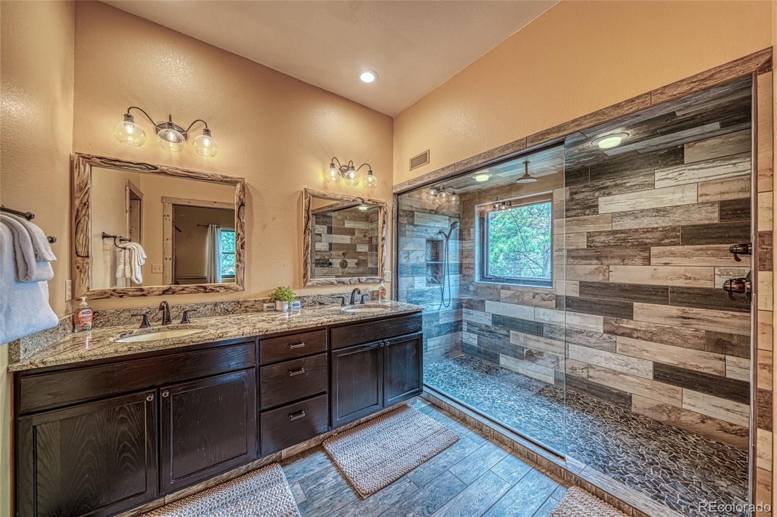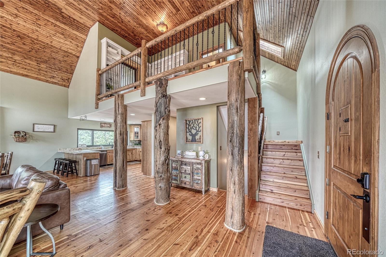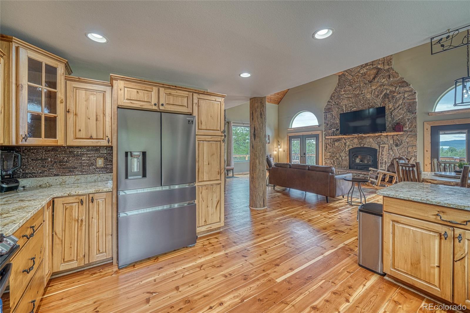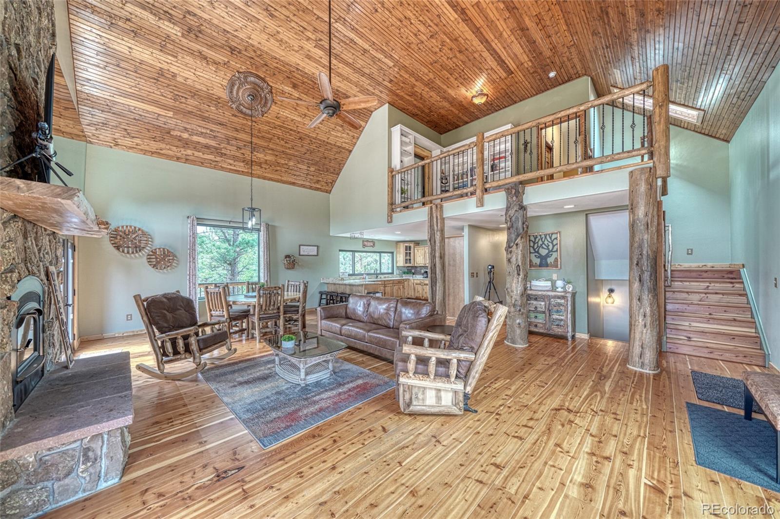 Stunning Mountain Retreat on 5 Acres Welcome to your Colorado dream home—where breathtaking views, privacy, and modern conveniences come together. This 3-bedroom, 3-bath mountain retreat sits on 5 acres and offers endless opportunities for relaxation and recreation. Soak up the sunshine on the expansive wraparound deck with southern exposure, or unwind in the hot tub on the lower patio just outside the oversized family rec room, complete with a bar for entertaining. The large, oversized kitchen features custom cabinetry, a gas range, and plenty of space for gathering. High ceilings, large windows, and fireplaces in both living areas create a warm and inviting mountain atmosphere. The private master suite offers his-and-her closets and a beautiful walk-in shower. A bonus building on the property provides flexible options—perfect for a home office, creative studio, or additional bunk space for guests. Previously used as a short-term rental, this home also includes main-level laundry, a fenced yard for privacy, and a charming garden area with a shed. Stay connected with modern services while enjoying off-grid capabilities thanks to solar power and a Generac generator. With ample room for RV parking and space to build a future shop, this property is as versatile as it is beautiful. All this, just 30 minutes to Woodland Park and an hour from Colorado Springs. With its many unique outdoor spaces and mountain charm, this home is the perfect getaway or full-time retreat.