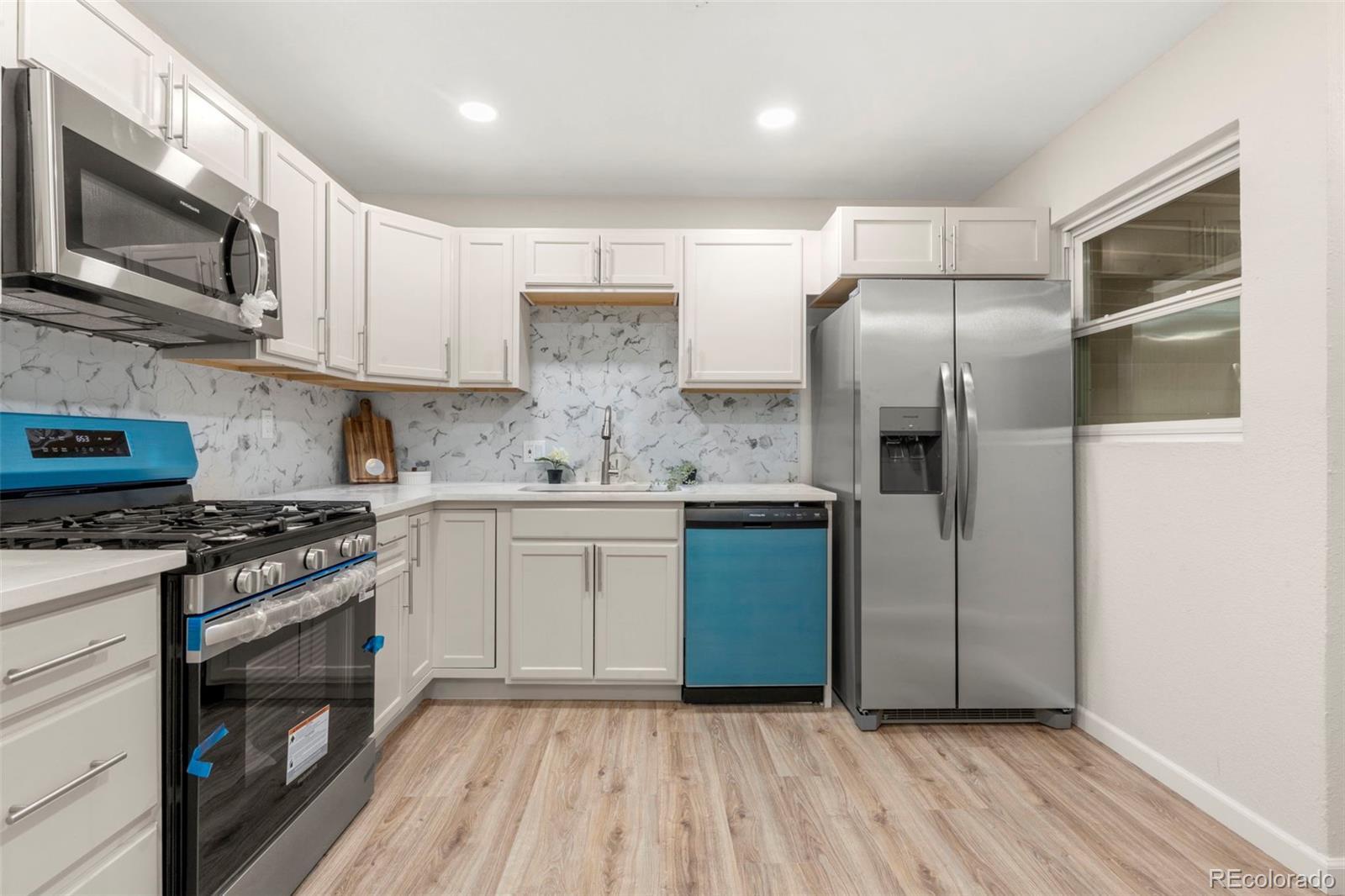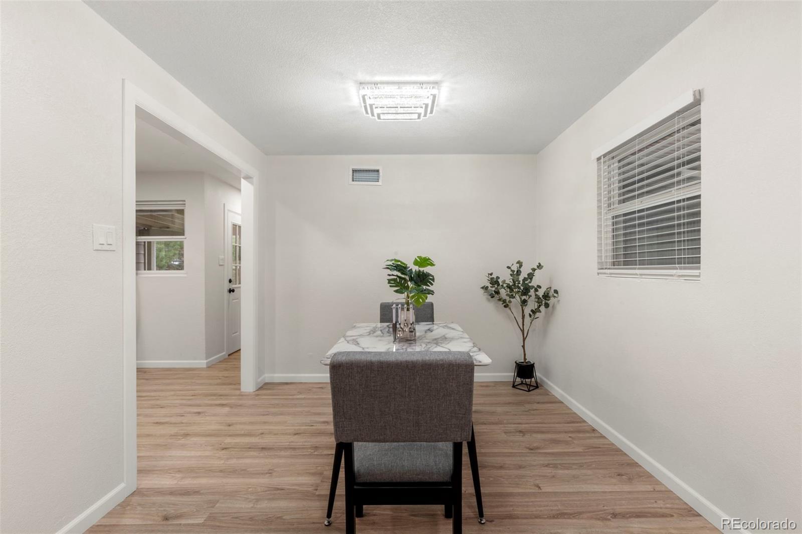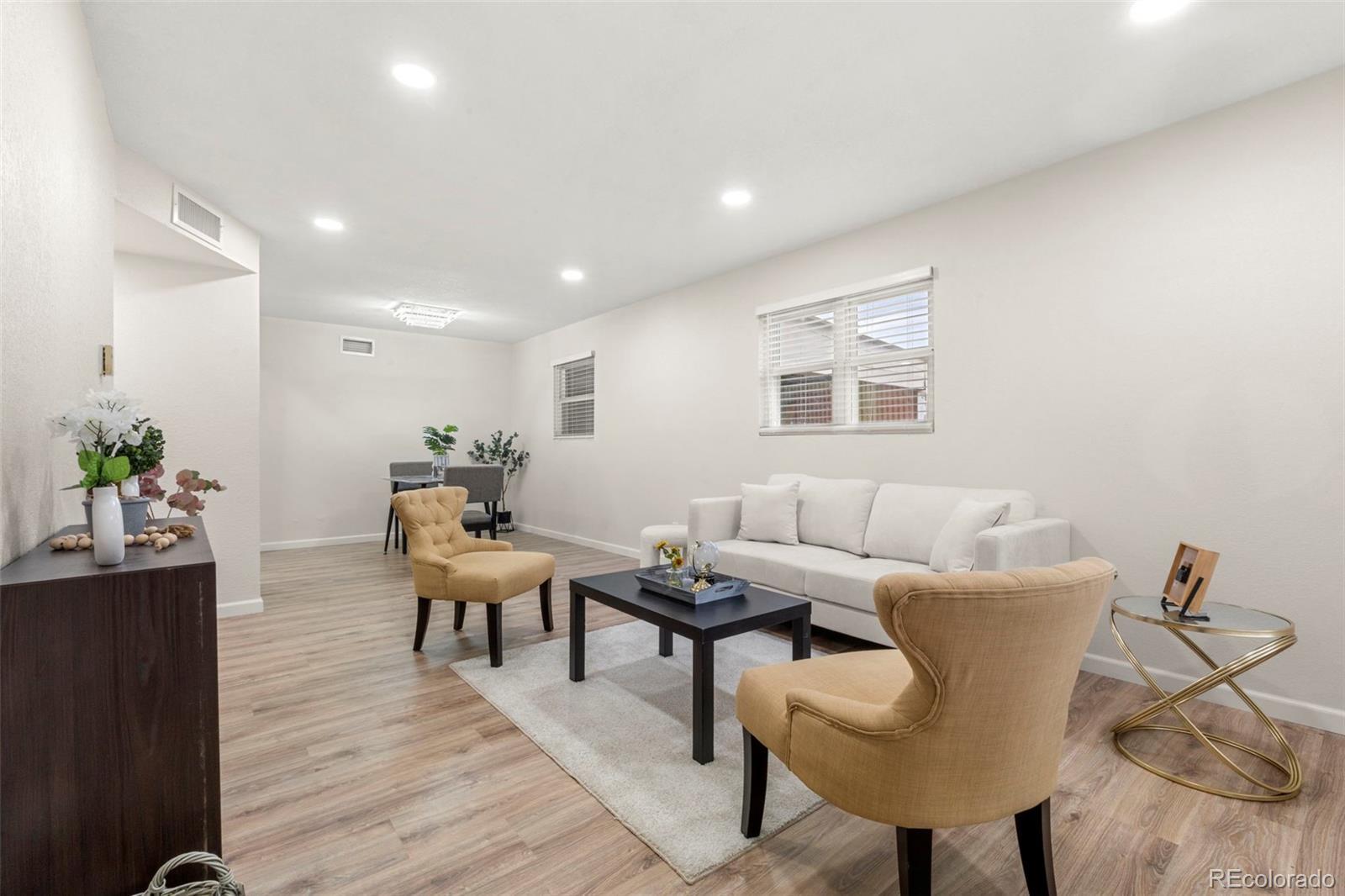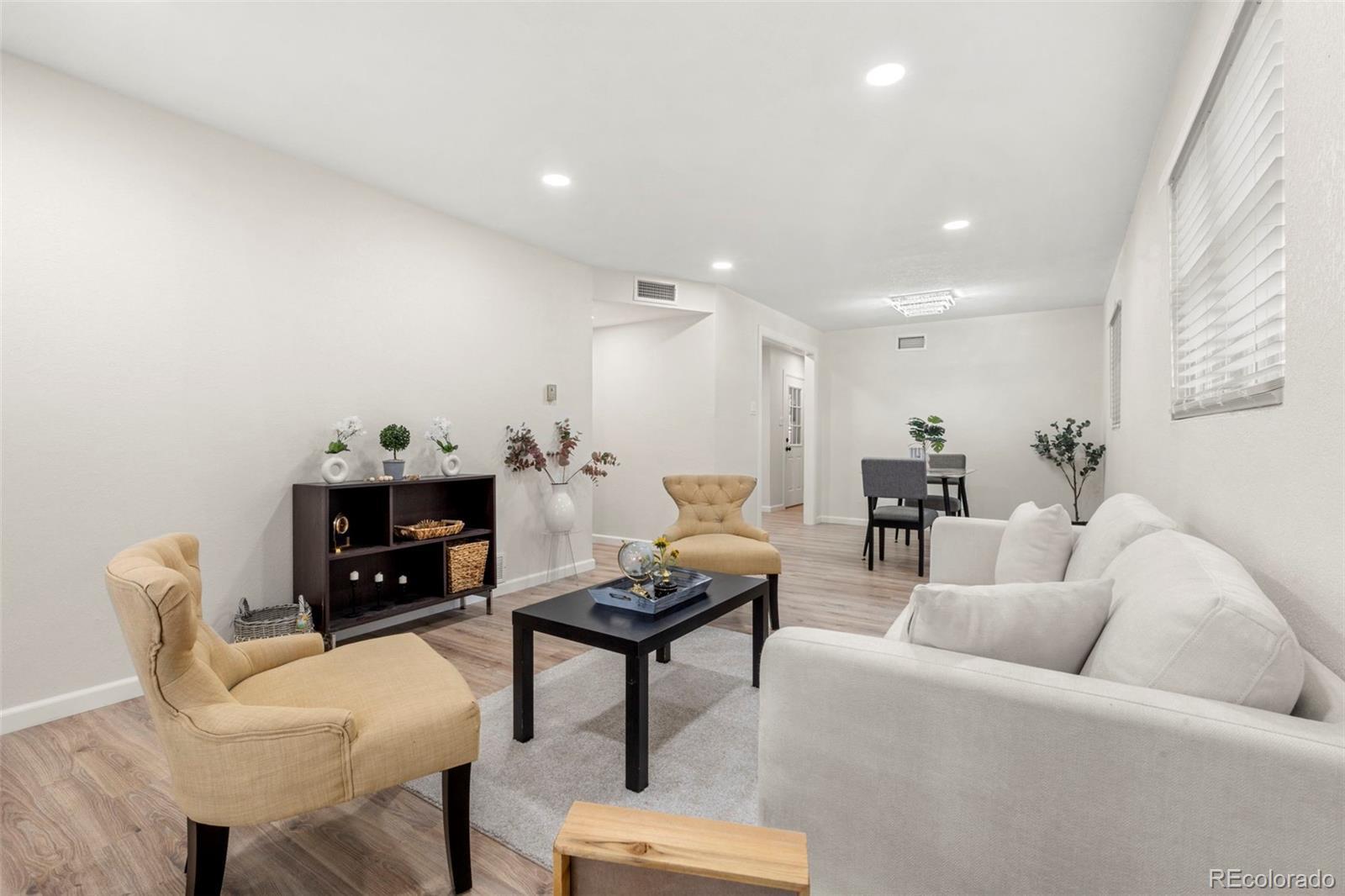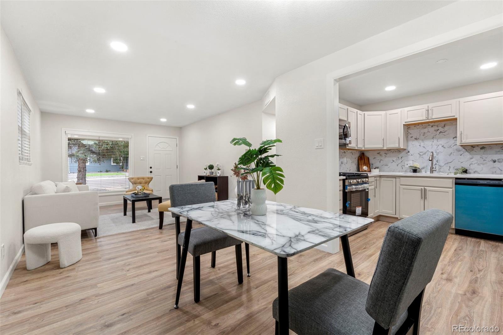 Step inside 818 Uvalda St, where quality upgrades and thoughtful design come together in this fully remodeled 3 bed, 2 bath Aurora home. Every inch of this property has been updated—from the floors to the fixtures—offering a truly move-in-ready experience. You’ll immediately notice the open-concept layout, where the living room flows seamlessly into the dining space and expansive kitchen. The kitchen is a showstopper, featuring new cabinets, granite counters with an oversized slab perfect for prep or gathering, and brand-new stainless steel appliances. What truly sets this home apart is the massive primary bedroom—a rare find in the neighborhood. It's nearly the size of two rooms, complete with two ceiling fans, a private full bathroom, and space to create a true retreat. The secondary bedrooms are well-sized and updated, and both bathrooms offer clean, modern finishes with new vanities and fully redone showers. The home also features an oversized laundry room, offering plenty of additional storage or workspace. Step outside to the spacious backyard, where a huge covered patio offers a shaded spot for entertaining, relaxing, or enjoying the Colorado seasons. Out front, mature evergreen trees provide privacy and curb appeal, while the long driveway and attached covered carport offer plenty of off-street parking. This isn’t just another updated home—it’s been reimagined with comfort, functionality, and style in mind. Schedule your showing today to see what makes 818 Uvalda St stand out.
