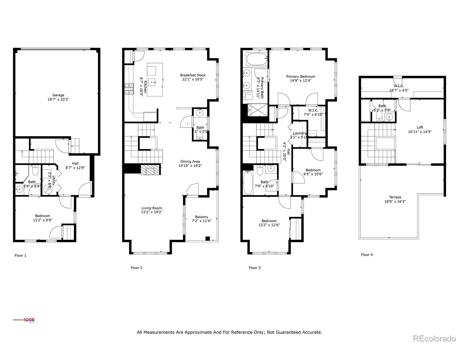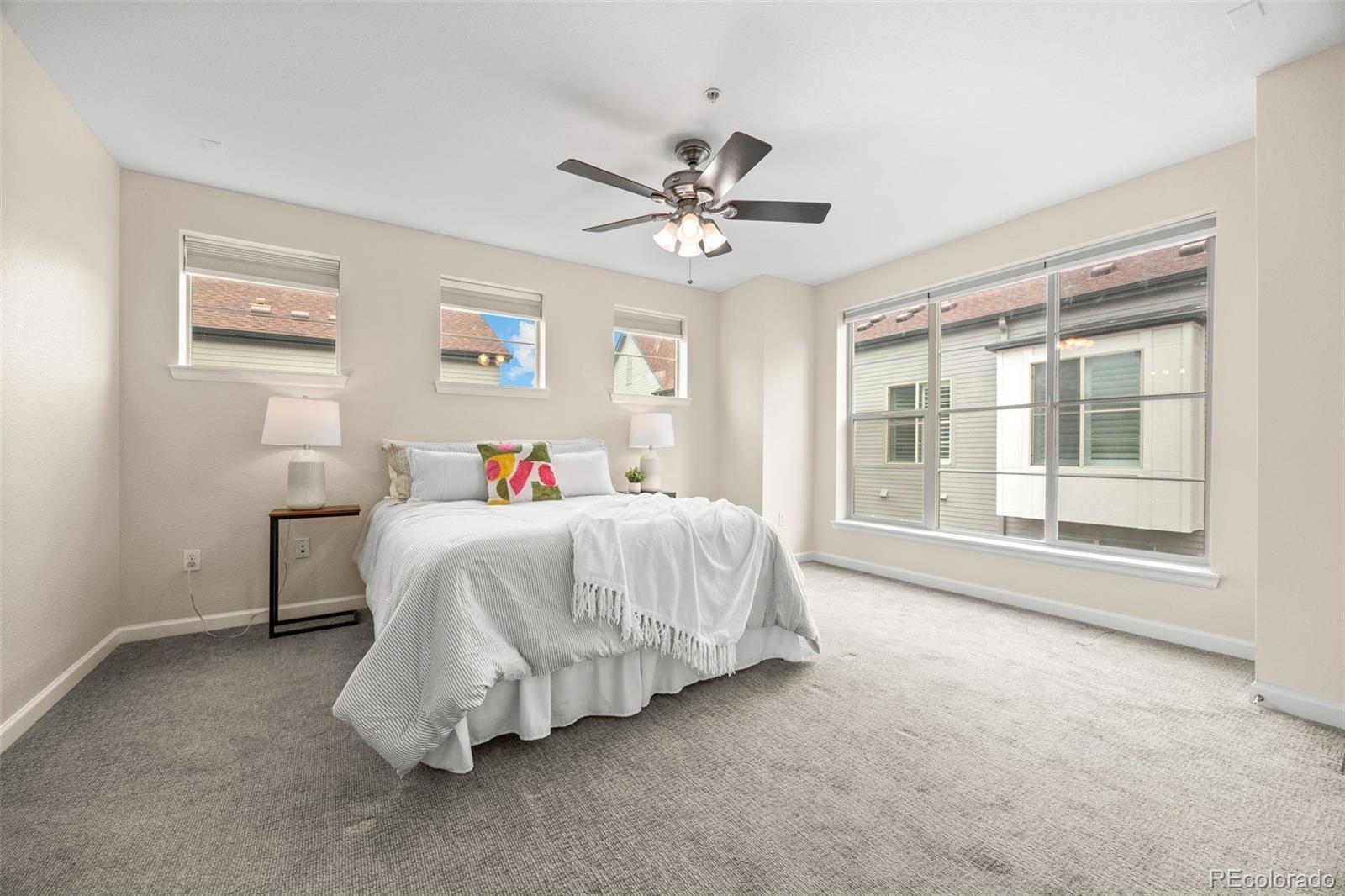 Impeccably maintained townhome in Belmar, Lakewood—move-in ready and full of charm! Seize the opportunity to own in this vibrant, walkable community just steps from shops, restaurants, and parks. Enjoy beautiful hardwood floors and plush carpet in all the right places. The ground level offers a private bedroom with en-suite bath—ideal for guests or a home office. The open-concept main floor features abundant natural light and access to a southwest-facing balcony. Upstairs, find two bedrooms and a full bath, plus the spacious primary suite with walk-in closet and en-suite bath. A bright loft on the top floor includes a 1/2 bath and access to a rooftop deck—perfect for entertaining or plant lovers! Bonus perks: 2-car garage, energy-saving blackout shades, and modern, efficient living in one of Lakewood’s most sought-after areas.