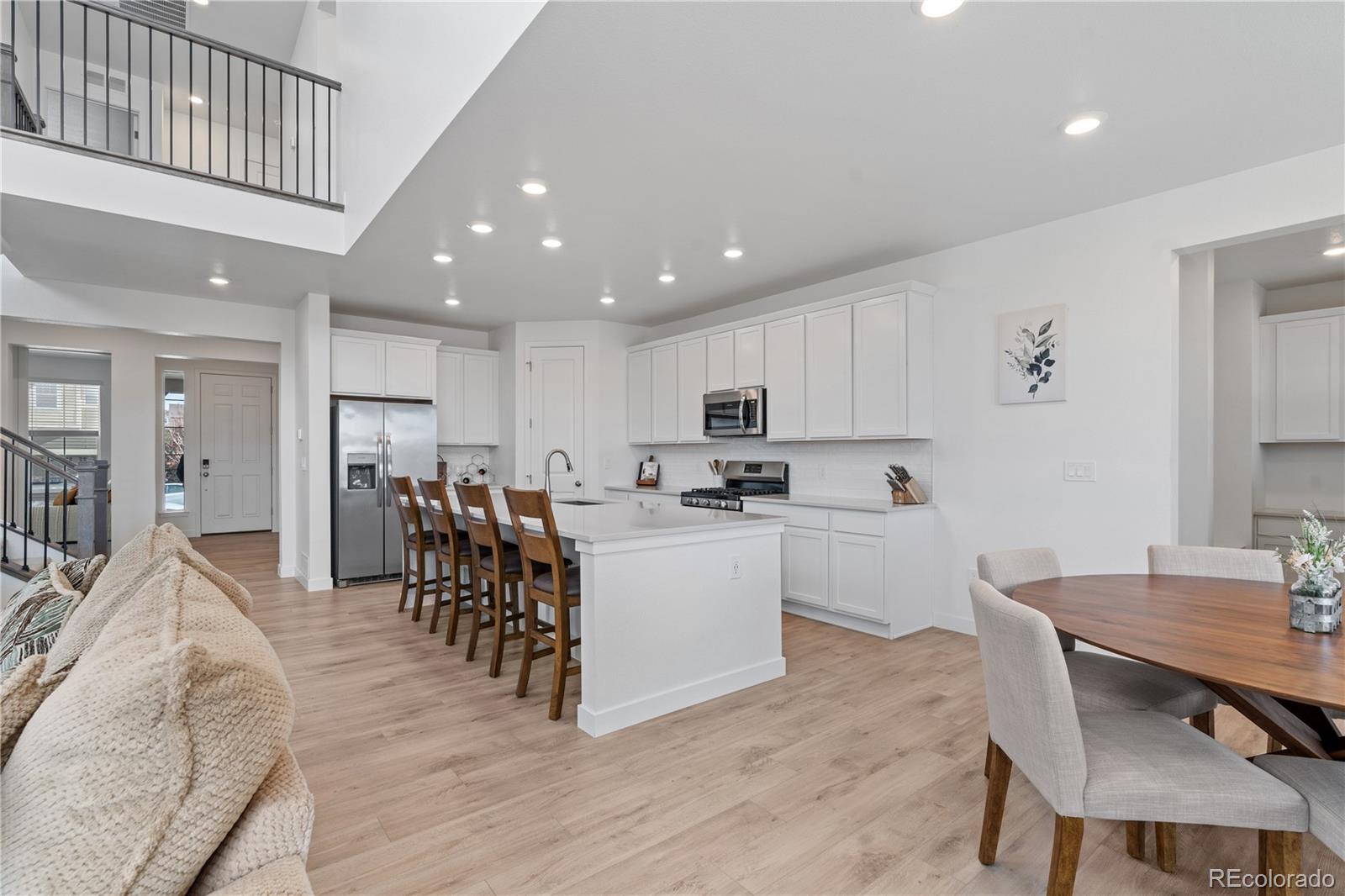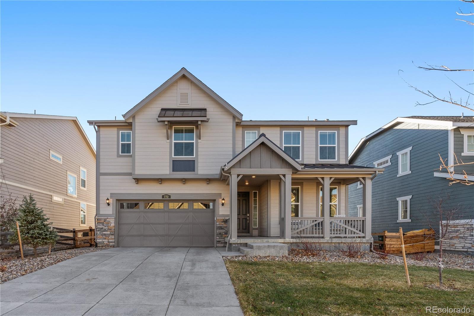 Breathtaking Mountain Views in Flatiron Meadows! Welcome to 772 Carbonate Lane — a stunning 5-bedroom, 4-bath home in Erie’s sought-after Flatiron Meadows neighborhood, offering modern design, comfort, and Colorado views that will take your breath away. Built in 2023, this home combines luxury and functionality with vaulted ceilings, floor-to-ceiling windows, and an abundance of natural light showcasing the majestic mountain backdrop. The open-concept kitchen is an entertainer’s dream, featuring a large island, stainless steel appliances, and elegant finishes throughout. Enjoy seamless indoor-outdoor living with a spacious covered back deck overlooking open space—the perfect spot to relax, take in hot air balloon views, and watch the Colorado sunsets. The turfed backyard offers a low-maintenance lifestyle, so you can spend more time enjoying the nearby walking trails and community parks. Additional highlights include a 3-car tandem garage, dual furnaces, and two A/C units for year-round comfort. Experience modern Colorado living at its finest in this thoughtfully designed home, where every detail complements the surrounding natural beauty.
