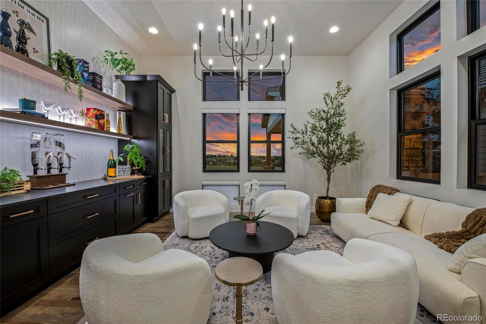 Experience the pinnacle of modern luxury living in this extraordinary ranch-style masterpiece nestled within the prestigious Pradera Country Club. Set on a beautifully landscaped 0.82-acre lot, this stunning estate blends sleek sophistication with resort-style comfort. Every inch of this home has been thoughtfully designed with impeccable attention to detail—from soaring ceilings and rich custom finishes to seamless indoor-outdoor flow. Entertain in style with a saltwater pool, a private guest casita, a custom-designed cocktail lounge, and a golf simulator room. A fully outfitted pool house and expansive covered patio provide the perfect setting for unforgettable gatherings and sunset views. Car enthusiasts will appreciate the oversized 5-car garage, while guests will love the privacy and elegance of the separate casita. This home is a rare opportunity to enjoy the best of Colorado luxury living—privacy, views, and unparalleled amenities in one breathtaking package. Homes of this caliber rarely come available—schedule your private showing today