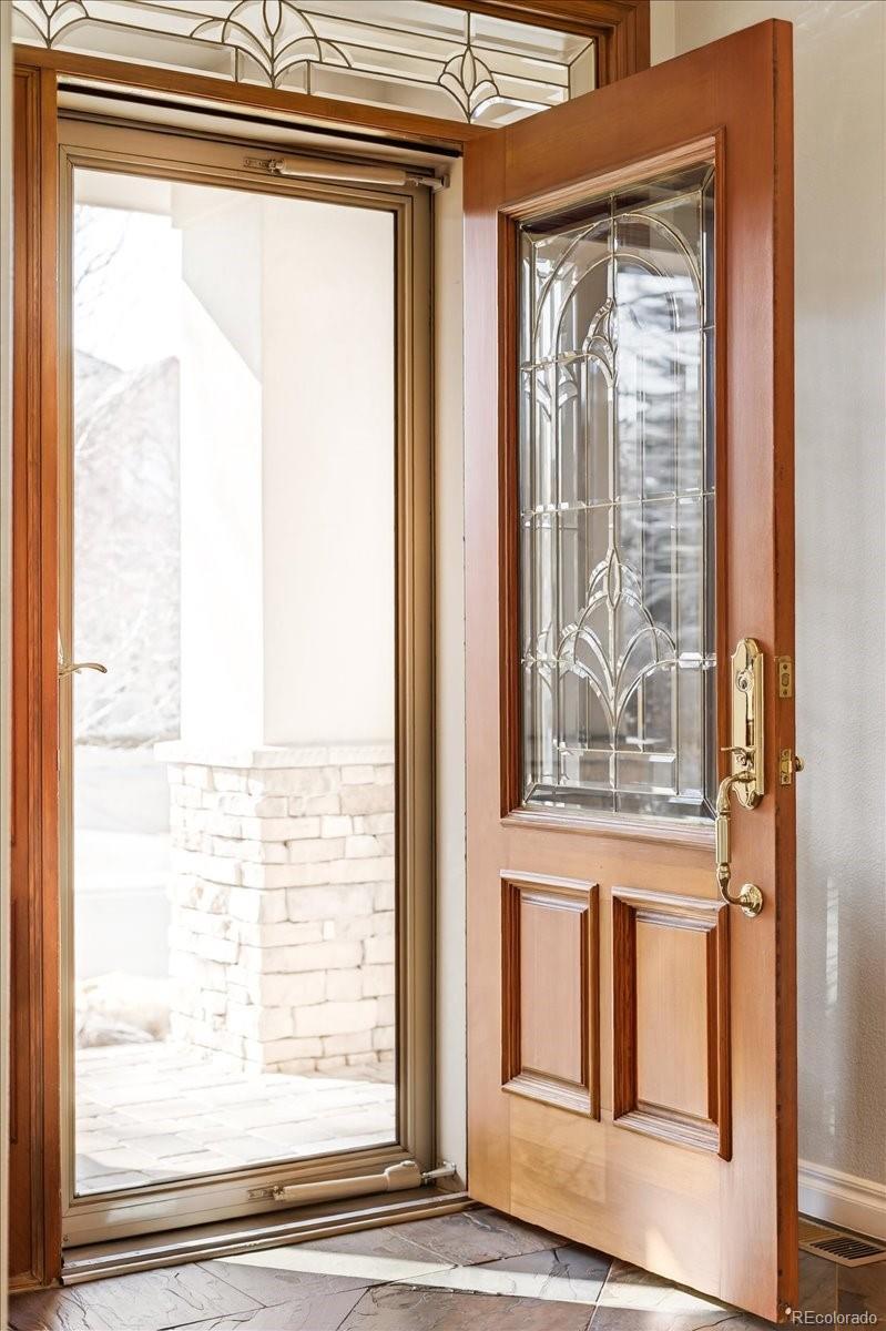 RARE CUSTOM RANCH IN THE GATED HERITAGE HILLS ENCLAVE OF THE SUMMIT! One of just seven ranch homes in this 277-home community, this exclusive residence is set on a desirable interior street framed by lush landscaping and mature trees: flowering pear, ash and maple. Step inside to a grand entry opening to the atmospheric interior bathed in natural light, high ceilings, oversized picture windows, slate floors, fine millwork & elegant touches throughout. The great room is the go-to gathering place for friends & family boasting a granite fireplace & built ins. Adjacent is the first-class kitchen, featuring an enormous granite island, Cherry cabinets, butlers pantry, professional grade appliances including a JennAir 6-burner gas range, eat-in nook w/ skylight in view of the backyard. Take the party outside to the expansive patio & TREX deck to enjoy the private walled yard, a serene space to relax & share evening dinners al fresco...continue with dessert in the formal dining room. You have an impressive study w/ custom bookshelves & chair rail. The main floor primary suite features a gas fireplace, coffered ceiling, picture window, 5-pc bath, marble vanity, jetted soaking tub, walk-in closet. You have a 2nd bedroom on main, well-appointed laundry, full & 1/2 bath. The basement has a spacious rec/entertainment rm with wet bar, 2 bedrooms, each with its own bath, providing two distinct areas for guests, 11 ft ceilings, exterior door to backyard, plenty of storage, 2 furnaces, 2 50-gal water heaters, radon system, HEPA air filtration system, separate basement HVAC controls. The oversized finished garage w/ polymer floor is fitted w/ custom cabinets for tools & lawn equipment. Fresh paint throughout & new LVT bsmt baths 2026. Enjoy all that Heritage Hills has to offer--2 clubhouses, 2 pools, tennis/pickle ball courts, with a new pavilion planned. Convenient location close to C-470, Park Meadows, Skyridge Medical, shopping & restaurants. Make this exceptional home yours!
