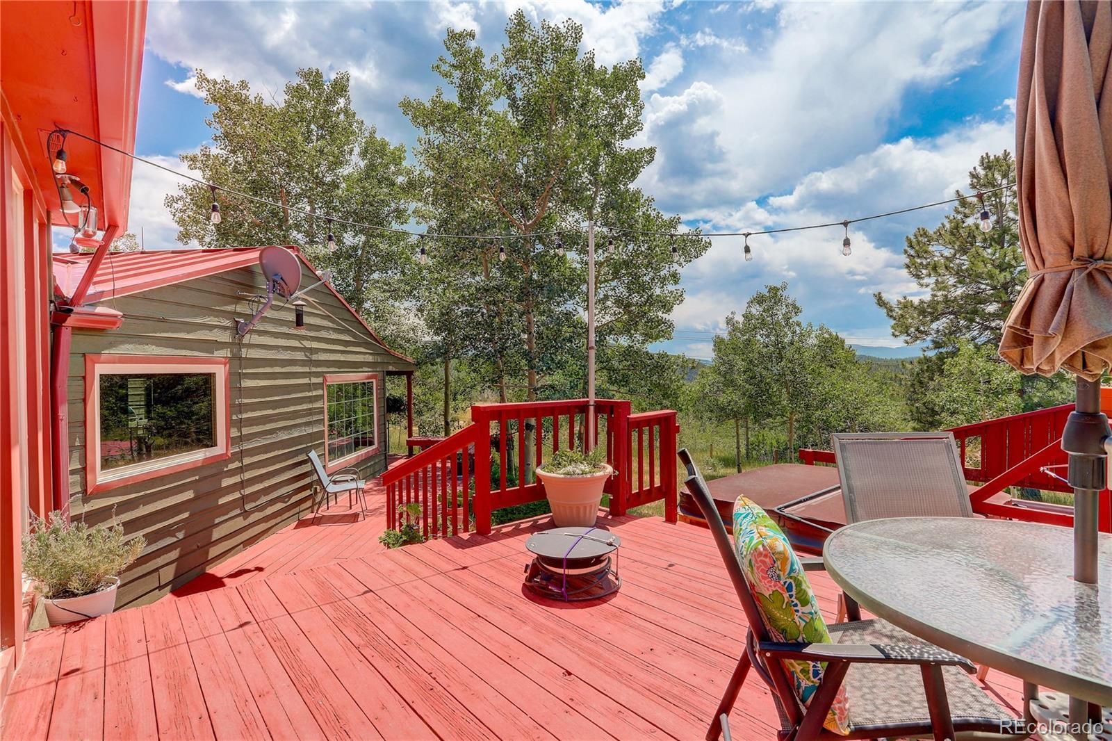 Discover the charm of this delightful cabin, perfectly situated just minutes from schools, the Rec Center, Downtown Black Hawk, Central City, entertainment and dining, plus hiking in national forest lands. Nestled on a gently sloped .78-acre lot adorned with aspen trees, mountain views, and an abundance of wildflowers, this home offers a serene and picturesque setting! Featuring 3 bedrooms, 2 bathrooms, and walls of amazing windows. This cabin boasts a metal roof, fantastic decks (both covered and uncovered), a private hot tub, and a 4-car attached tandem garage with plenty of RV parking and room for all your toys. Whether you're just starting out, downsizing, or looking for a vacation rental, this charming home is the perfect size for any stage of life. Lovingly maintained and not on the market for 51 years, this super cute home is being sold as-is, allowing you to add your personal touches. Please note that the solar panels are not connected, as they were used for an old hot water heater that has been replaced, but the panels remain due to the metal roof. Don't miss the opportunity to make this enchanting cabin your own - Call for details and come take a look!