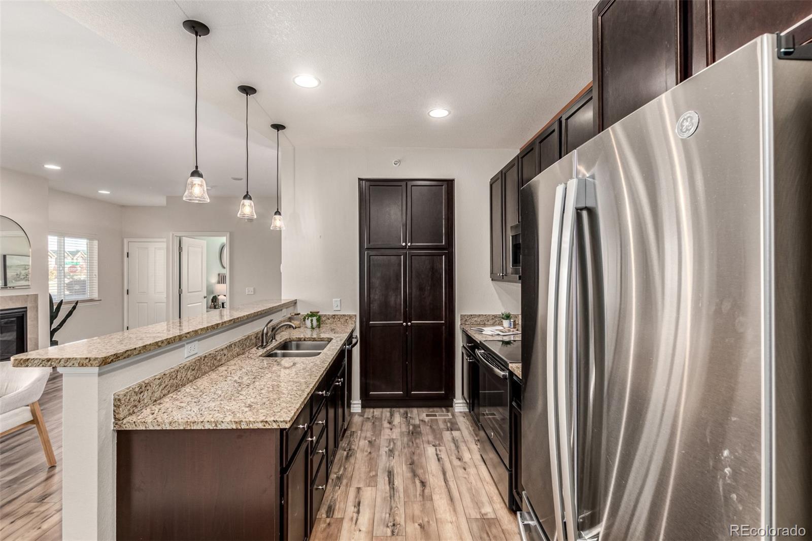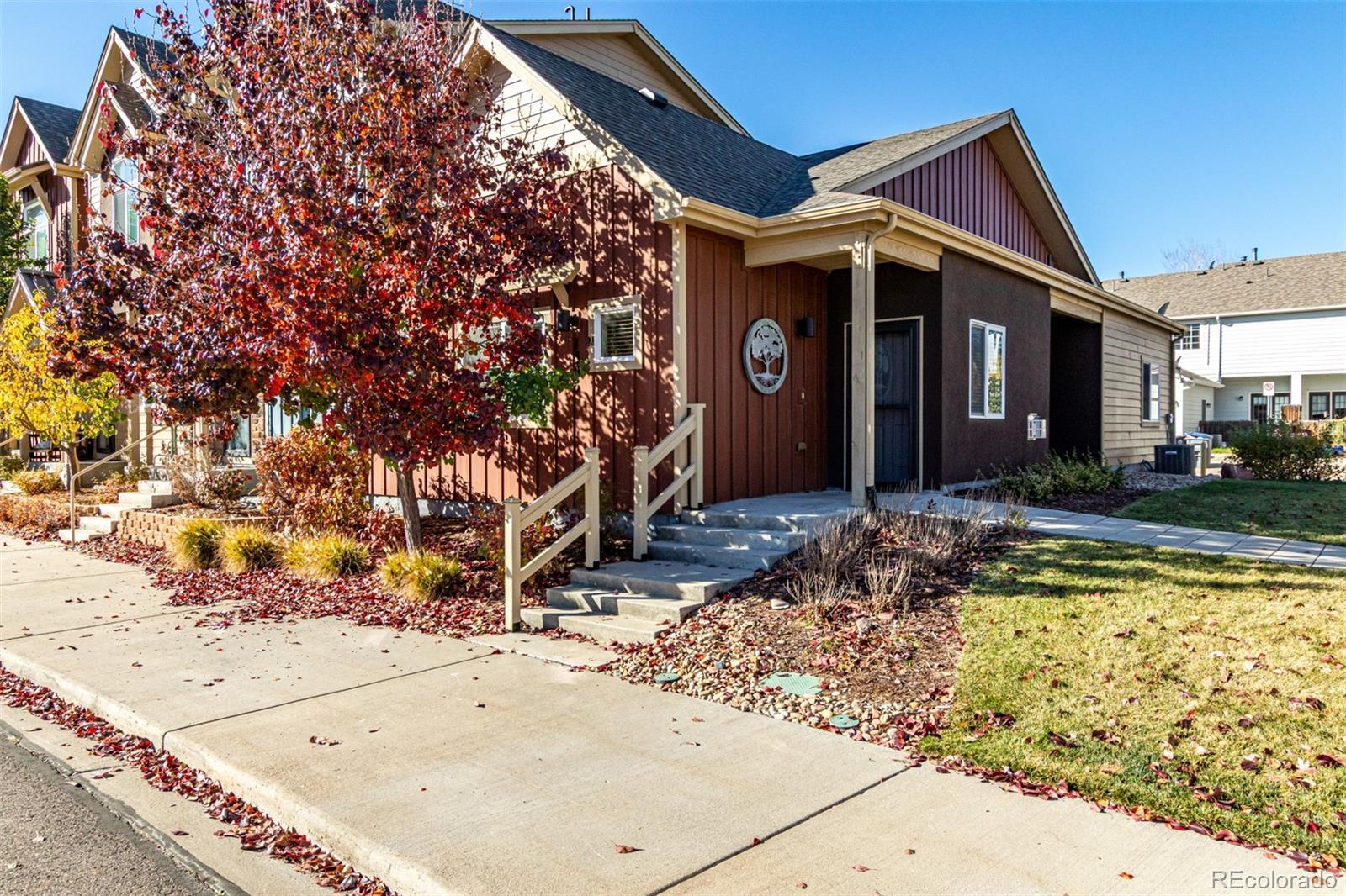 Welcome Home! This east-facing, coveted one-level, end-unit townhome offers a well-designed and efficient floor plan with premium accents. Enjoy the privacy of only one shared wall, a lush open green space accessible from your patio, and a west-facing attached garage that provides convenient, protected entry during winter. Located on a quiet side street, this ranch-style unit epitomizes low-maintenance living at its best. Enter through the front door, accessible via a few steps or a convenient ramp, to brand new 2025 luxury vinyl plank flooring that extends throughout the family room, dining area, hallway, and kitchen. The family room features a fireplace, perfect for creating a cozy atmosphere. The carpeted primary bedroom, situated on the east side of the home, includes a ¾ en-suite bathroom that is also wheelchair accessible. The well-equipped kitchen boasts a brand-new 2025 refrigerator, granite countertops, a smooth-top range, ample storage, and workspace. A full-size, stacked washer and dryer are discreetly located in a closet adjacent to the second full bathroom and bedroom. This bathroom also serves as an en suite for the carpeted second bedroom, providing an ideal setup for guests. The HOA fees cover water, exterior maintenance, and snow removal, adding to its convenience. The home is ideally located next to a neighborhood park and is close to the Longmont Museum, Recreation Center, and the shops and restaurants of historic downtown Longmont. It also offers easy commuting with quick access to Boulder, I-25 to Denver, and DIA. This rare one-level property offers a blend of comfort, convenience, and unique features that truly set it apart. Don't miss the opportunity to call this home today.