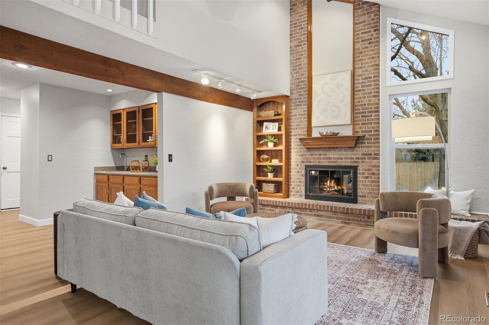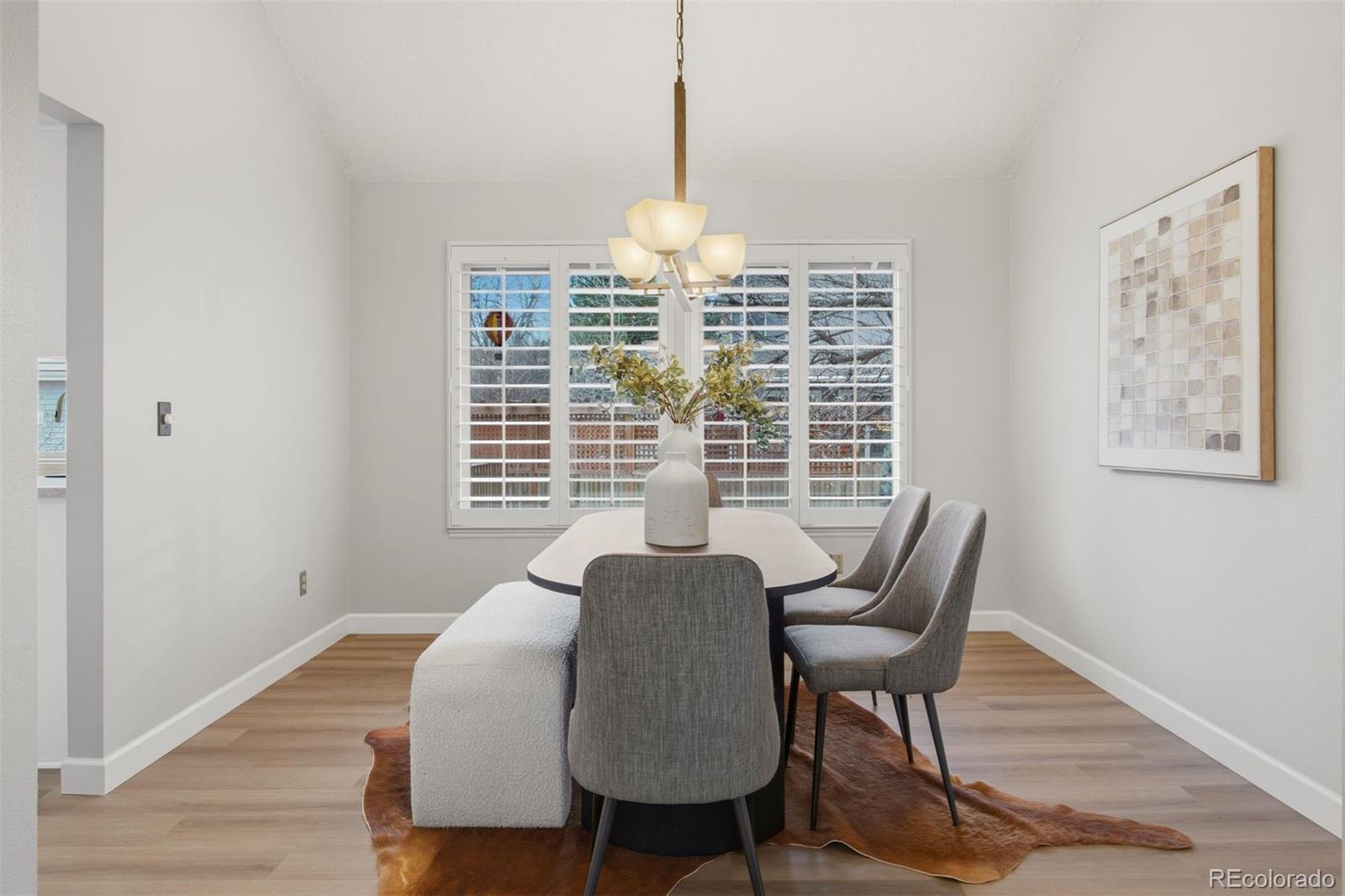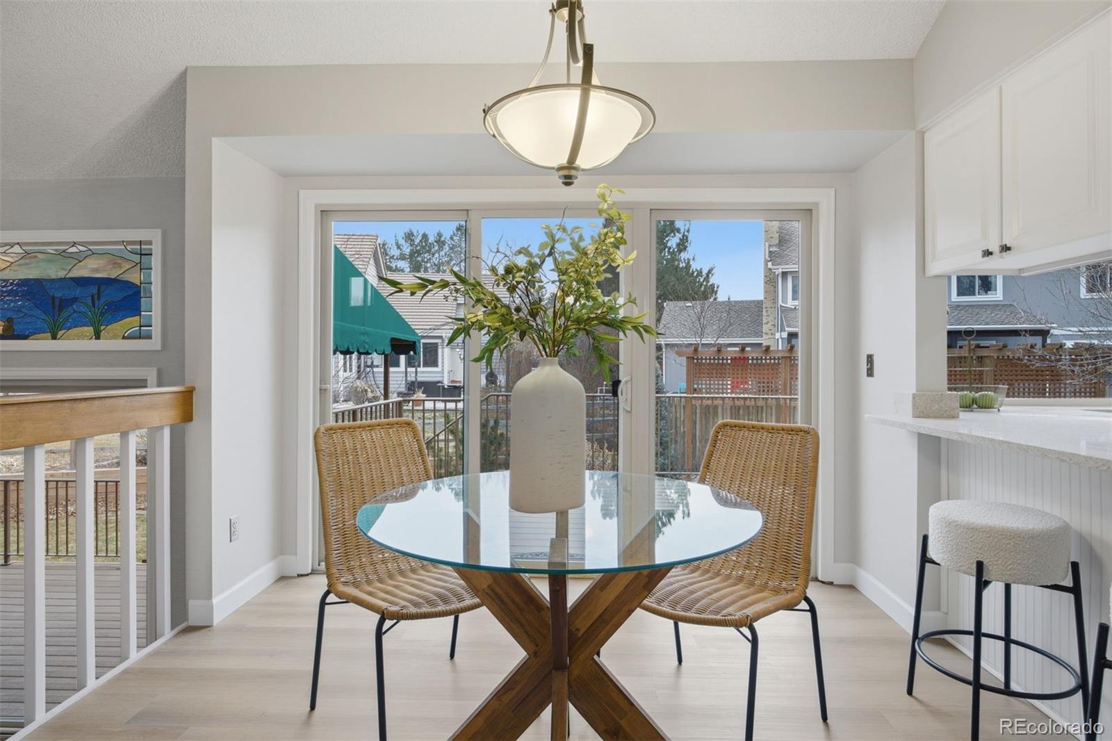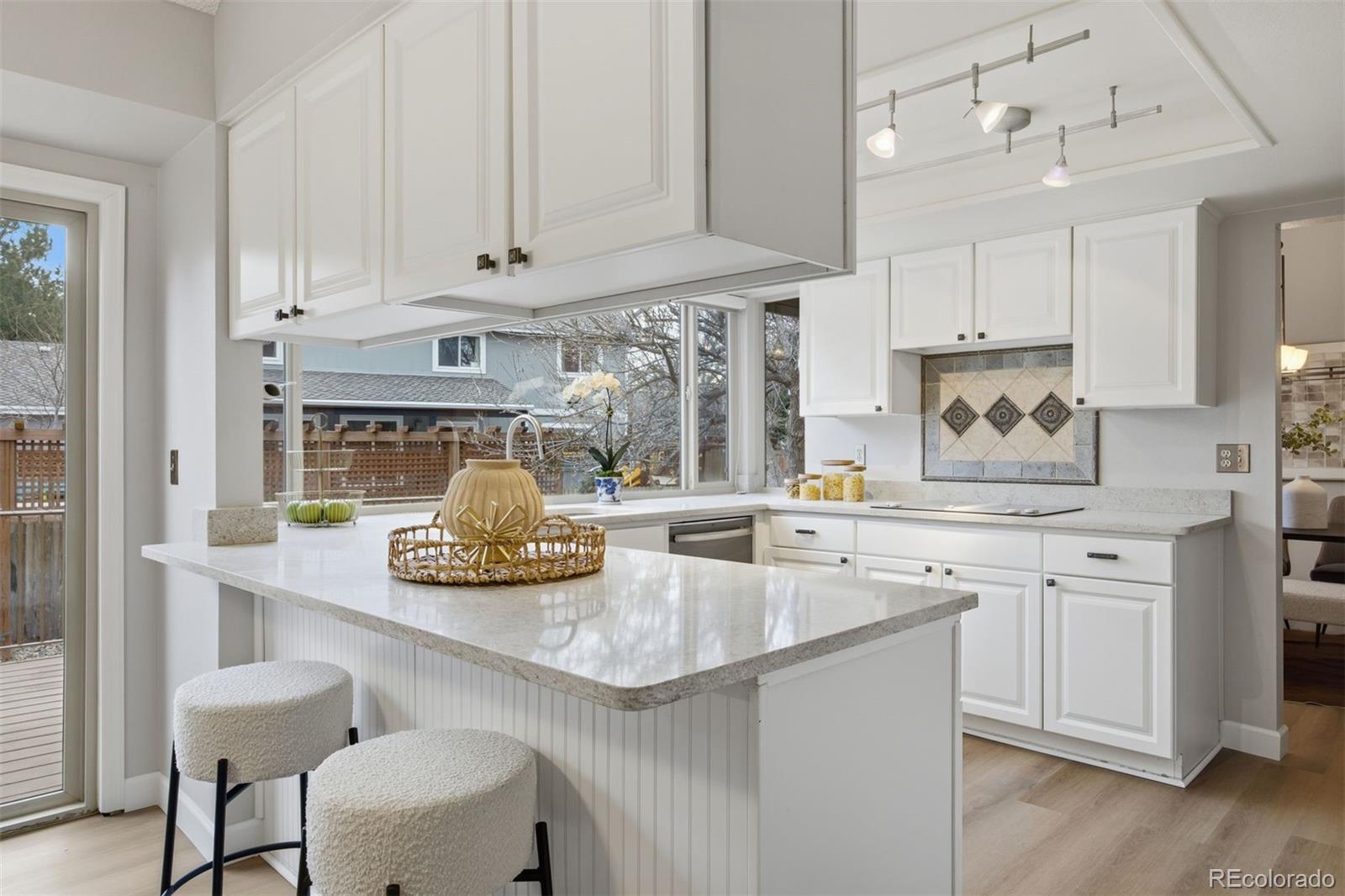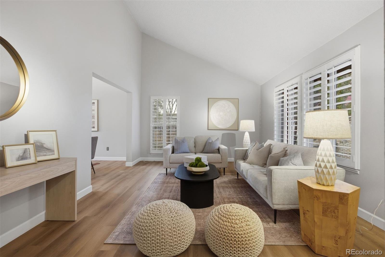 Timeless charm meets thoughtful modern updates in this meticulously maintained home, ideally located in the highly sought-after Tiffany community. Positioned on one of the neighborhood’s larger lots within a quiet cul-de-sac, this residence benefits from minimal traffic and an inviting setting. Recently remodeled, the home offers four bedrooms, four bathrooms, and 3,761 square feet of well-designed living space, complemented by an oversized garage and the rare convenience of a heated driveway and front walkway. Inside, fresh interior paint, updated trim, new lighting, and new flooring create a bright, cohesive aesthetic throughout. The open floor plan features a spacious living and dining area with vaulted ceilings and plantation shutters, flowing seamlessly into a beautifully updated white kitchen with quartz countertops and a sun-filled eating nook. The kitchen overlooks a generously sized family room with vaulted ceilings, a striking gas fireplace, and a wet bar—ideal for entertaining. Sliding doors lead to a large backyard with mature trees and an expansive newer Timber Tech deck, providing excellent outdoor living and entertaining space. The main level also includes a functional office with built-in cabinetry, a guest bedroom, and a full bathroom. Upstairs, the primary suite showcases vaulted ceilings, a private outdoor patio, and an updated five-piece bath with a large walk-in closet. Two additional spacious bedrooms with new carpet and paint, an updated bathroom, and a loft area complete the upper level. The bright garden-level basement provides versatile recreational space, a large laundry room, and a fourth bathroom. Conveniently located near Sandburg Elementary, Arapahoe High School - award-winning Littleton Public Schools. Backing to the Big Dry Creek Trail and Cherry Knolls Park offers miles of open space and natural beauty.