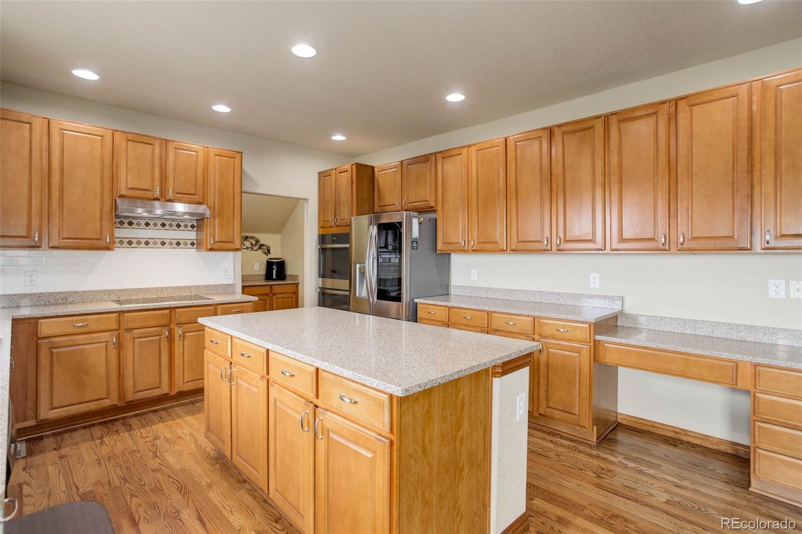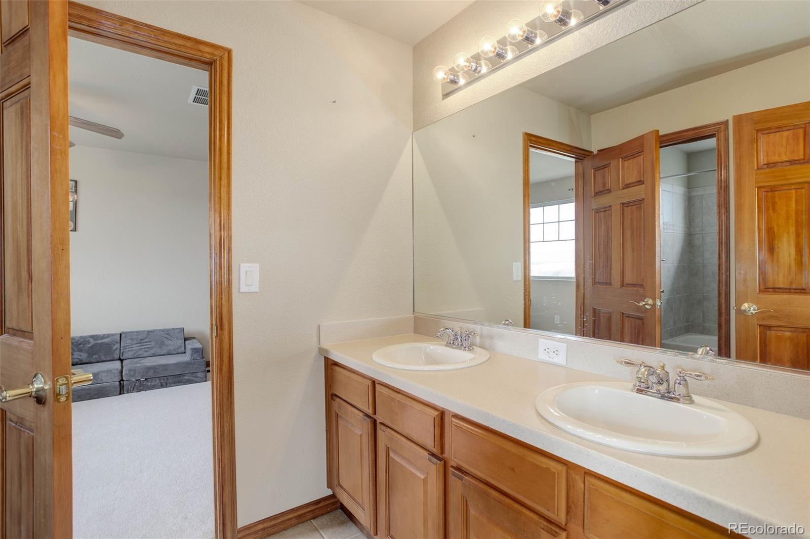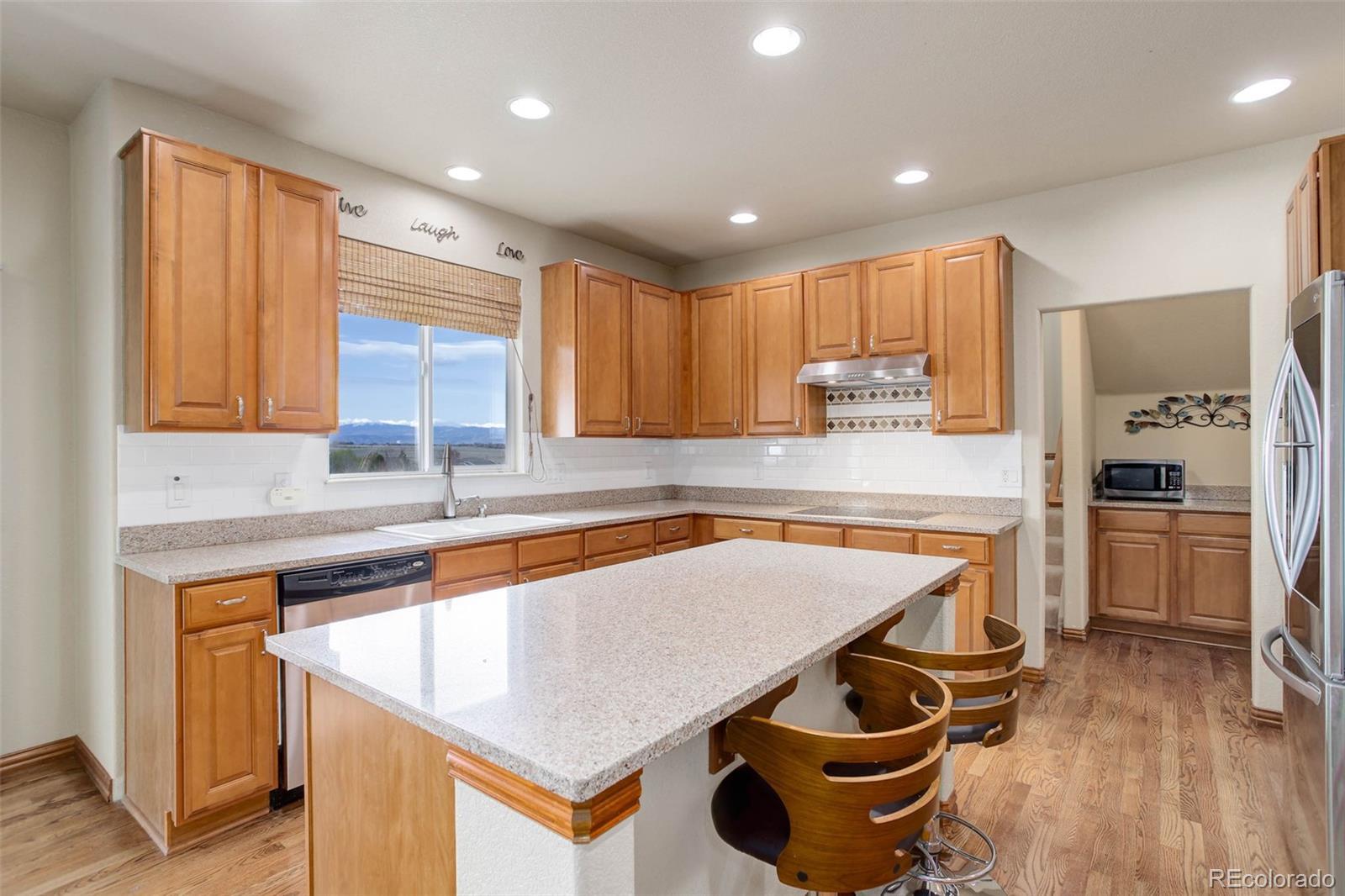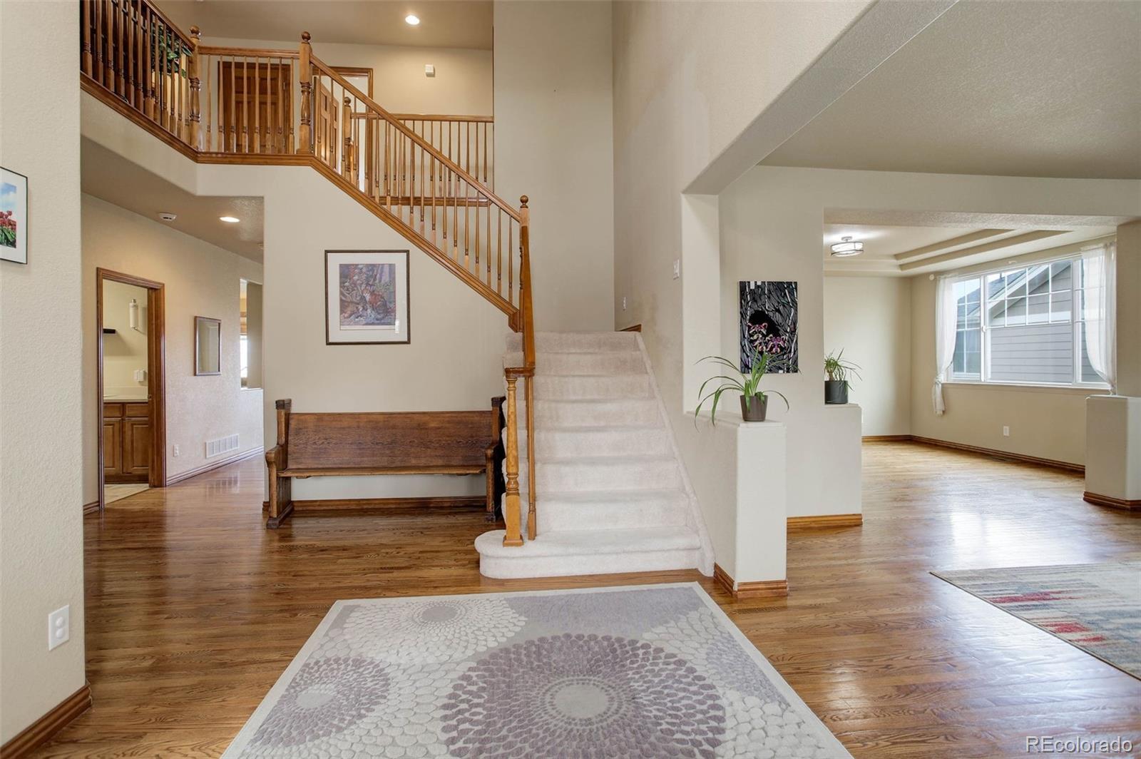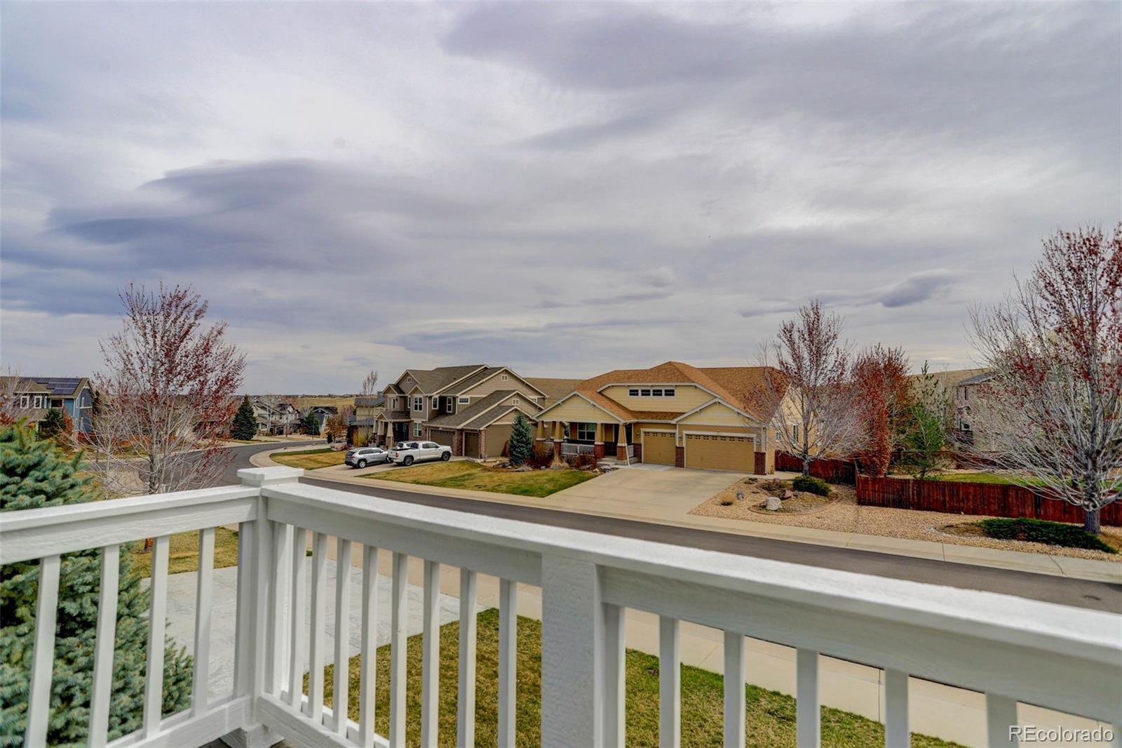 Wake up to the sight of snow-capped peaks from your private sanctuary, and savor sunsets that paint the skies in hues of amber and violet, all visible from expansive windows and outdoor spaces. Whether you’re enjoying your morning coffee on the covered deck or hosting gatherings in the spacious living areas or simply taking in the view, this home is a celebration of tranquility and elegance. Set against a backdrop of unobstructed mountain views and bordered by open space, this home is a breathtaking fusion of comfort and style. Step inside to discover gleaming hardwoods that flow seamlessly through the main floor, setting the stage for an inviting and warm atmosphere. At its heart lies a stunning kitchen designed to delight with abundant cabinets, granite counters, double ovens, a spacious walk-in pantry, and a butler’s pantry. A versatile space awaits on the main floor with an office/bedroom featuring a private full bath, offering flexibility for work or accommodating guests with complete privacy. Retreat to the large primary suite, a sanctuary boasting a five-piece bath and a huge walk-in closet and a Juliet balcony that reflects thoughtful design and luxury. The home also features an unfinished walkout basement, providing endless potential for personalization and additional living space. Outside, the expansive and private yard becomes your personal oasis, complemented by a covered Trex deck that frames those “standing ovation” mountain views. With an owned solar system ensuring energy efficiency, a 4-car garage to satisfy every vehicle and project need, and a shed offering even more storage space, every element of this property speaks to superior living. Relax knowing there is a new roof, new exterior paint, new furnaces and AC units! Enjoy miles of trails and parks as well as the Colorado National Golf Club within the Vista Ridge Community. Embrace the ultimate blend of luxury and practicality—this home is a lifestyle awaiting your arrival.