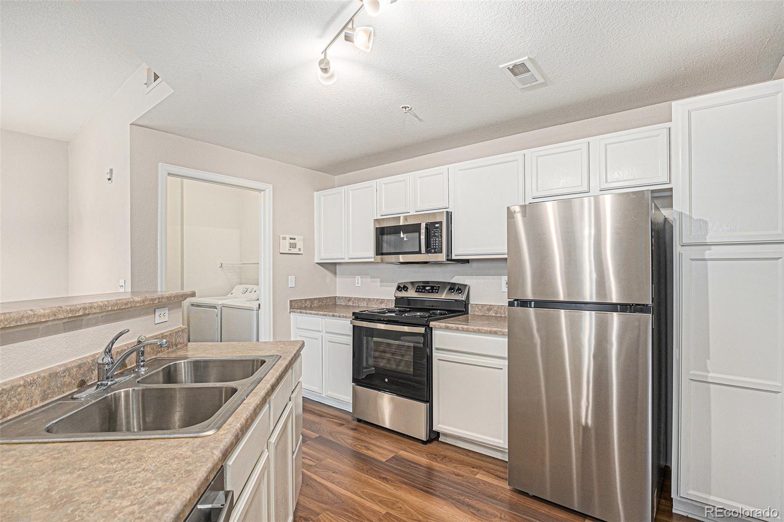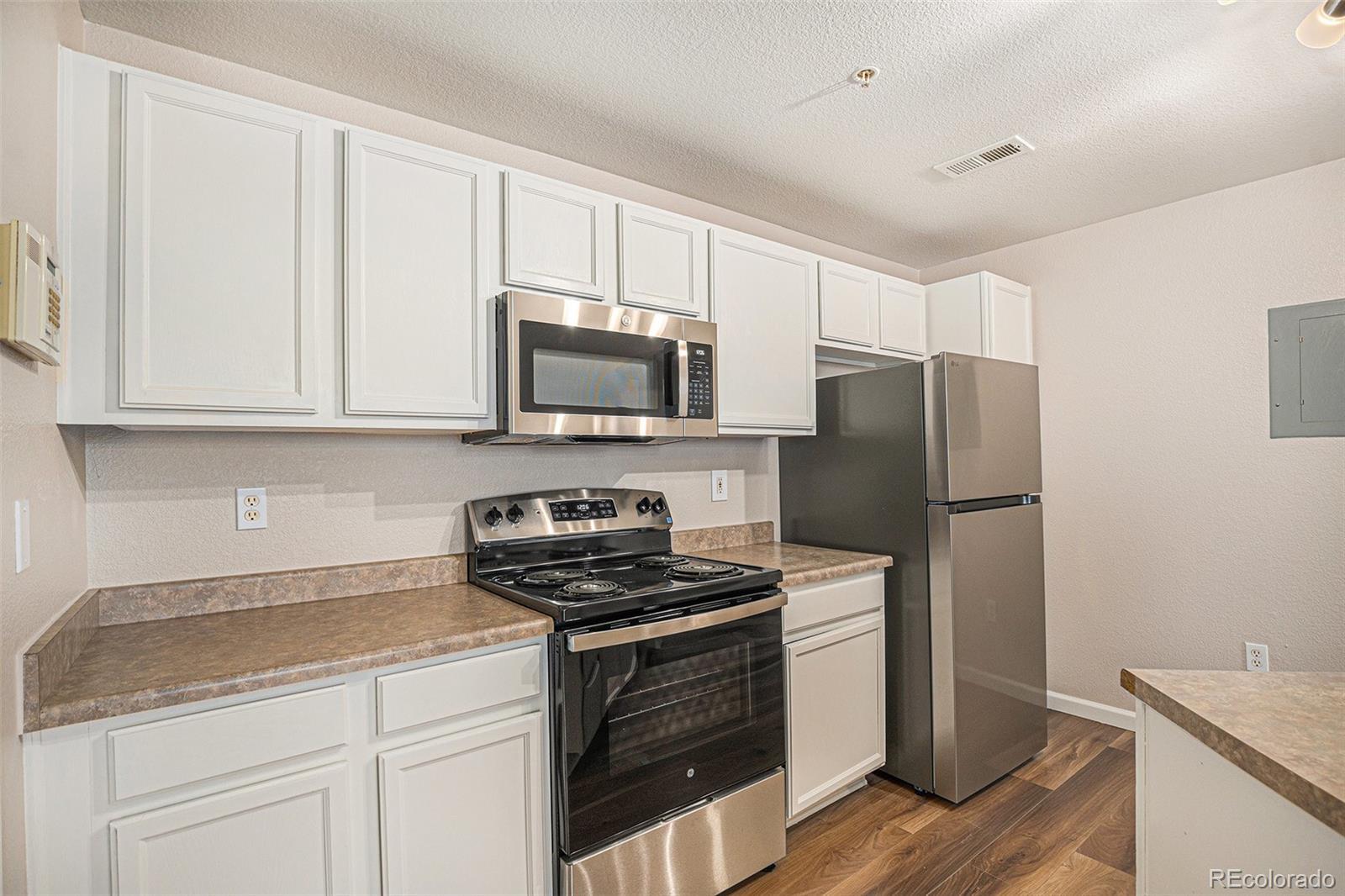 Inviting and Move-In Ready! Welcome home to this charming 2-bedroom, 2-bath condo in a secure, gated community offering comfort, convenience, and peace of mind. Enjoy worry-free living with brand-new kitchen appliances (2025), included washer and dryer, and fresh professional paint throughout (2025). The updated bathrooms and new carpet (2024) add a modern, refreshed touch. Relax in the spacious primary suite, complete with private access to your own balcony— featuring stunning mountain views perfect for morning coffee or unwinding at the end of the day. Gather around the cozy living room fireplace on chilly evenings, or enjoy the community’s resort-style amenities: a sparkling pool for hot summer days, a soothing hot tub for cool nights, a fully equipped fitness center, and a clubhouse ideal for hosting celebrations or casual get-togethers. Conveniently located with easy access to I-70, Peña Blvd, E-470/C-470, and I-25, this condo blends comfort, style, and accessibility — ready for you to call home! **** Orchard Mortgage, LLC, is offering a 2-1 buydown and subsequent no fee refinances to Buyers of this property who are approved by and use Orchard Mortgage for financing. Some restrictions will apply ****