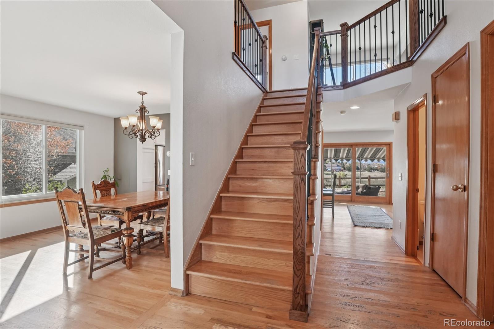 Welcome to Westridge in Highlands Ranch! This beautiful home offers a perfect blend of comfort, function, and breathtaking views. Backing to open space and the scenic Marcy Gulch Trail, you’ll love the peaceful privacy and stunning mountain views from your back patio — the ideal spot to unwind at the end of the day. Inside, you’ll find a convenient and functional floor plan featuring hardwood floors throughout the main level, a main floor bedroom or office/art room, and a bright, open kitchen with abundant cabinets and storage. The 3-car garage and new water softener system add both practicality and peace of mind. Upstairs features three spacious bedrooms plus a loft, perfect for a playroom, home office, or reading nook. The large primary suite includes a walk-in closet and a private vanity area, offering plenty of space to get ready in the morning. The full unfinished basement provides endless possibilities—finish it your way for additional living space, a gym, or hobby area. Located less than a mile from schools, grocery stores, churches, parks, and more, this home combines serenity with convenience in one of Highlands Ranch’s most desirable communities. Don’t miss your chance to live in this incredible home with unbeatable views and location!