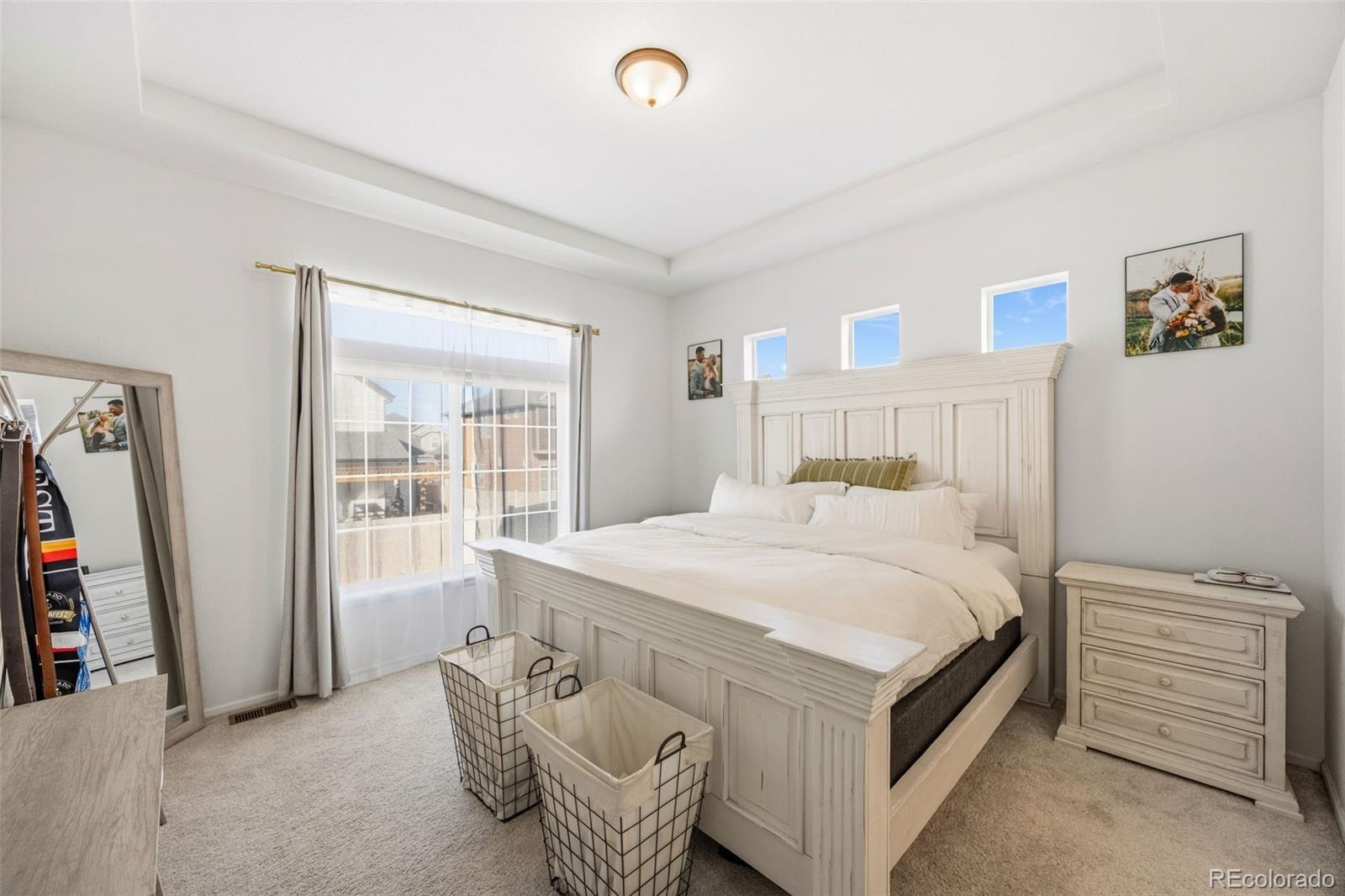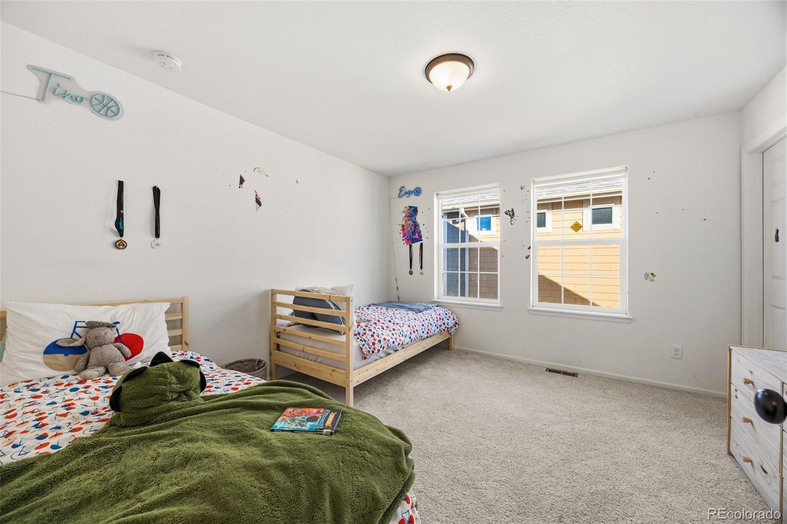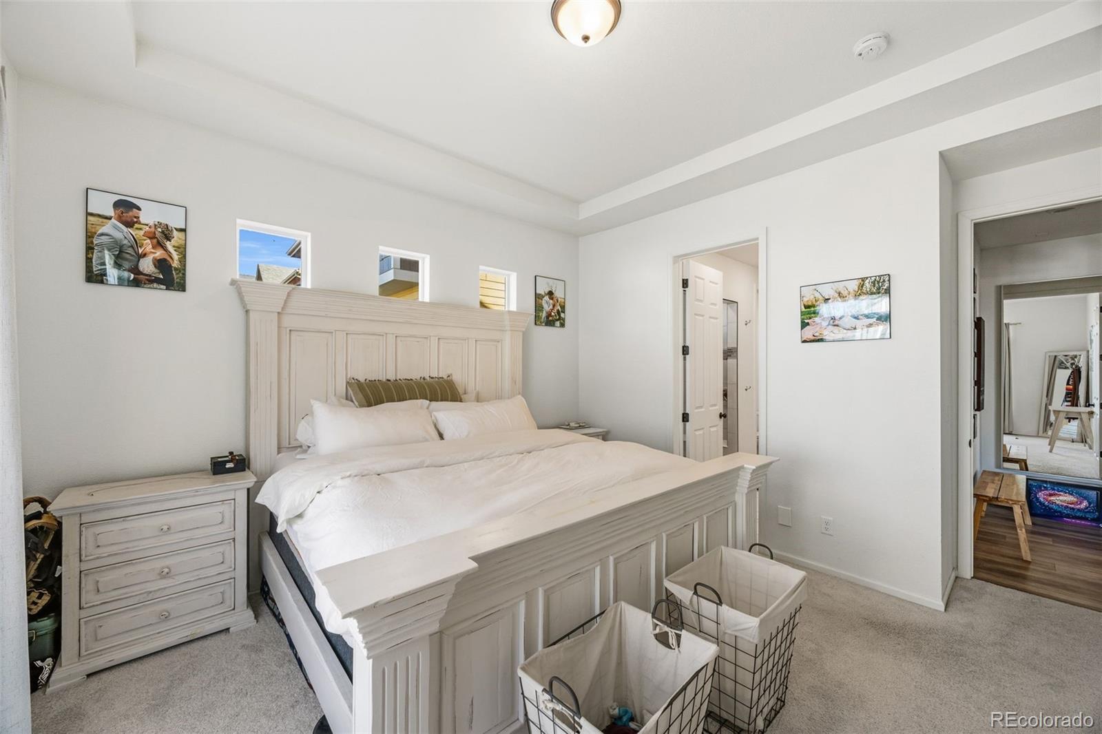 SOUTH FACING* MAIN FLOOR MASTER* FINISHED BASEMENT* OVERSIZED GARAGE* UNIQUE LAYOUT* TURF!* Welcome to this stunning home in the highly desired Erie Highlands neighborhood of Erie, Colorado. Located at 1077 Magnolia Street, this property offers a RARE and highly sought-after layout with a MAIN FLOOR MASTER SUITE featuring a walk-in closet, tall ceilings, and an eat-in kitchen filled with natural light that’s perfect for entertaining or everyday living. A main floor guest bedroom with a full bathroom adds flexibility for visitors or multigenerational living. Upstairs, you’ll find a private bedroom, full bath, and loft—an ideal setup for teens, guests, or a home office. The finished basement includes another bedroom and full bathroom, a spacious recreation area, and an unfinished storage space that could easily become a fifth bedroom in the future. Step outside to enjoy a newly landscaped backyard with LOW MAINTENANCE TURF, perfect for pets, play, and outdoor relaxation. Recent upgrades include a newer roof (2023) and new gutters (2023). The OVERSIZED EXTENDED GARAGE provides ample parking and storage, while the built-in in-house vacuum system and Vivint security system add convenience and peace of mind. This home is within walking distance of the nearest elementary school (about a FIVE MINUTE WALK) and only minutes from Erie High School. Residents love the small-town charm, scenic trails, and proximity to shopping, dining, and recreation. With easy access to both Denver and Boulder, Erie delivers the perfect blend of suburban comfort and city convenience. Located in one of Colorado’s most respected school districts, this Erie Highlands home combines thoughtful design, updates, and an unbeatable location. Schedule your showing today to see why this layout and neighborhood are so highly sought after!