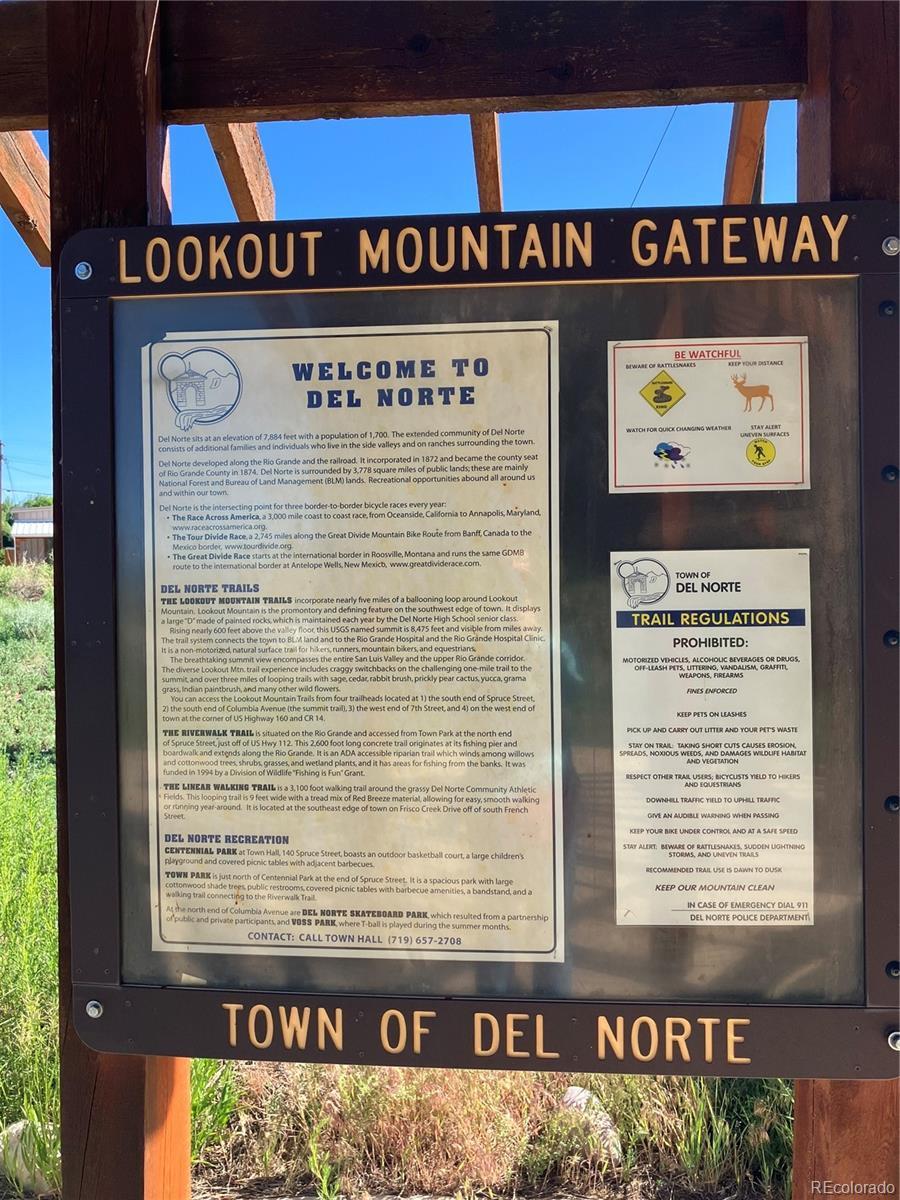 Park your RV and live in it 180 days out of the year. Electricity and high speed fiber optic internet nearby. Septic and water can be installed per county regulations-or annex into the city/town of Del Norte. NO HOA/no restrictions. Buy now and build later. Short term rentals are currently allowed, Rio Grande County allows RV living/camping in an RV or tent for up to 180 days–all with county permit. This is a mid range option to build a long term RV pad. Zoned for RVs, zoned for RV parking, long term RV pad with utilities. Only once in a lifetime does 8.86 full acres bordering the City of Del Norte come available. The same families have owned this gorgeous acreage for decades, and are finally ready to let it be acquired by a visionary who can make it into something new. Adjacent to the Lookout Mountain Trailhead and open space park, which is 200 acres of open space for hiking and biking, this gently rolling and mostly flat lot will captivate you with spectacular views. At the very southern end of Spruce Street, just at the trailhead, and backing the famous Del Norte Lookout Mountain, the property lines are almost the same as the hiking and biking trails. Build your dream luxury home, surrounded by nature, ensuring privacy and exclusivity. Imagine a LEED certified home such as rammed earth walls with a trombe wall, and curved walls of windows to take in the breathtaking views. With plenty of local materials and green architects, this stunning location provides so much potential to build a home that will last for decades. Almost 9 acres means the possibility of a private horse property and any other livestock for a hobby farm or animal rescue. You could also be a part of the solution, and try your hand at a much-needed local housing project. You must be an experienced builder, or have a great project manager to begin dreaming about building. Build your dream off-grid home, capturing the ample year-round sunlight for solar power.