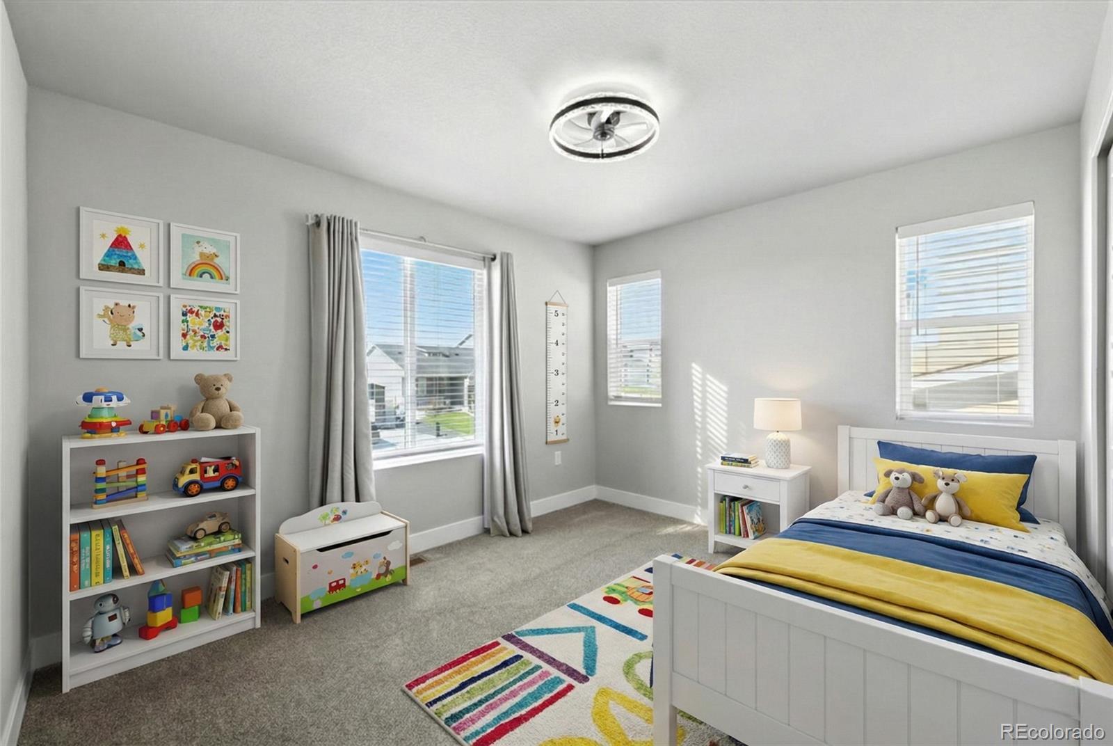 Welcome to a beautifully crafted two-story home nestled in the sought-after Stonebridge at Meridian Ranch community. Built in 2022, this 5-bedroom, 3-bath residence offers nearly 2,300 square feet of thoughtfully designed living space. Step inside to find an inviting open-concept layout filled with natural light, where the modern kitchen—complete with stainless steel appliances and ample counter space—flows seamlessly into the spacious living and dining areas. Upstairs, the private primary suite provides a serene retreat, complemented by generously sized secondary bedrooms for family, guests, or a home office. Outside, the extended patio and fenced backyard create the perfect setting for entertaining or relaxing under Colorado’s wide-open skies. Beyond your doorstep, enjoy access to Stonebridge Lodge and the Meridian Ranch Recreation Center, featuring indoor and outdoor pools, a lazy river, fitness facilities, sports courts, and more. Blending comfort, style, and community amenities, this move-in ready home offers the ideal balance of everyday convenience and resort-style living.