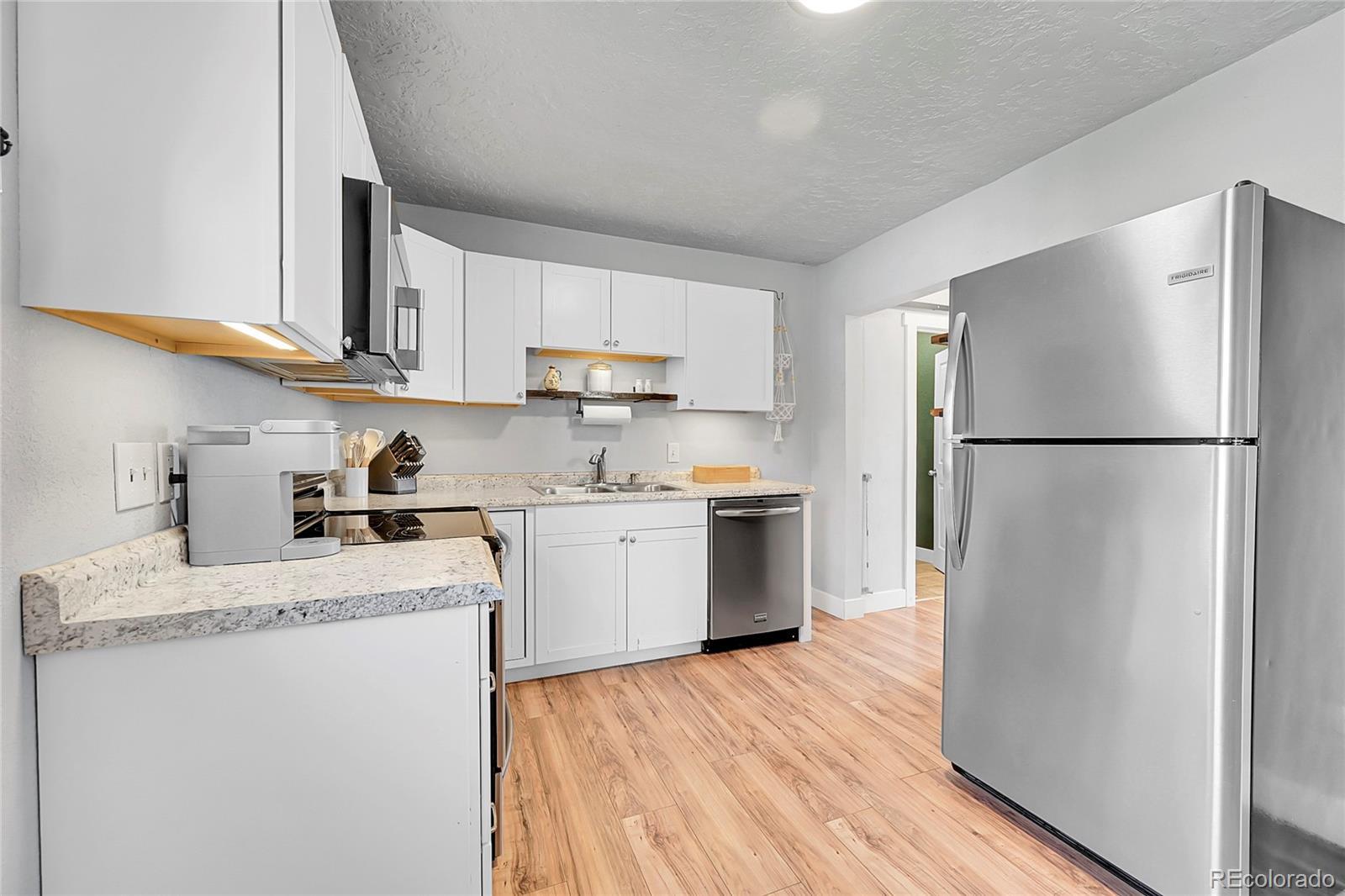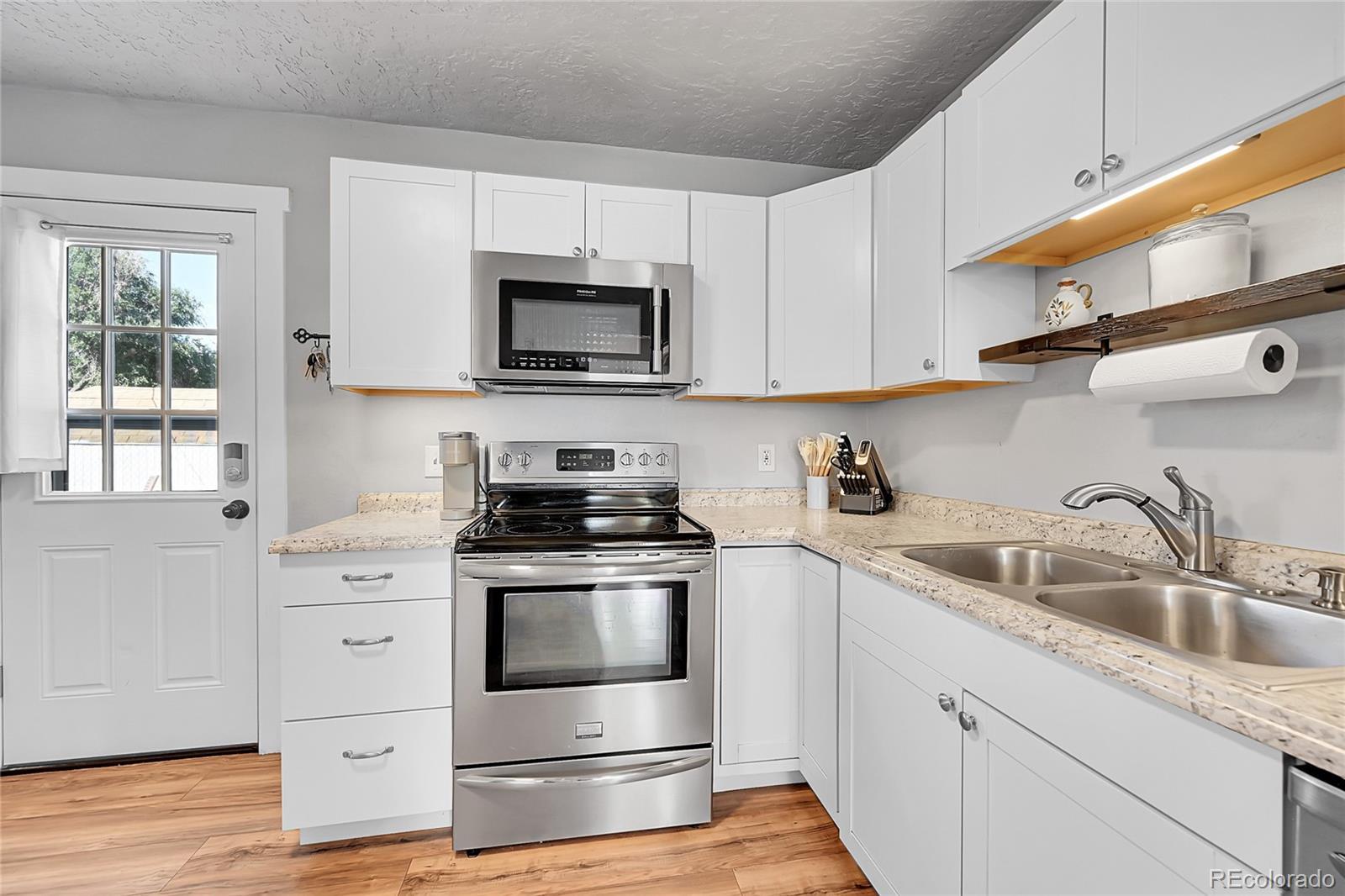Charming Greeley Bungalow Near UNC! Welcome home to this beautifully updated bungalow on a spacious corner lot — with no HOA and a fantastic location just minutes from the University of Northern Colorado and downtown Greeley’s shopping, restaurants, and coffee shops. Whether you’re a first-time buyer, investor, or looking to downsize, this move-in-ready gem checks all the boxes! Step inside to a warm and inviting living room that flows seamlessly into the kitchen, where you’ll find stylish stainless steel appliances, shaker cabinets, and plenty of space for cooking and entertaining. Enjoy fresh interior and exterior paint, luxury vinyl flooring throughout most of the home, and the comfort of air conditioning units that stay with the property. Outside, the fully fenced yard with year-round grass is ideal for pets, play, or relaxing outdoors. The home also features a new front walkway, a one-car garage with an adjoining laundry room, and a large free-standing garden shed for extra storage. With its unbeatable location and thoughtful updates, this home truly has it all. Don’t miss your chance — schedule your showing today before it’s gone!