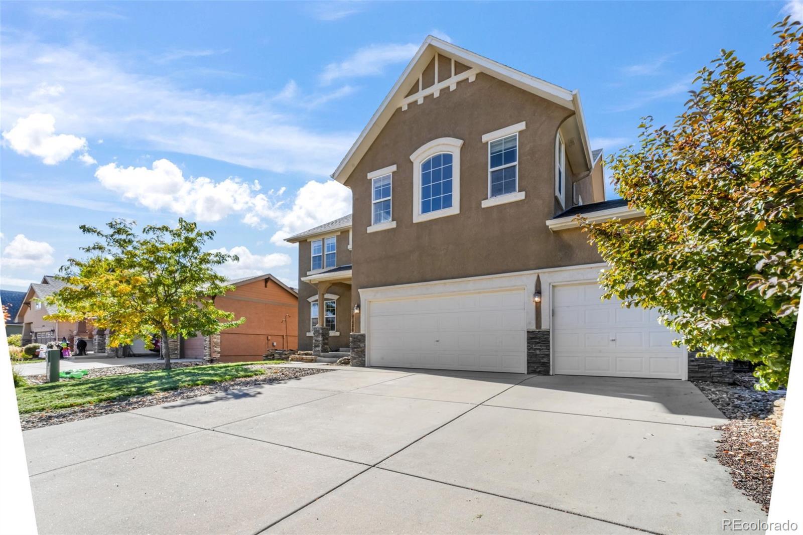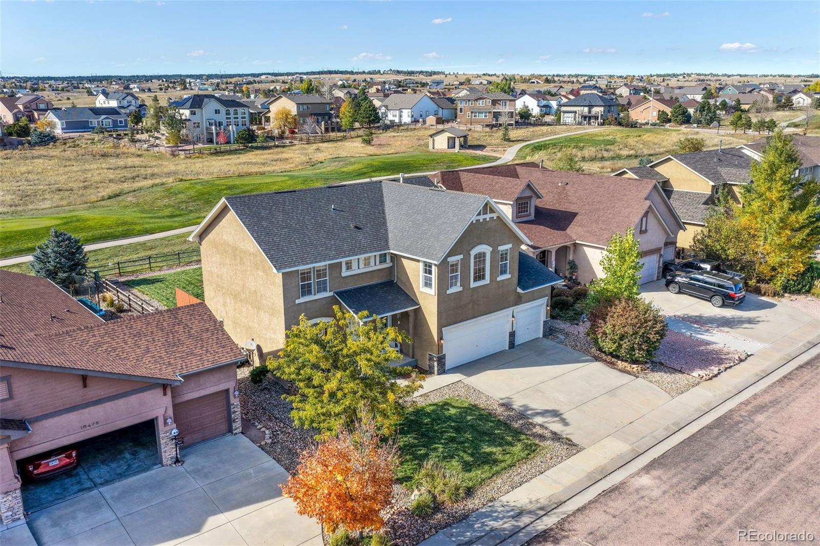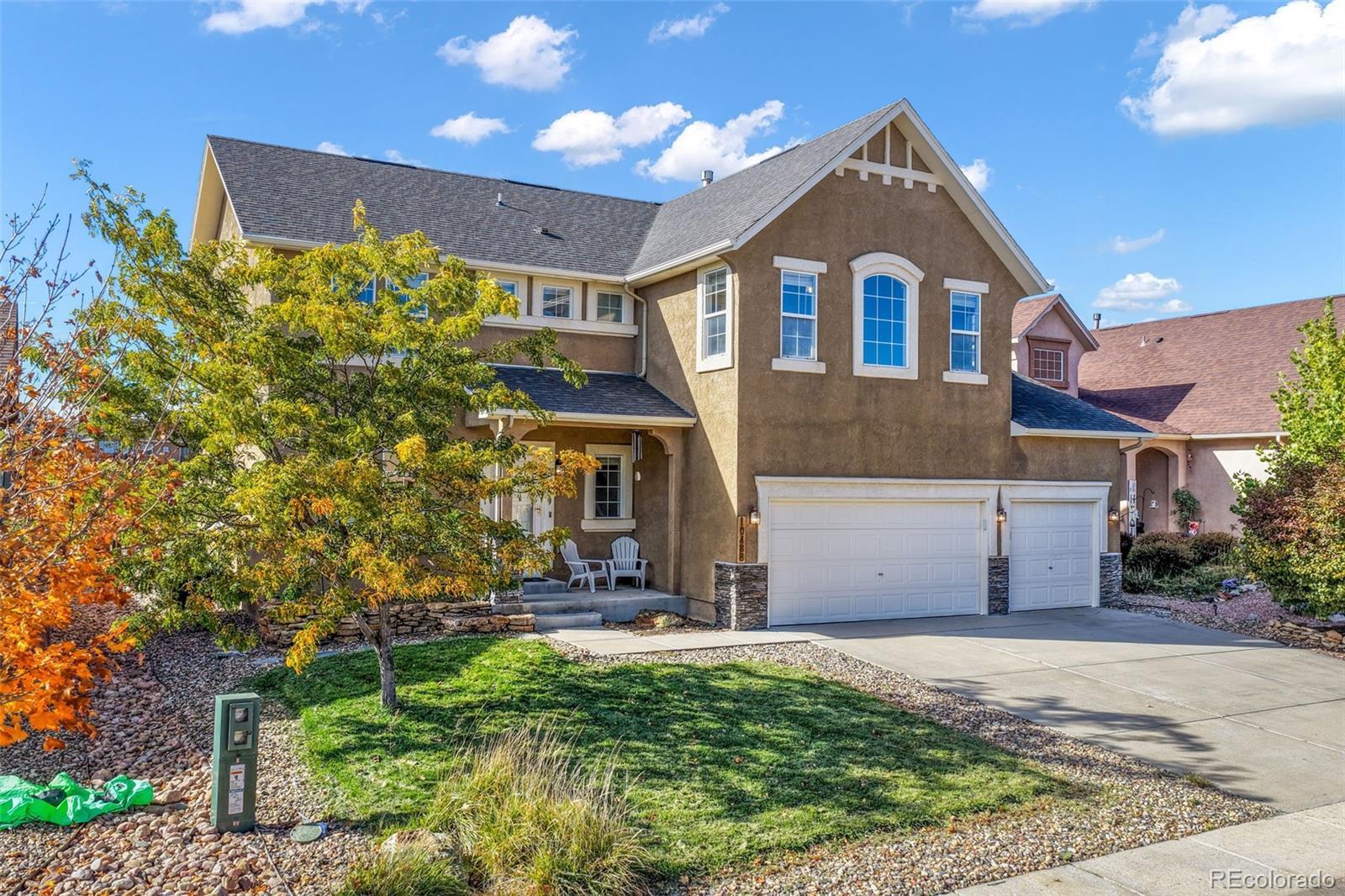 Yes yes yes! This home is directly on the Golf Course with Pikes Peak Views! 5 bedrooms, 4 bathrooms, 3 car garage, 3600+ square feet, open and bright layout with a large finished basement! This Meridian Ranch home has an amazing layout with an open and airy main floor, tall ceilings, 4 bedrooms upstairs and the 5th bedroom in the finished basement. The master suite is stately with vaulted ceilings, his and her closets, an ensuite 5 piece bath and sitting area with fireplace. The finished basement gives so much extra space and adds an entire entertainment area with projector, screen full bathroom and bedroom. The backyard is sure to be a favorite hangout, walk right onto Antlers Creek Golf course and enjoy sweeping views of Pikes Peak with thoughtful landscaping, a large patio and unlimited possibilities. This is such an amazing opportunity to get the golf course and views in Meridian Ranch, come see it today!