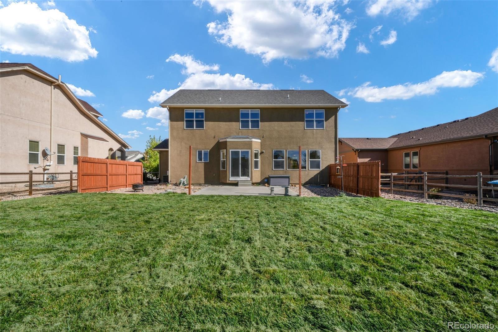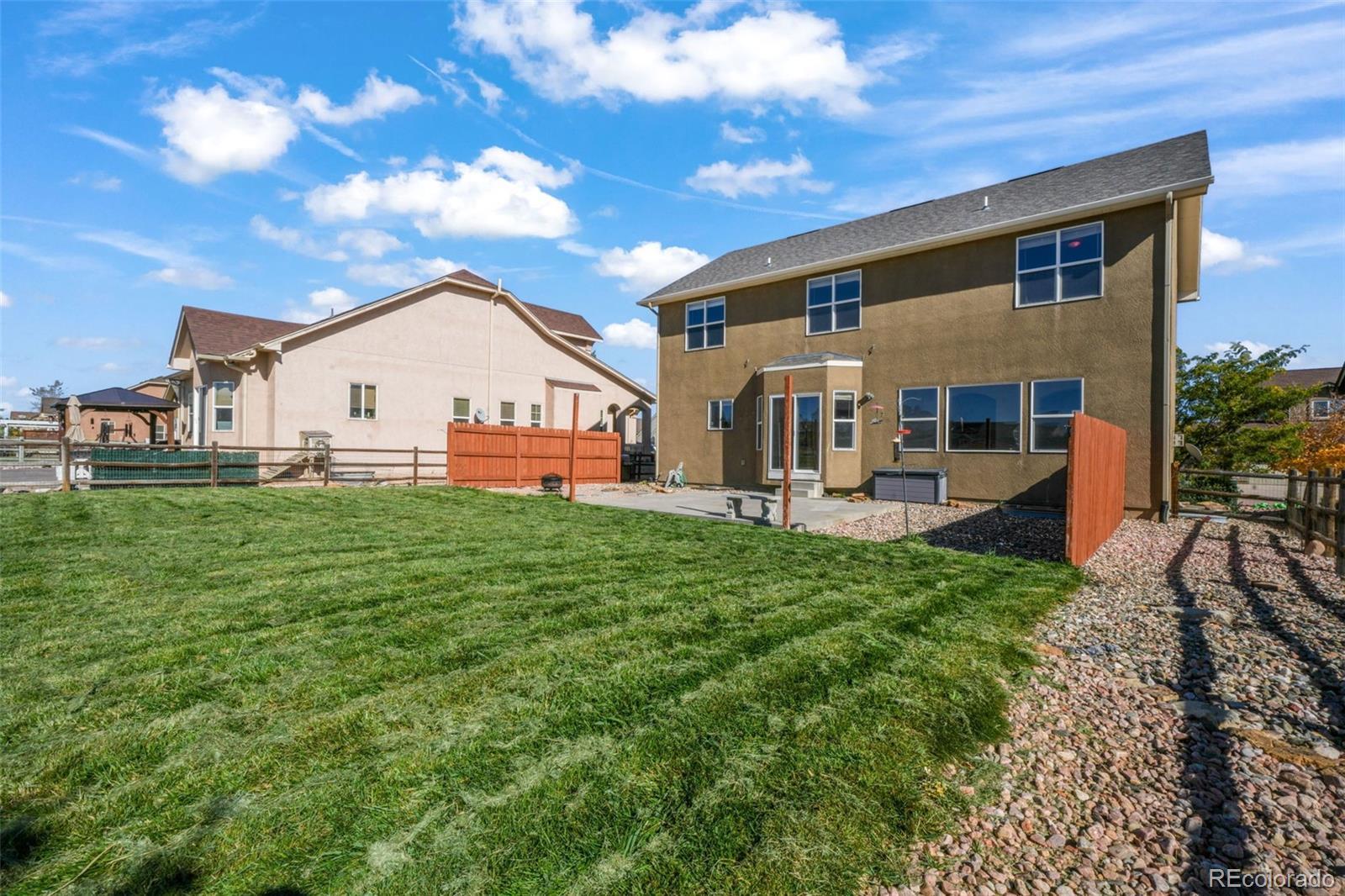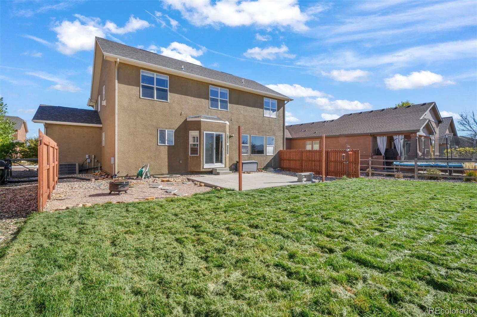 Yes yes yes! This home is directly on the Golf Course with Pikes Peak Views! 5 bedrooms, 4 bathrooms, 3 car garage, 3600+ square feet, open and bright layout with a large finished basement! This Meridian Ranch home has an amazing layout with an open and airy main floor, tall ceilings, 4 bedrooms upstairs and the 5th bedroom in the finished basement. The master suite is stately with vaulted ceilings, his and her closets, an ensuite 5 piece bath and sitting area with fireplace. The finished basement gives so much extra space and adds an entire entertainment area with projector, screen full bathroom and bedroom. The backyard is sure to be a favorite hangout, walk right onto Antlers Creek Golf course and enjoy sweeping views of Pikes Peak with thoughtful landscaping, a large patio and unlimited possibilities. This is such an amazing opportunity to get the golf course and views in Meridian Ranch, come see it today!