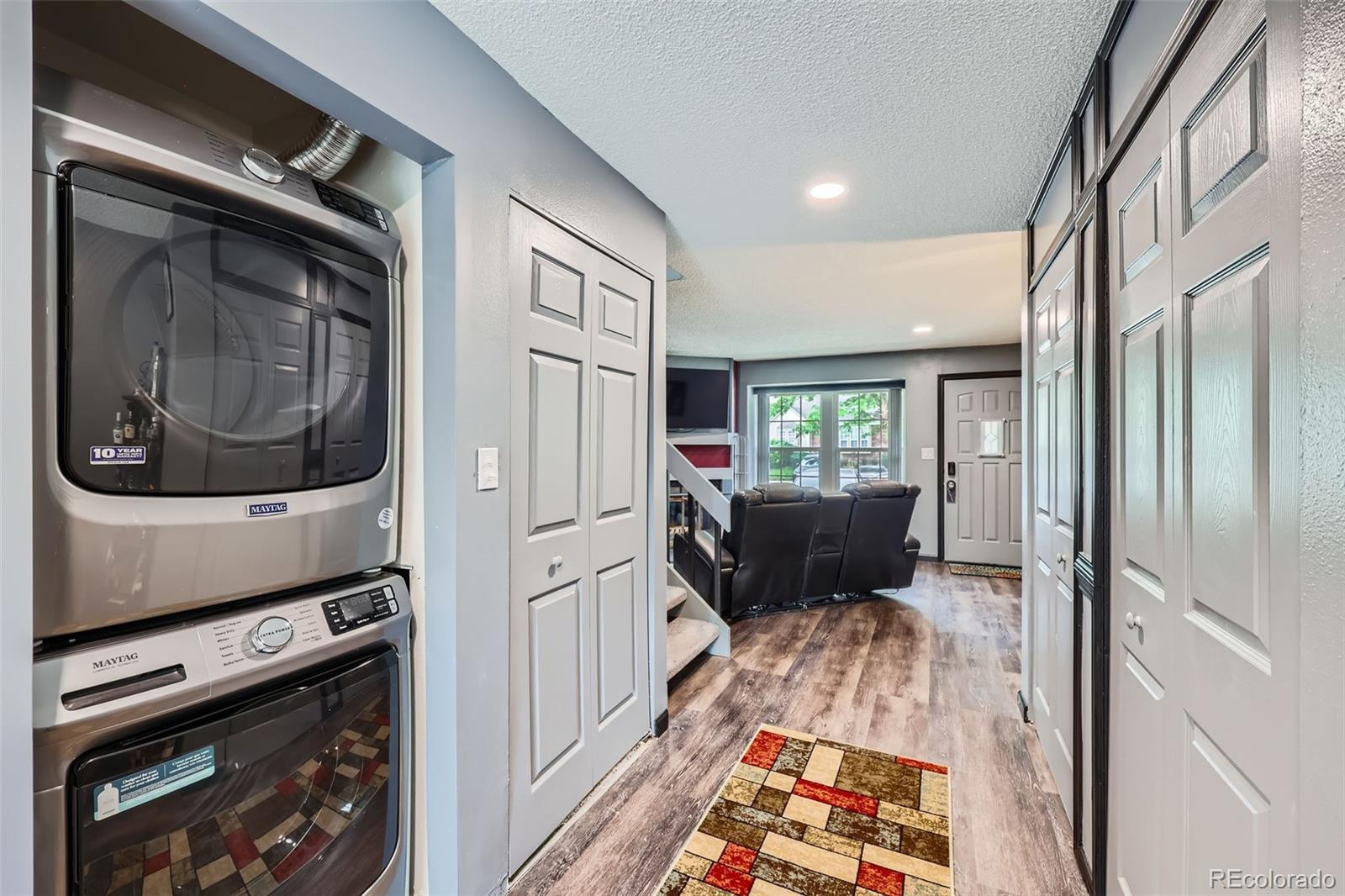 Welcome to this spacious 2 story townhome-style condo in Dakota Station! The living room features a wood fireplace and large window. The Kitchen features a pantry, newer stainless steel refrigerator, bar seating and bay window overlooking back patio. Dining area has a sliding door leading out to private large patio, perfect for entertaining and relaxing. Don't miss the oversized coat closet with access to the large crawl space. The living room flows seamlessly into a dining area, creating an inviting atmosphere for entertaining or relaxation with new vinyl flooring throughout the main level. Upstairs features two bedrooms with vaulted ceilings and new carpet. The primary bedroom has can lights in the ceiling and has a private bathroom with a tub. The second upstairs bedroom has vaulted ceiling and large windows and is just a step away to the second upstairs bathroom which features a shower. Main level laundry space, washer and dryer are included. Community amenities include access to a refreshing pool, trash service provided, water and snow removal are included. Reserved parking space right outside the front door! Low-maintenance living in a quiet, well kept community conveniently located close to parks, excellent Jeffco schools, trail systems, restaurants and shopping. Quick access to C-470 for a short commute to the foothills and mountains. Don't miss this great opportunity and set up your appointment today. Welcome home! Up to $7,000 grant for qualified buyers.