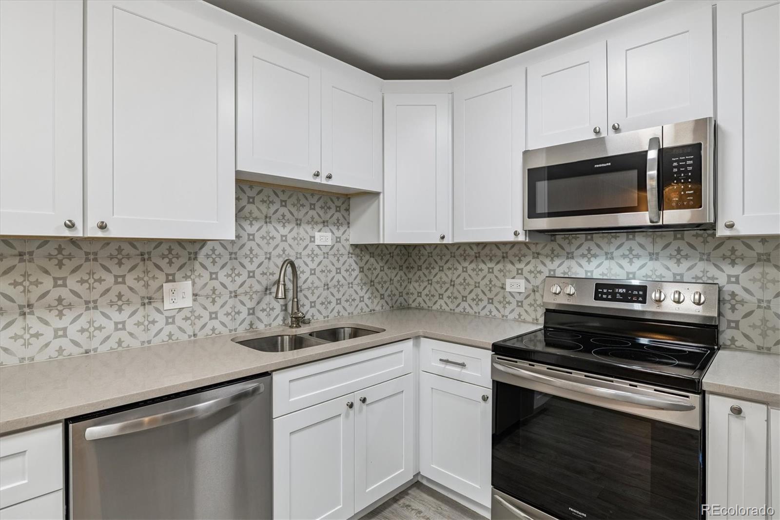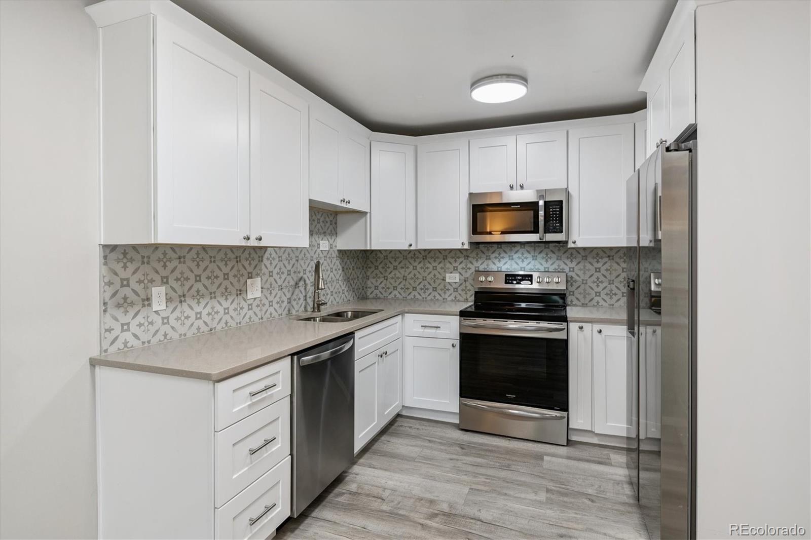 Experience the best of 55+ living in Denver’s premier active adult community—Windsor Gardens! This beautifully renovated 2-bedroom, 1-bath condo offers 945 sq. ft. of modern comfort, stylish finishes, and incredible convenience, making it truly move-in ready. Step inside to discover a fully transformed interior featuring all-new white shaker cabinets, a designer subway-tile backsplash, and brand-new stainless steel appliances that elevate the kitchen into a fresh, inviting space. The open living and dining area shines with new luxury vinyl tile flooring, while both bedrooms offer warmth and comfort with new plush beige carpeting. Every detail has been thoughtfully updated—new 2-panel doors, new interior paint throughout, and new contemporary ceiling fans add a clean, modern feel. Relax year-round in your enclosed, tiled lanai, the perfect spot to enjoy morning coffee or Colorado’s beautiful sunsets. Parking is a breeze with your garage space (#145 in Lot 12) conveniently located just steps from the building entrance. Windsor Gardens delivers an unmatched lifestyle with an impressive list of amenities. The HOA covers your property taxes, plus water, sewer, trash, heat, building insurance, maintenance, capital reserves, and a full calendar of clubs, classes, and community activities—all designed to support a vibrant, low-maintenance way of life. Don’t miss this beautifully updated home in one of Denver’s most desirable 55+ communities—schedule your showing today!
