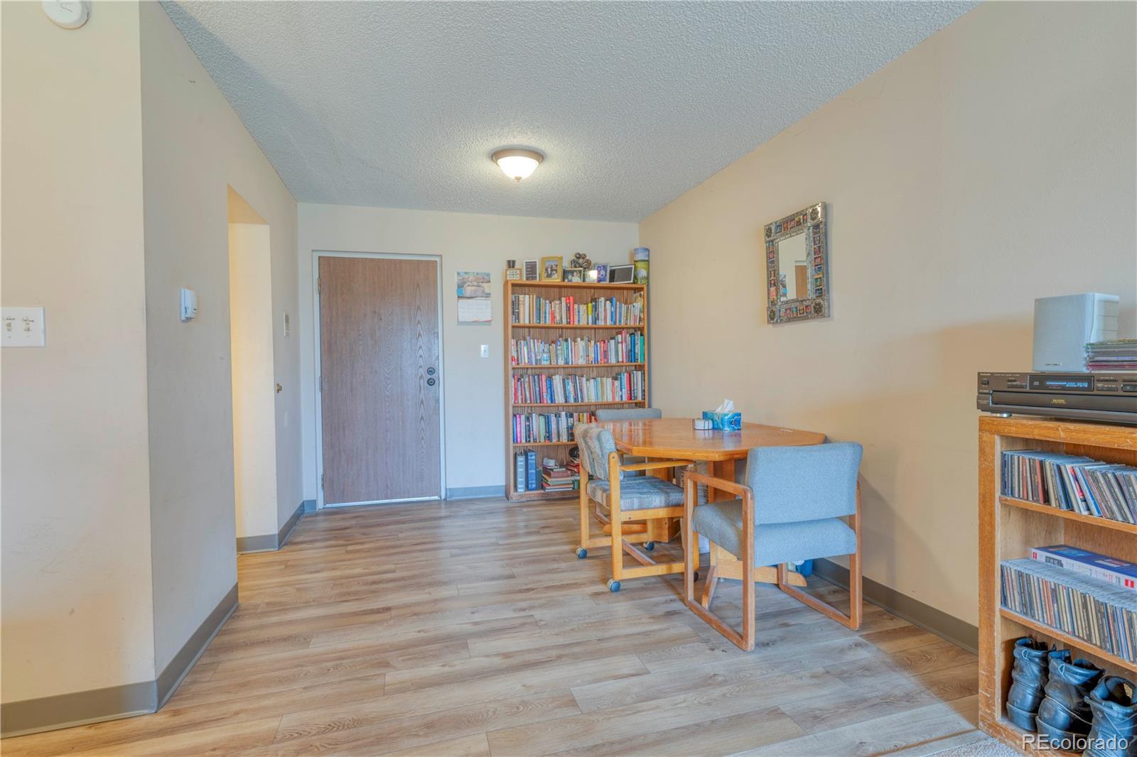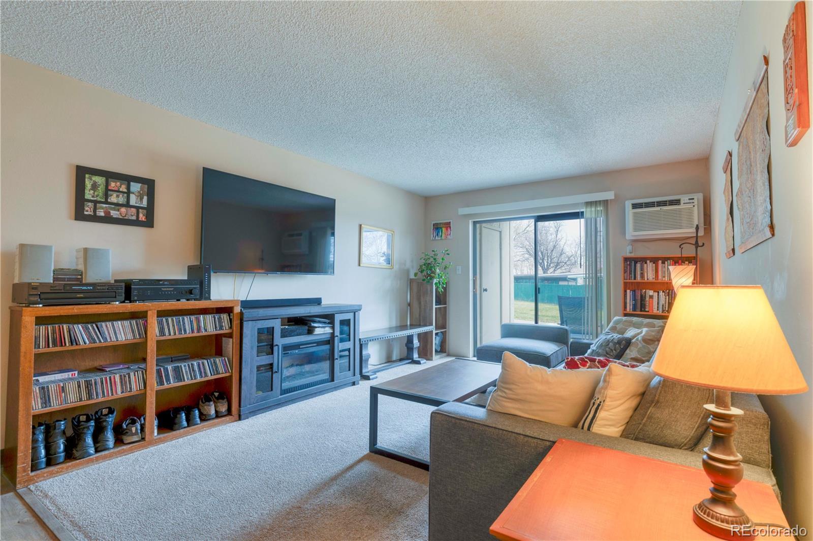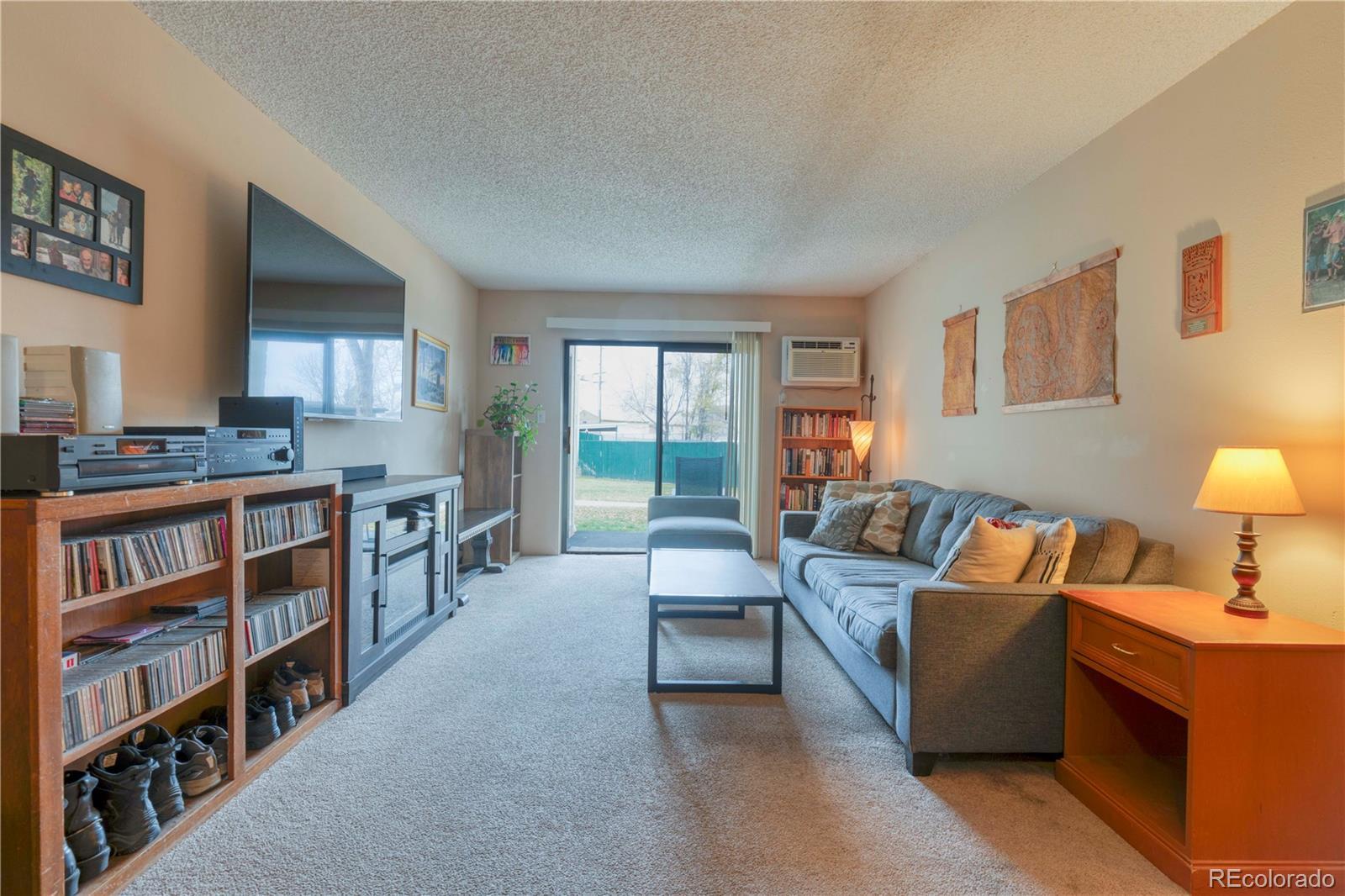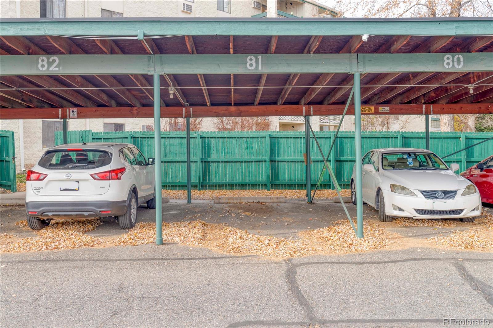 Welcome to this well-kept 1 bedroom 1 bathroom condo on ground floor in a tucked away quiet community and very walkable to the redeveloped 38th Ave corridor and Wadsworth Blvd shops! Enter unit from either the secure building entrance or right off your own patio. A deeded covered parking spot and plenty of additional parking just steps from door. A private storage shed just off the patio keeps items close. A view of the complex's pool from patio makes summer heat fun and is only available to the community. The open dining to living room makes this condo spacious. Each floor has its own laundry facilities and is located only a few steps down the hallway. Prices right and should be seen! Quick possession if available!