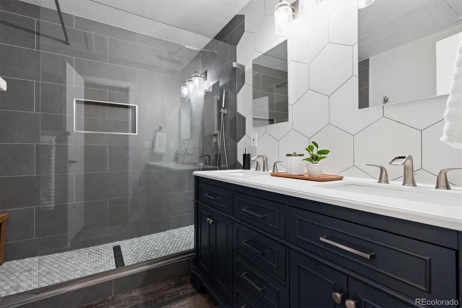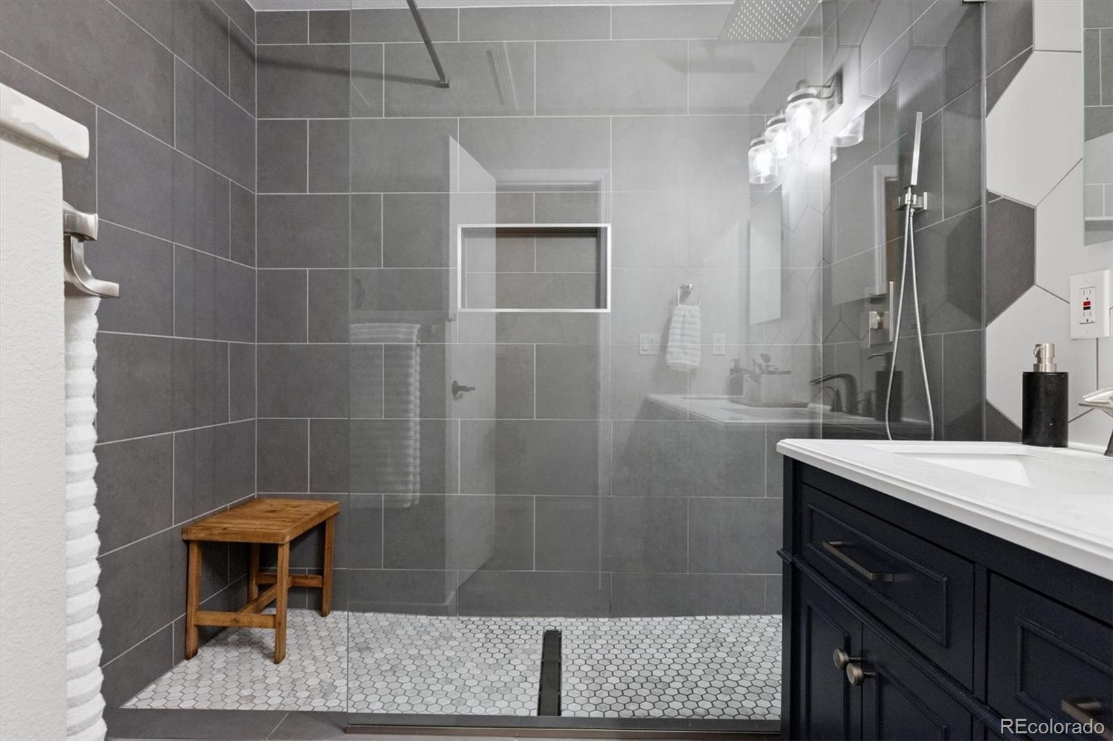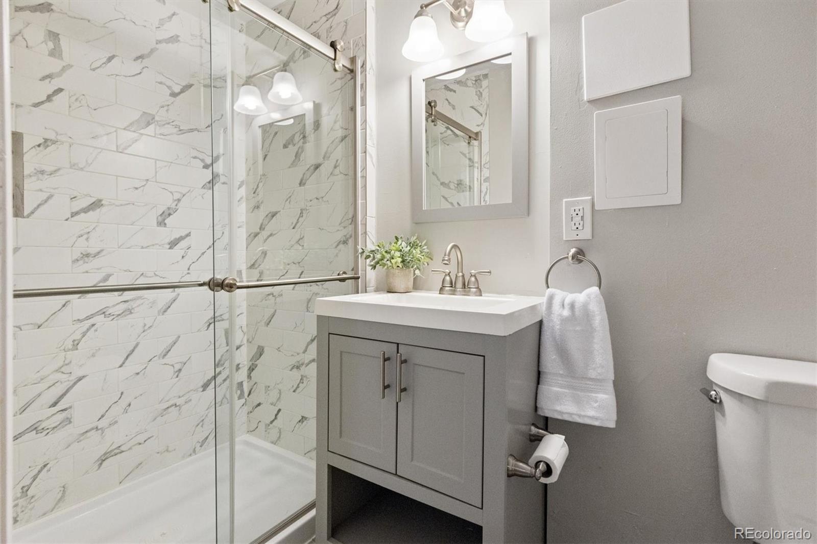 Just Minutes from Olde Town! Welcome to your next adventure in comfort and style - Tucked away on a peaceful cul-de-sac in Arvada, this bright and cheerful home is full of charm, upgrades, and space to spread out. Just 1.5 miles from vibrant Olde Town Arvada and the Light Rail, you can walk or bike to your favorite local spots for wine tasting, boutique shopping, and delicious dining. Step inside to soaring vaulted ceilings and a sun-drenched living room with a large front window that makes everything feel warm and welcoming. The bright eat-in kitchen features plenty of cabinets, sleek stainless steel appliances, and plenty of space for cooking up your favorites. The remodeled main bathroom is a true showstopper—with a luxurious walk-in glass shower, dual vanities, and high-end finishes. Retreat to the spacious primary bedroom that easily fits a king-sized bed, and enjoy the new walk-in closet with a stylish barn door, plus an extra closet for good measure. Two additional upper-level bedrooms are perfect for kids, guests, or a cozy home office. Downstairs, a huge family room with a wood-burning fireplace is ready for movie nights, game days, or just curling up with a book. The finished basement includes a versatile bonus room—ideal for a gym, hobby space, or second living area—plus another updated bathroom with a shower. Enjoy a fully fenced backyard—perfect for pups, gardening, or hosting weekend BBQs on the spacious patio. Major systems and the roof have all been updated within the last 9 years. Come see why this home is a rare gem in one of Arvada’s most beloved neighborhoods!