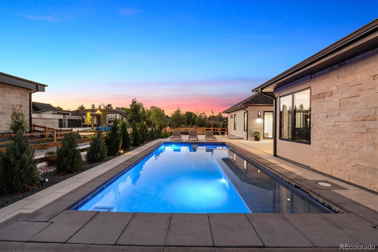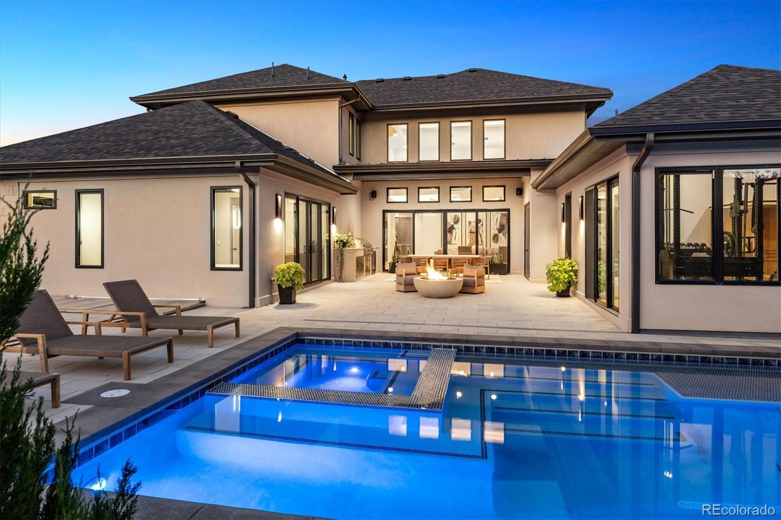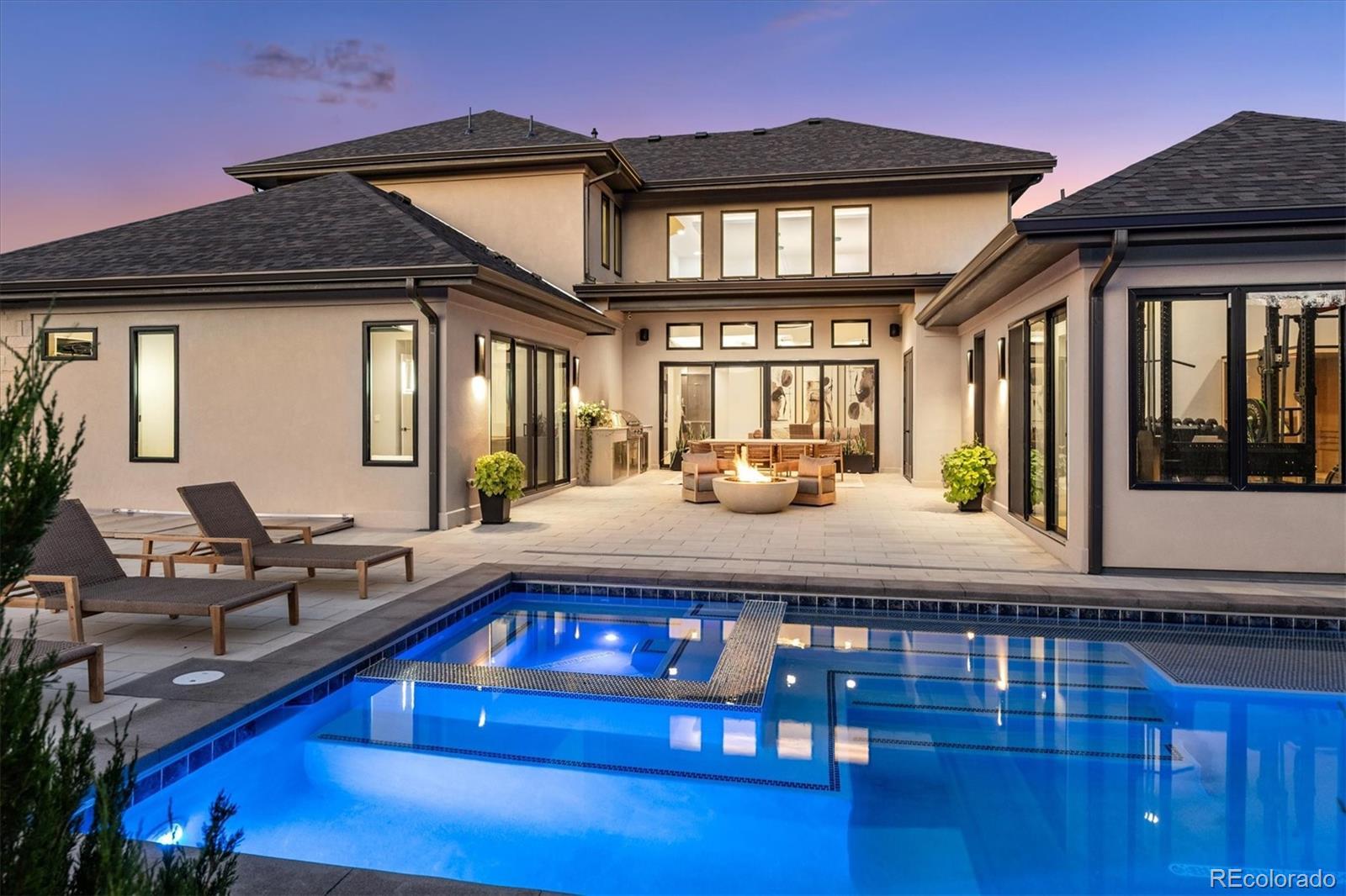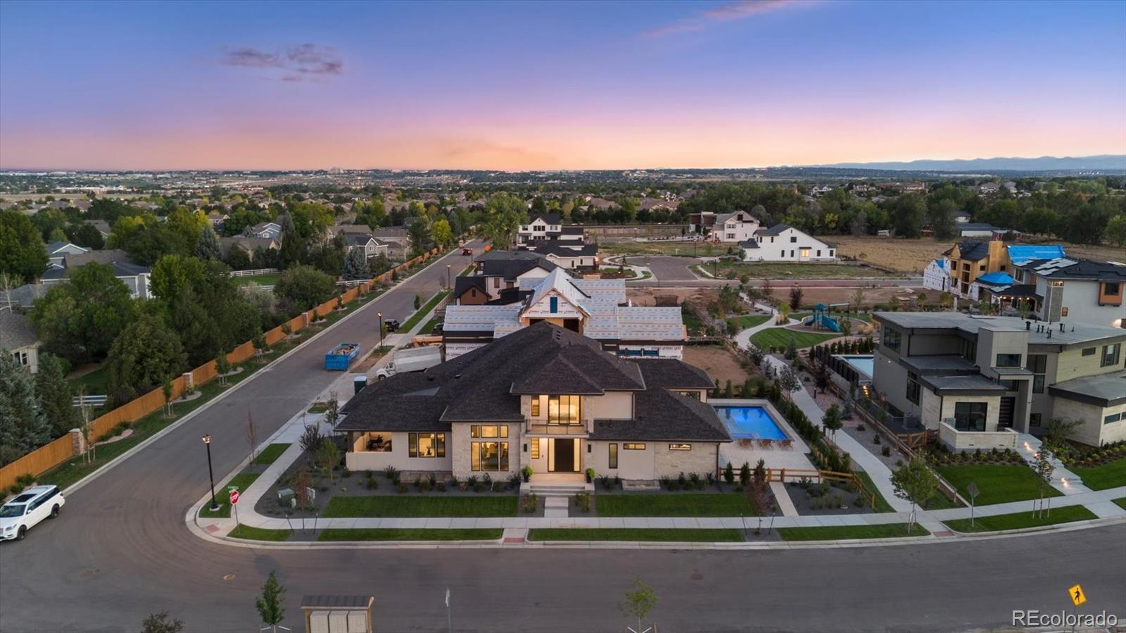 An extraordinary embodiment of sophisticated contemporary living is masterfully presented in this bespoke architectural marvel nestled w/in the prestigious Carr Estates community. The home's striking, clean aesthetic is complemented by meticulously curated finishes, unmatched construction quality, and an unwavering attention to detail. An expansive open floor plan showcases luxurious hand-trowelled walls, elegant white oak European flooring, custom lighting features, and soaring 20-foot ceilings that create a breathtaking ambiance and seamless indoor/outdoor connectivity. Designed for modern elegance, the residence incorporates cutting-edge automation with Lutron solar shades and a state-of-the-art integrated Sonos sound system. The chef's kitchen stands out as a centerpiece of sophistication, refined finishes, high-end built-in appliances, custom cabinetry, and a generously sized kitchen. Outside, the property boasts expansive outdoor living spaces, anchored by a custom outdoor kitchen, a built-in gas firepit, and a luxurious in-ground pool and hot tub. The main-floor primary suite offers a true retreat, featuring a spa-like bath and a custom closet designed by Colorado Space Solutions, providing both luxury and convenience. The residence boasts a fully equipped Rogue Fitness gym and sauna, in addition to two main-floor home offices that cater to work-from-home needs. An upstairs guest suite or private sixth bedroom boasts a wet bar and a covered balcony. The expansive basement serves as an entertainer's dream, featuring a spacious recreation room with a wet bar, as well as ample room for gaming tables and other activities. Completing the lower level are 4 addtl bedrooms, 2 full bathrooms, a second laundry room, and abundant storage space. Situated on a generous corner lot, this remarkable home offers immediate access to local amenities, top-rated schools, and fine dining options, ensuring that residents enjoy an unparalleled lifestyle of luxury and convenience.