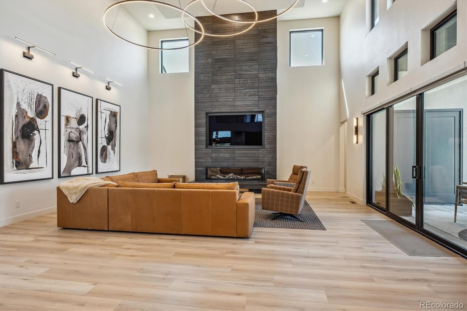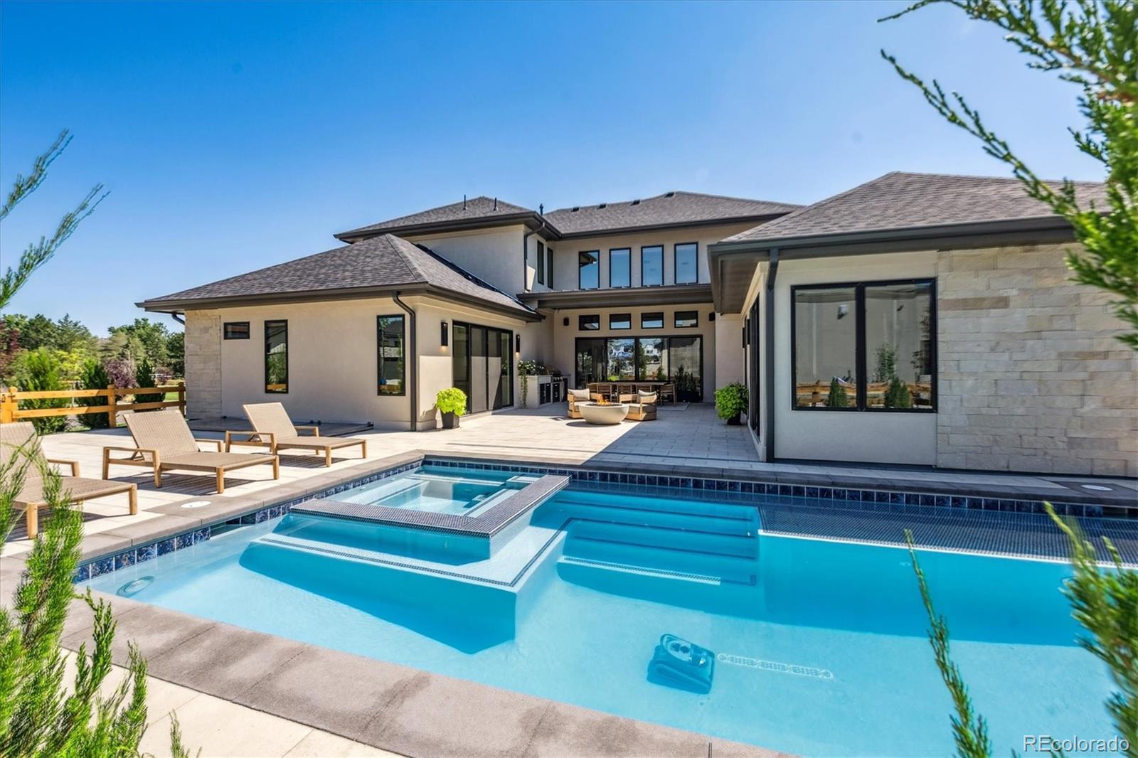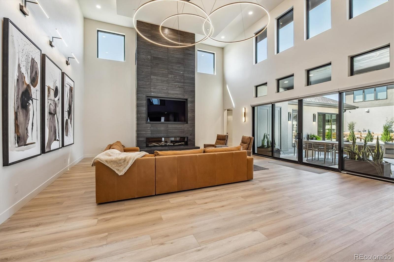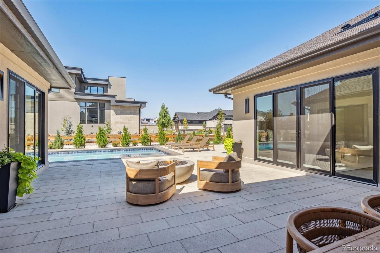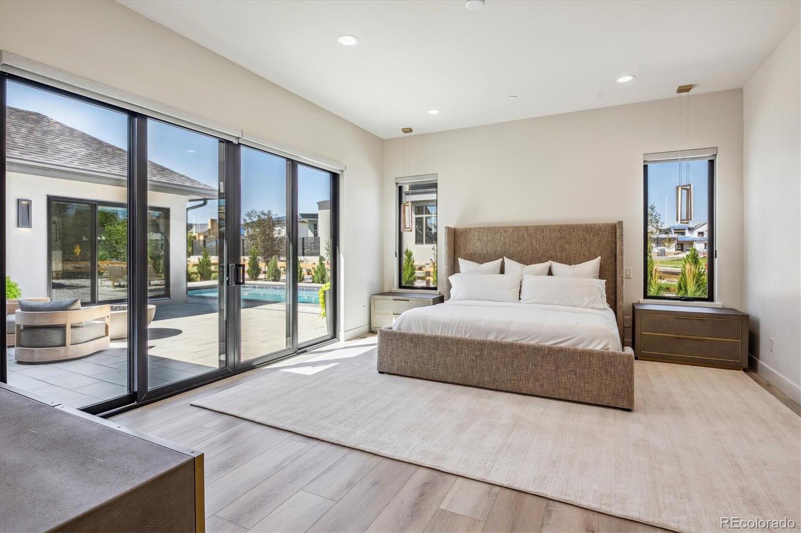 An extraordinary embodiment of sophisticated contemporary living is masterfully presented in this bespoke architectural marvel nestled w/in the prestigious Carr Estates community. The home's striking, clean aesthetic is complemented by meticulously curated finishes, unmatched construction quality, and an unwavering attention to detail. An expansive open floor plan showcases luxurious hand-trowelled walls, elegant white oak European flooring, custom lighting features, and soaring 20-foot ceilings that create a breathtaking ambiance and seamless indoor/outdoor connectivity. Designed for modern elegance, the residence incorporates cutting-edge automation with Lutron solar shades and a state-of-the-art integrated Sonos sound system. The chef's kitchen stands out as a centerpiece of sophistication, refined finishes, high-end built-in appliances, custom cabinetry, and a generously sized kitchen. Outside, the property boasts expansive outdoor living spaces, anchored by a custom outdoor kitchen, a built-in gas firepit, and a luxurious in-ground pool and hot tub. The main-floor primary suite offers a true retreat, featuring a spa-like bath and a custom closet designed by Colorado Space Solutions, providing both luxury and convenience. The residence boasts a fully equipped Rogue Fitness gym and sauna, in addition to two main-floor home offices that cater to work-from-home needs. An upstairs guest suite or private sixth bedroom boasts a wet bar and a covered balcony. The expansive basement serves as an entertainer's dream, featuring a spacious recreation room with a wet bar, as well as ample room for gaming tables and other activities. Completing the lower level are 4 addtl bedrooms, 2 full bathrooms, a second laundry room, and abundant storage space. Situated on a generous corner lot, this remarkable home offers immediate access to local amenities, top-rated schools, and fine dining options, ensuring that residents enjoy an unparalleled lifestyle of luxury and convenience.
