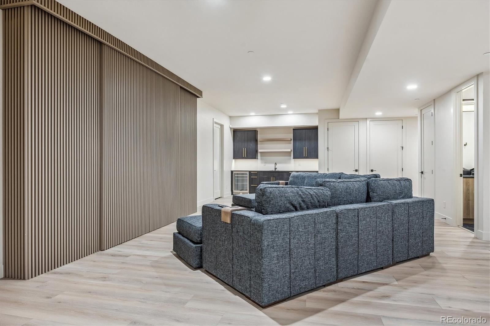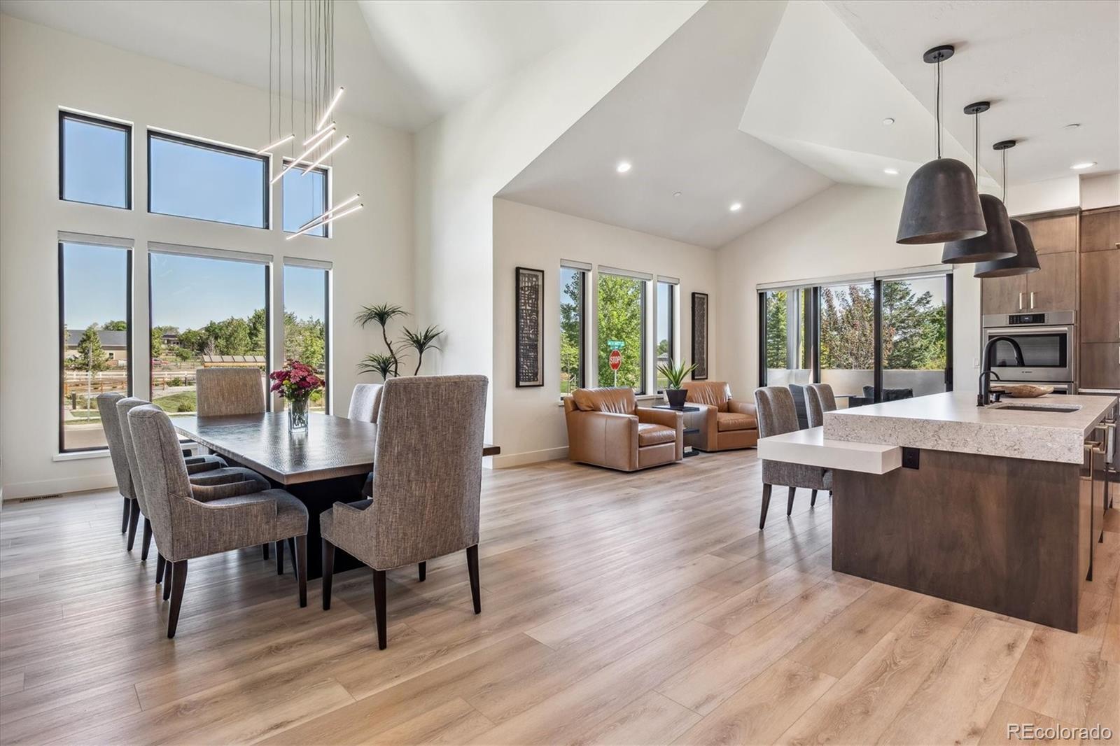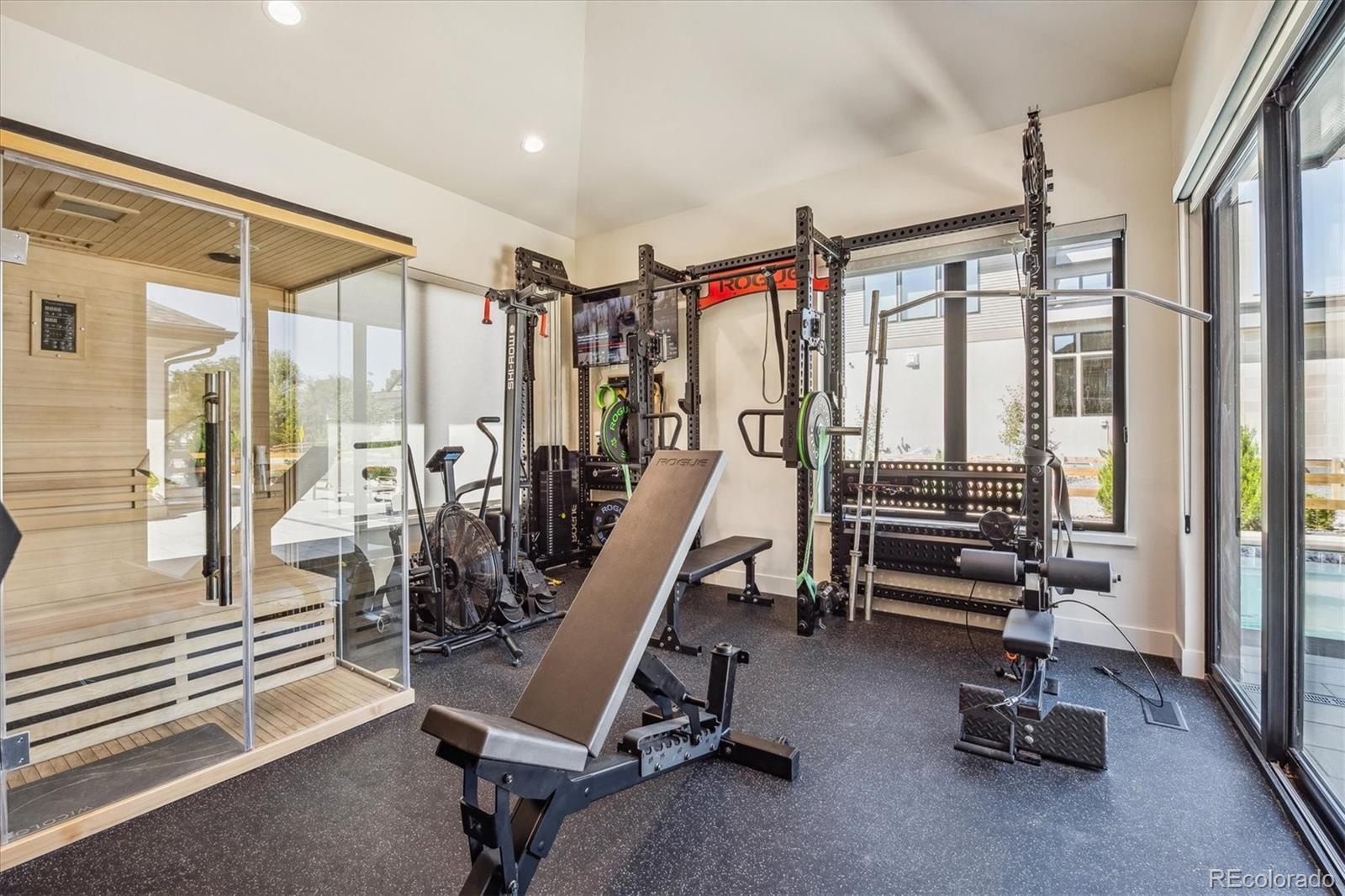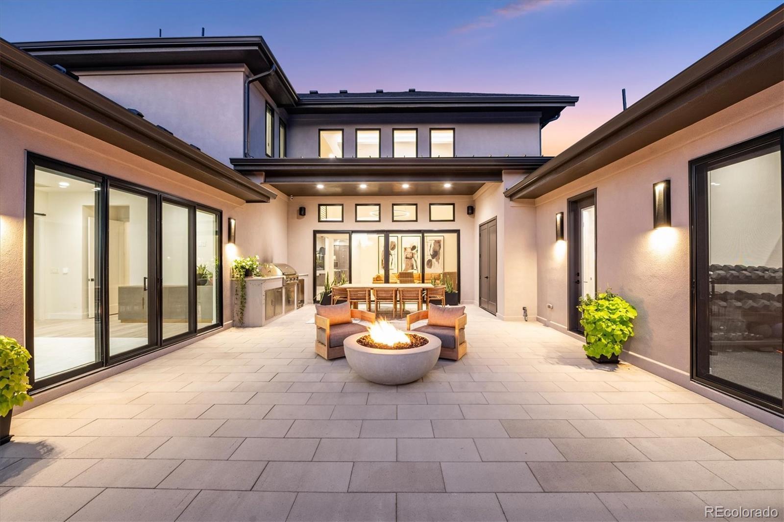 An extraordinary embodiment of sophisticated contemporary living is masterfully presented in this bespoke architectural marvel nestled w/in the prestigious Carr Estates community. The home's striking, clean aesthetic is complemented by meticulously curated finishes, unmatched construction quality, and an unwavering attention to detail. An expansive open floor plan showcases luxurious hand-trowelled walls, elegant white oak European flooring, custom lighting features, and soaring 20-foot ceilings that create a breathtaking ambiance and seamless indoor/outdoor connectivity. Designed for modern elegance, the residence incorporates cutting-edge automation with Lutron solar shades and a state-of-the-art integrated Sonos sound system. The chef's kitchen stands out as a centerpiece of sophistication, refined finishes, high-end built-in appliances, custom cabinetry, and a generously sized kitchen. Outside, the property boasts expansive outdoor living spaces, anchored by a custom outdoor kitchen, a built-in gas firepit, and a luxurious in-ground pool and hot tub. The main-floor primary suite offers a true retreat, featuring a spa-like bath and a custom closet designed by Colorado Space Solutions, providing both luxury and convenience. The residence boasts a fully equipped Rogue Fitness gym and sauna, in addition to two main-floor home offices that cater to work-from-home needs. An upstairs guest suite or private sixth bedroom boasts a wet bar and a covered balcony. The expansive basement serves as an entertainer's dream, featuring a spacious recreation room with a wet bar, as well as ample room for gaming tables and other activities. Completing the lower level are 4 addtl bedrooms, 2 full bathrooms, a second laundry room, and abundant storage space. Situated on a generous corner lot, this remarkable home offers immediate access to local amenities, top-rated schools, and fine dining options, ensuring that residents enjoy an unparalleled lifestyle of luxury and convenience.