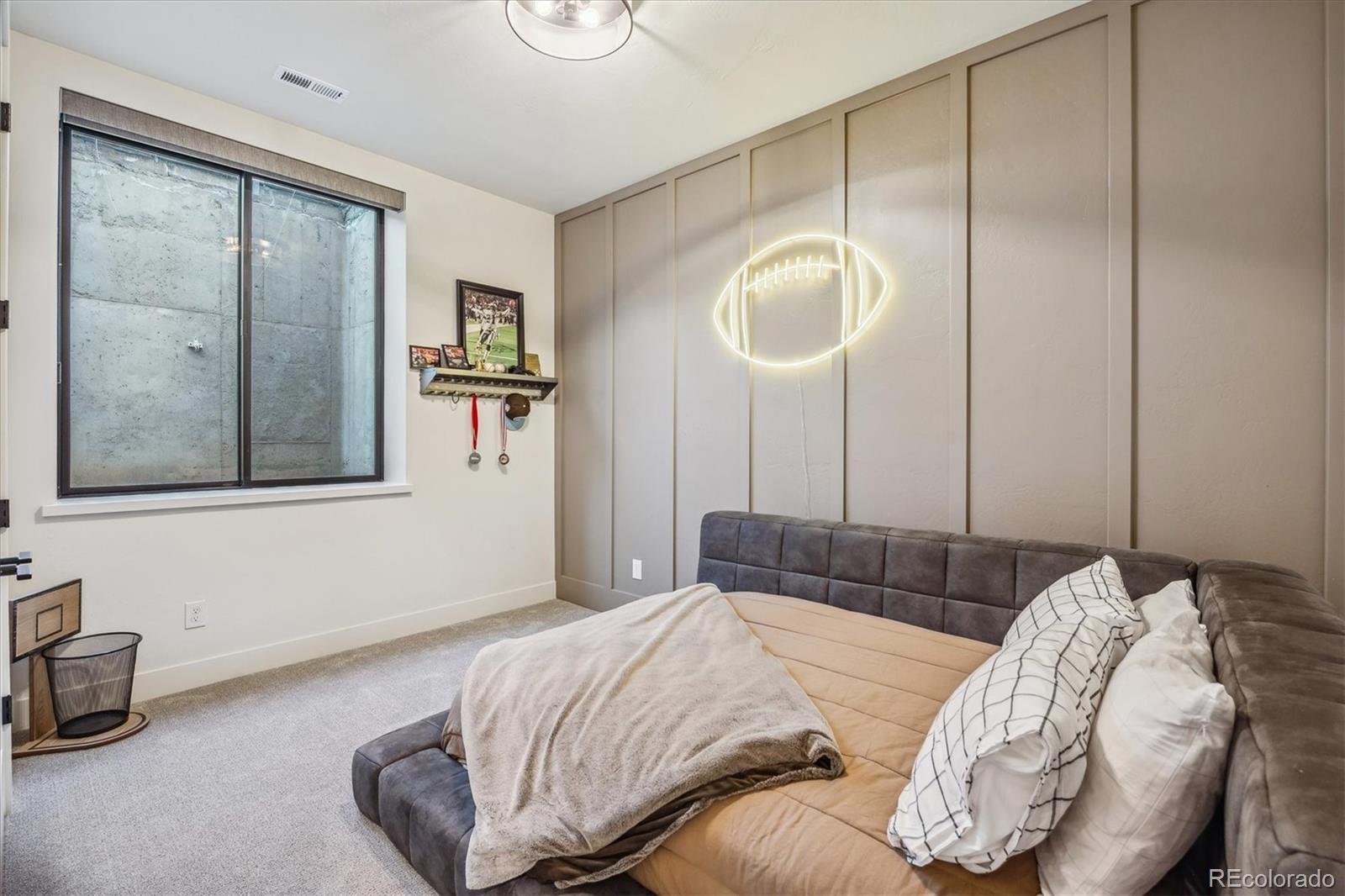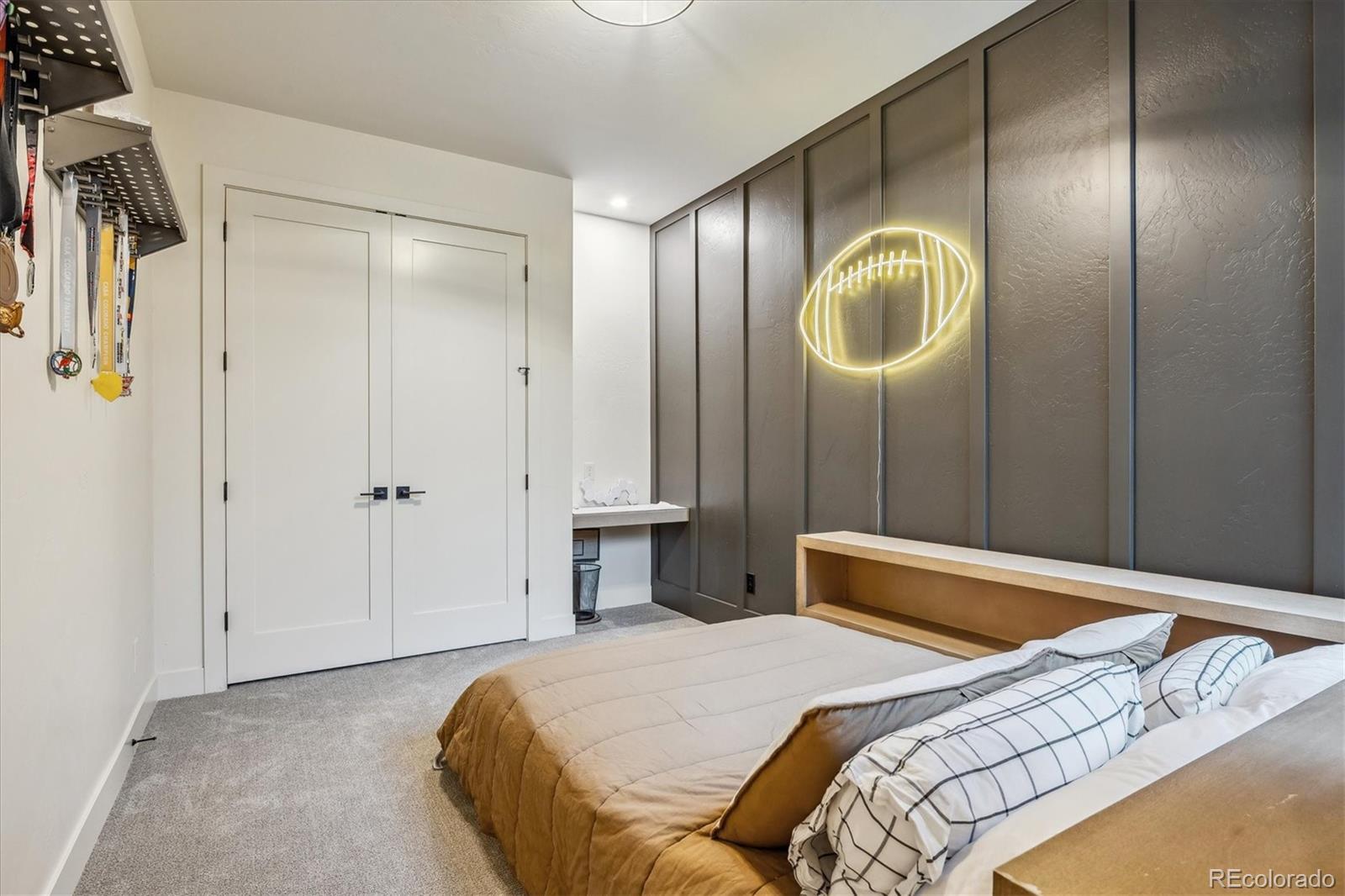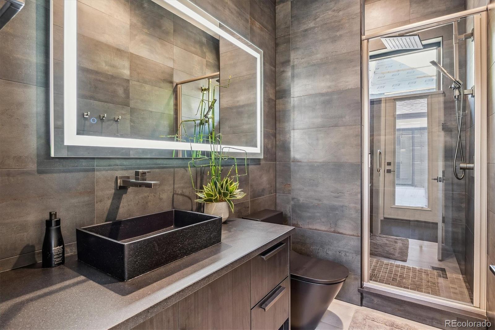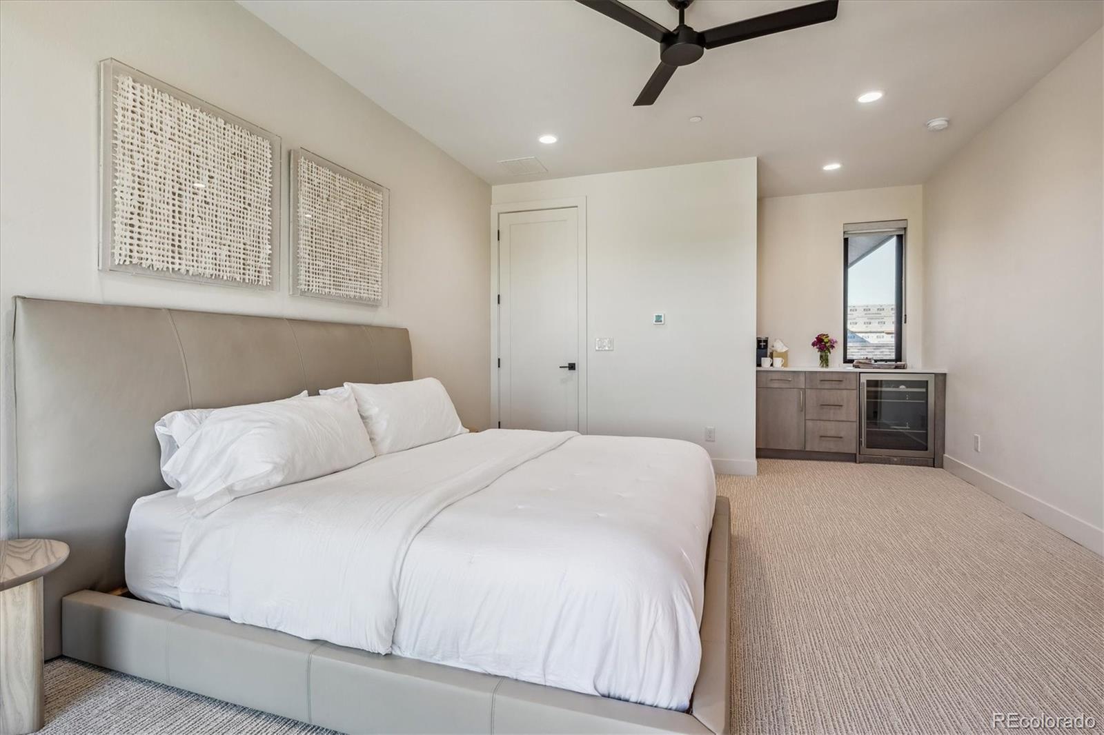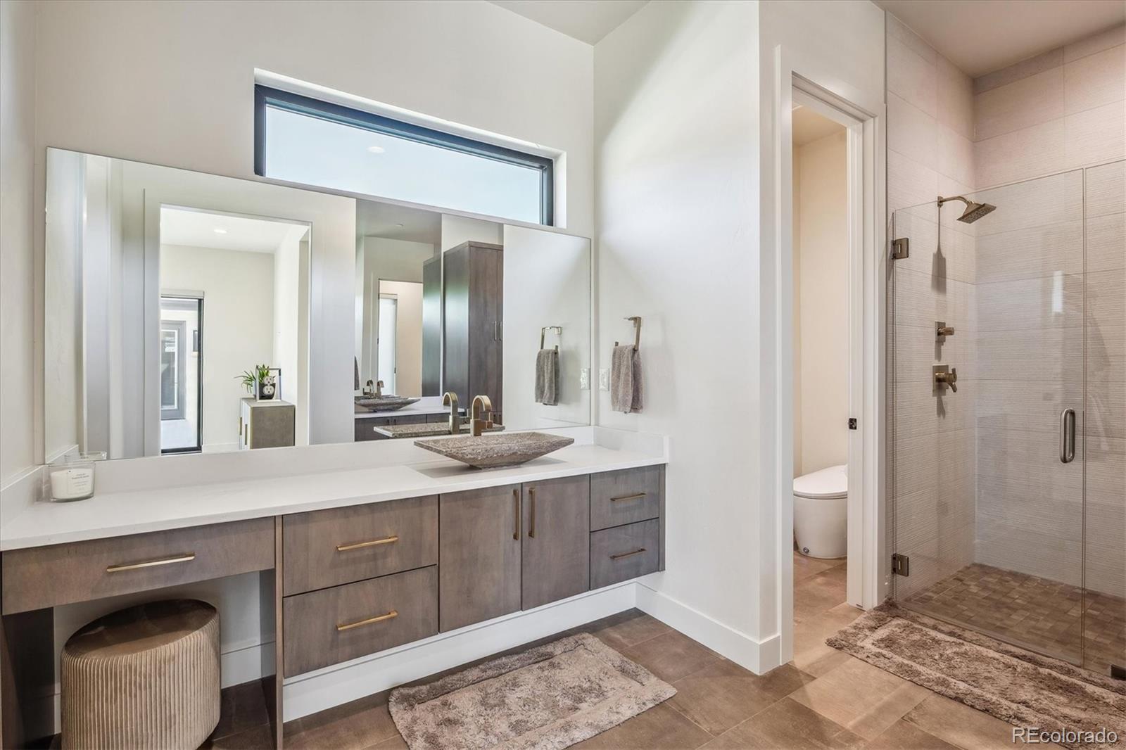 An extraordinary embodiment of sophisticated contemporary living is masterfully presented in this bespoke architectural marvel nestled w/in the prestigious Carr Estates community. The home's striking, clean aesthetic is complemented by meticulously curated finishes, unmatched construction quality, and an unwavering attention to detail. An expansive open floor plan showcases luxurious hand-trowelled walls, elegant white oak European flooring, custom lighting features, and soaring 20-foot ceilings that create a breathtaking ambiance and seamless indoor/outdoor connectivity. Designed for modern elegance, the residence incorporates cutting-edge automation with Lutron solar shades and a state-of-the-art integrated Sonos sound system. The chef's kitchen stands out as a centerpiece of sophistication, refined finishes, high-end built-in appliances, custom cabinetry, and a generously sized kitchen. Outside, the property boasts expansive outdoor living spaces, anchored by a custom outdoor kitchen, a built-in gas firepit, and a luxurious in-ground pool and hot tub. The main-floor primary suite offers a true retreat, featuring a spa-like bath and a custom closet designed by Colorado Space Solutions, providing both luxury and convenience. The residence boasts a fully equipped Rogue Fitness gym and sauna, in addition to two main-floor home offices that cater to work-from-home needs. An upstairs guest suite or private sixth bedroom boasts a wet bar and a covered balcony. The expansive basement serves as an entertainer's dream, featuring a spacious recreation room with a wet bar, as well as ample room for gaming tables and other activities. Completing the lower level are 4 addtl bedrooms, 2 full bathrooms, a second laundry room, and abundant storage space. Situated on a generous corner lot, this remarkable home offers immediate access to local amenities, top-rated schools, and fine dining options, ensuring that residents enjoy an unparalleled lifestyle of luxury and convenience.