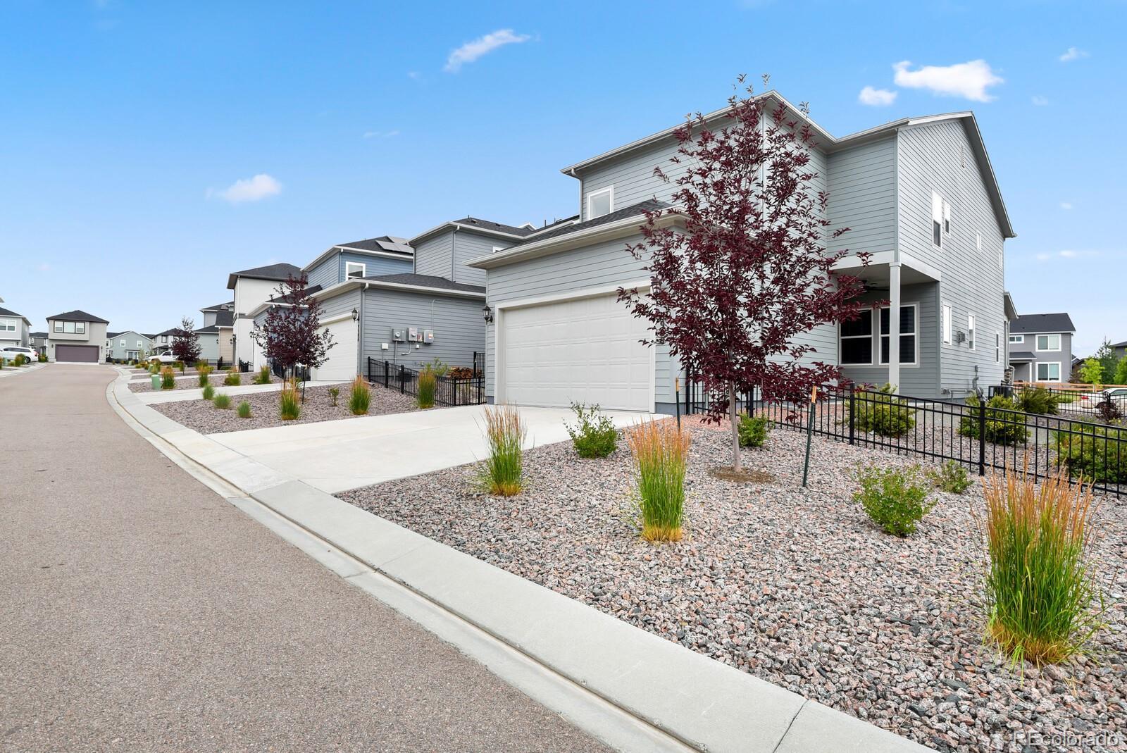 Beautiful single family home w/all the bells & whistles ($70K+ in upgrades) Located in desirable Wolf Ranch! One owner; turn key! Feels new, built in 2022 by David Weekly, been around 45+ yrs. Landscaping is done & custom blinds. Coleton floorplan w/exterior E on lot 10. 3 bedrooms (easy 2 add a 4th bedroom in basement), 4 baths with 3,345 sf. Wall gas fireplace @ family room w/tile surround. Quartz countertops. Decorative tile flooring. Luxury plank vinyl. Black finish light package. Stained handrails. Formal dining @ front of home; could be used as a toy room, office...Gourmet kitchen has 42" cabinets w/crown molding, 36" 5 burner gas cooktop w/ designer vent hood. Builtin double oven & microwave. Kitchen island w/ barstool space. Pantry. Counter space 4 a coffee bar. Subway tile backsplash. Room for eat in area at the family room. Half bath on main level off garage. Coat closet & built in mudroom space. Upstairs u will find the bedrooms, loft & laundry. Master bath has 2 sinks & the super shower w/ rain head. Frameless. Double closets. Guest bathroom upstairs w/linen closet. Guest bedrooms have walk in closets. Loft can be used as whatever u feel u r missing. Laundry room has a drain, shelf, sink & cabinet. Open space in the basement. Great game room w/full bath & wet bar. If u need a 4th bedroom add a wall since closet & window already there. Exterior side patio w/ceiling fan. Attached 2 car alley load garage with 8' Wayne Dalton door. Spigot & 20 amp GFI. Street parking in front. HOA takes care of snow removal & maintains ur private fenced Xeriscaped yard, drip system w/gate. Lots of storage. Ecobee. A/C unit. Rheem tankless gas water heater. Whole house fan; master zone/zoning system. Radon mitigation system. Sump pump. Garage & front door has keypads. Colorado Springs utilities. Transferrable builder warranty. Peaceful community w/award winning schools. Perfect location 4 all. Enjoy some fresh air while on the trials. VA Assumable loan; current rate 4.625%.