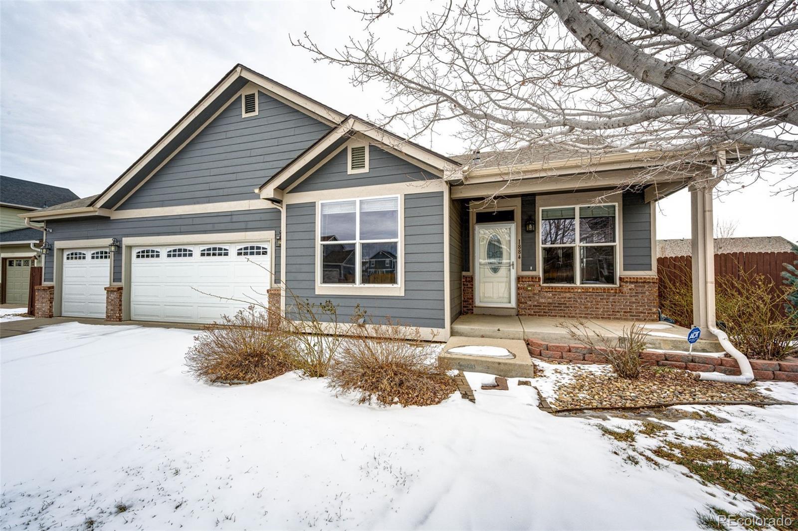 Ranch style home offering 5 bedrooms and 2 bathrooms. 2500 finished square feet. Main floor offers openness with the high ceilings and a cozy gas fireplace in the great room. The kitchen and both bathrooms have beautiful Calcutta quartz counter tops. The kitchen also offers a beautiful hexagonal back splash to compliment the counter tops, stainless steel appliances, pantry, breakfast bar and the exit to the backyard. The en suite offers vaulted ceilings and 2 walk-in closets. The e-suite bathroom has a standup shower and dual vanities with quartz counter, and the main bath has the tub/shower combo and quartz counter top. The 3rd bedroom on the main floor also works well as an office, reading room or additional media room as it has glass french doors. The laundry is conveniently located on the main floor and the washer and dryer are included. The basement is finished with 2 bedrooms, a spacious family room and rough-in bath for future finish. Roof replaced in 2023. Furnace and central air conditioning are newer and water heater is one year old. Carpet throughout was installed July, 2025. There is a covered front porch for visiting with neighbors. The fully fenced backyard has an expansive patio for BBQ's, entertaining or relaxing.