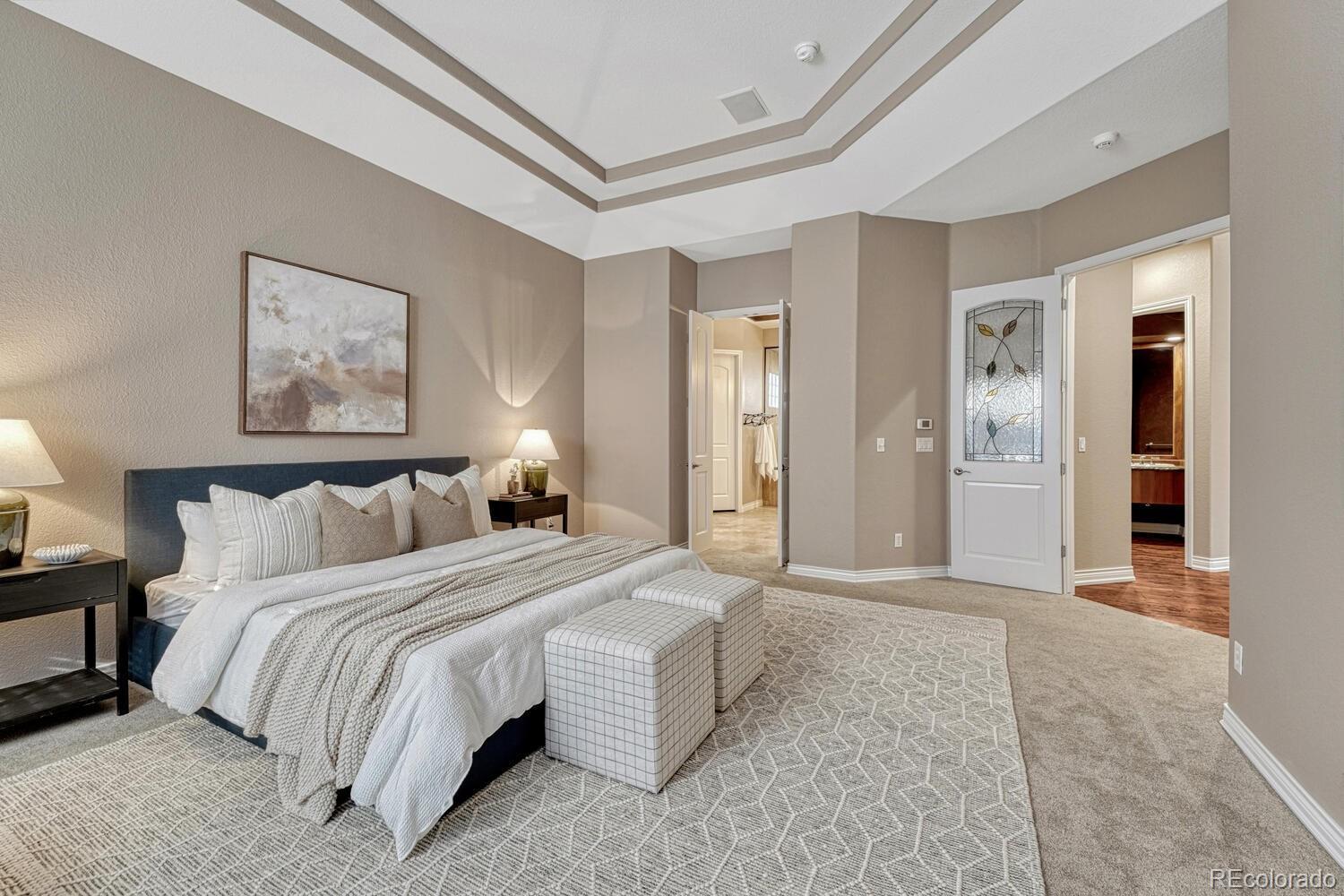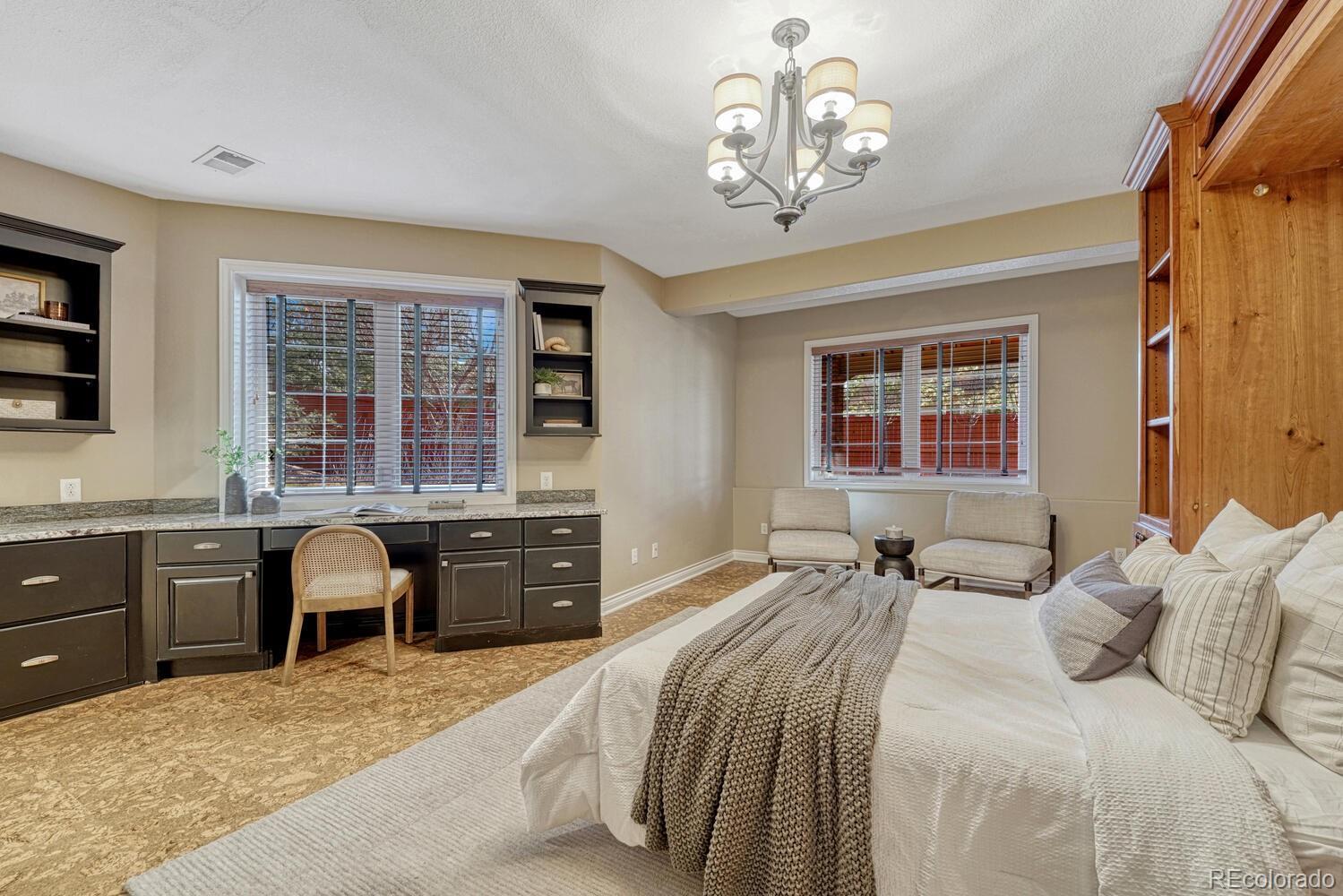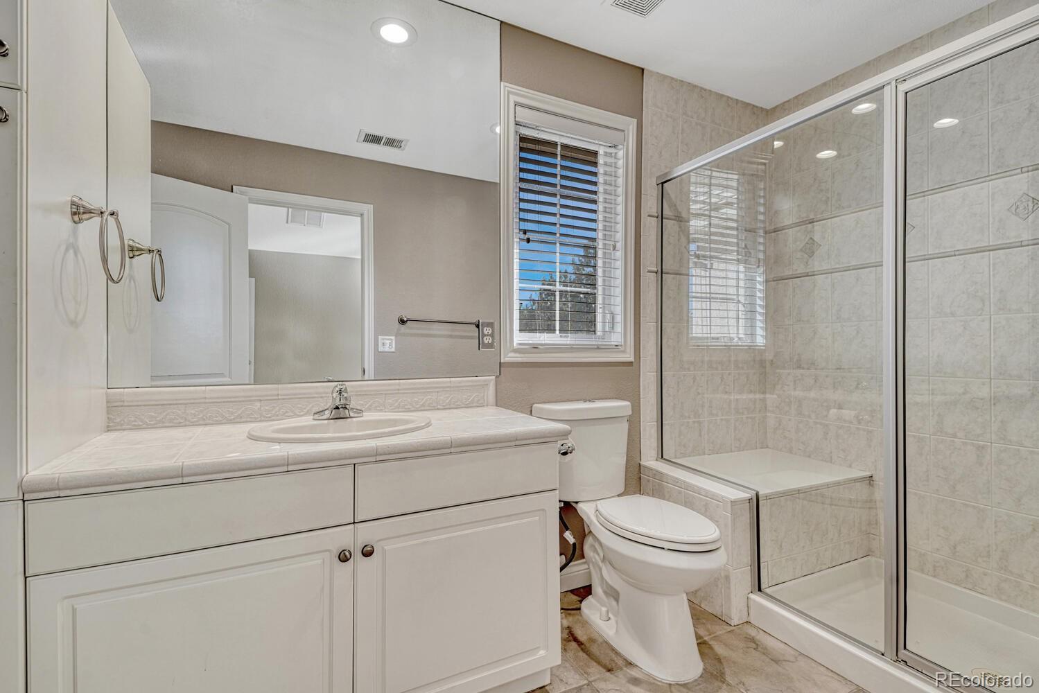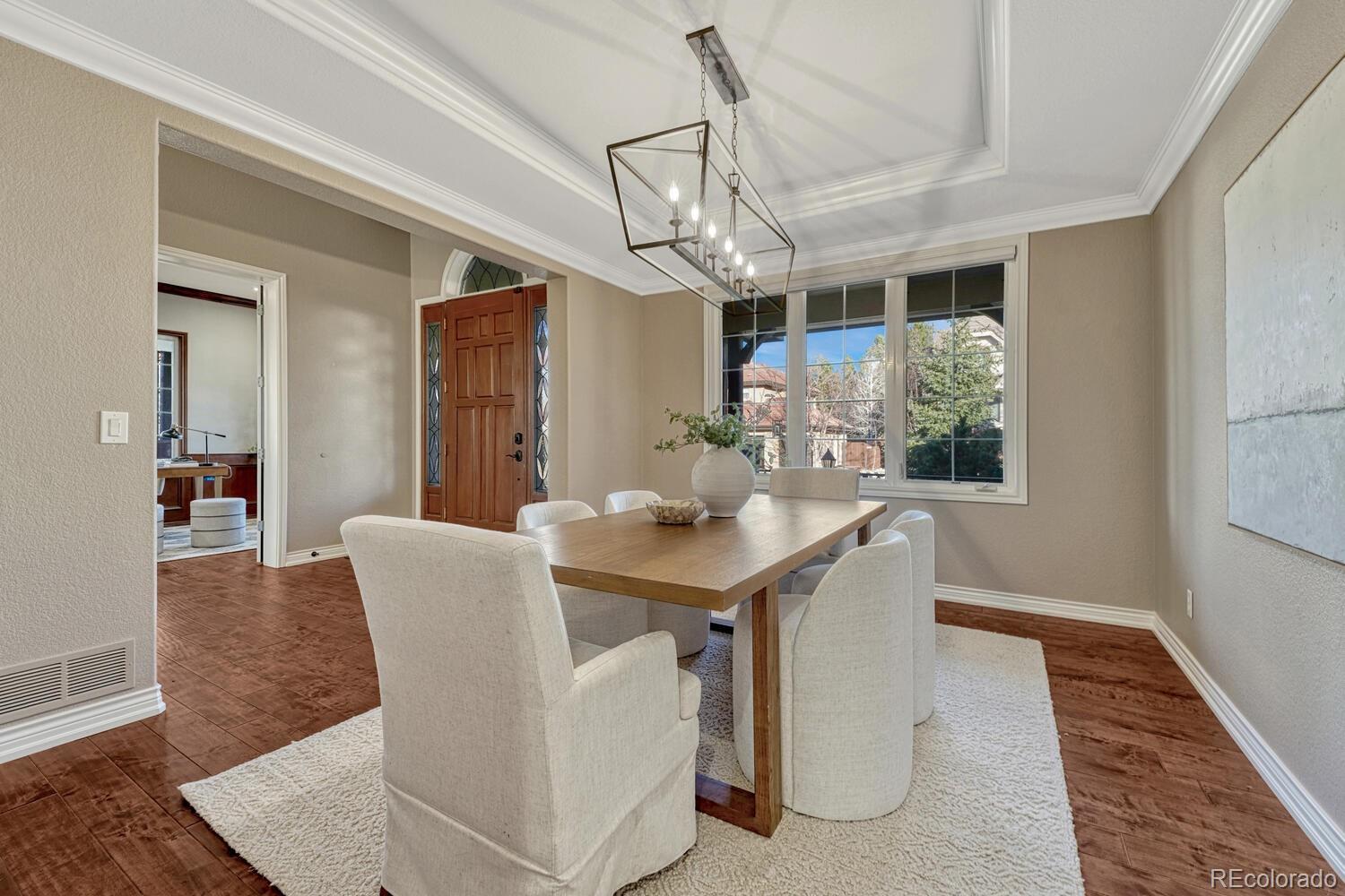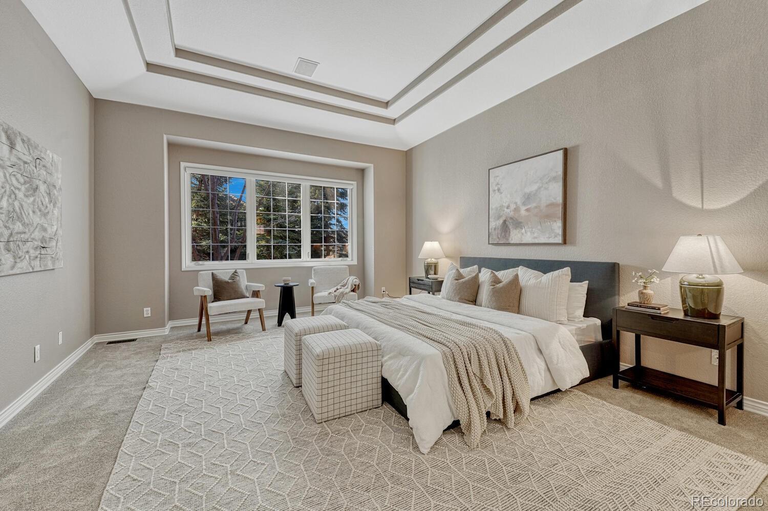 Situated on a beautiful corner lot in the highly coveted Heritage Hills neighborhood of Lone Tree, Colorado, this exceptional five-bedroom, six-bathroom home offers a rare blend of luxury, comfort, and thoughtful design. Surrounded by mature trees and set back for privacy, the home makes a striking first impression with a charming wraparound front patio that invites you to relax and enjoy the peaceful setting. Inside, the layout is ideal for both entertaining and everyday living, highlighted by a highly sought-after main-floor primary suite. This private retreat is designed as a true sanctuary, featuring a spa-like bathroom and dual walk-in closets, offering both comfort and functionality. Additional bedrooms are generously sized and thoughtfully designed, each with convenient access to its own bathroom, providing privacy and flexibility for family and guests alike. The main living spaces are expansive yet warm, flowing seamlessly to an impressive deck that overlooks the surrounding landscape. Perfect for hosting gatherings or enjoying quiet mornings, the deck offers an extension of the home’s living area and a sense of retreat rarely found. The expansive basement adds incredible versatility, featuring a dedicated home gym, an additional bedroom with an en suite bathroom, and a very large recreational space ideal for entertaining, movie nights, game tables, or multi-purpose living. This level offers the flexibility to accommodate guests, hobbies, and lifestyle needs with ease. Located in one of Lone Tree’s most desirable communities, Heritage Hills is known for its elegance, strong sense of community, and proximity to top-rated schools, scenic trails, dining, and shopping. Completing the home’s thoughtful amenities is a heated driveway, providing year-round ease and effortless Colorado living.