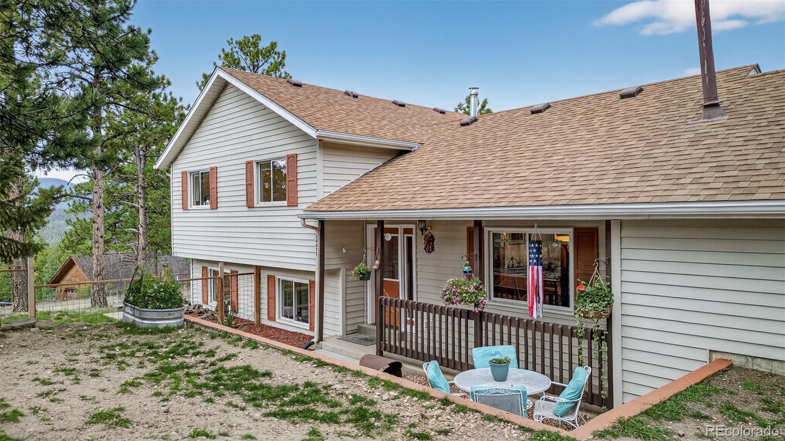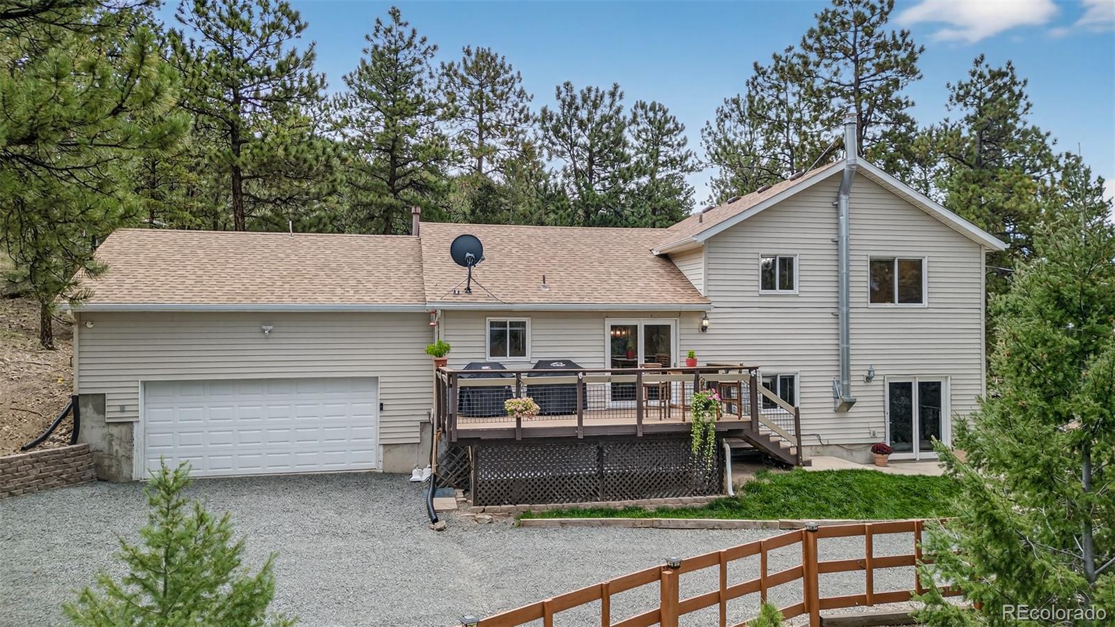 MOTIVATED SELLER LOOKING FOR CLOSING BY YEAR END! BRING ALL OFFERS! Want real-time alerts/updates on this property? Go to FINALOFFER.com and "heart" this property to receive alerts with more info, such as a FLASH SALE, BUY-IT-NOW options, offer RANKING, and/or any REVERSE OFFERS.*** Tucked into a serene setting just 30 minutes from the Denver Metro area, this home offers the perfect blend of mountain charm & modern convenience. Designed for comfort & connection to nature, it provides a quiet retreat with panoramic views of Mt. Blue Sky (Evans) & Mt. Rosalie—constant reminders of Colorado’s beauty. Nearby open space parks and trails offer endless opportunities to hike, explore, & enjoy the Colorado lifestyle. Inside, warm hardwood floors & abundant natural light create an inviting atmosphere, while a cozy wood stove makes the perfect gathering spot on chilly evenings. The kitchen features updated stainless-steel appliances—including a convection oven, gas cooktop, space-saver microwave, dishwasher, & refrigerator—with a window that beautifully frames the mountain views. Tastefully remodeled bathrooms add a fresh, modern feel while honoring the home’s natural surroundings. Outdoor living is equally inviting. Relax on the covered front porch or enjoy the sunshine on the composite deck, ideal for taking in the tranquil setting & mountain vistas. Major improvements include a new roof (2019), a boiler with side-arm water heater (2018), & efficient in-floor radiant heat. The oversized two-car garage provides ample storage/workspace, with 220V service & a rough-in gas line for future heating. The unfinished garden-level basement offers flex space plus the unique “vault”/bunker space is perfect for wine storage, hobbies, or creative use. This home captures the best of mountain living—peace, character, and natural beauty—with easy access to Denver. Whether you’re seeking a full-time residence or a weekend getaway, this property is ready to welcome you home.