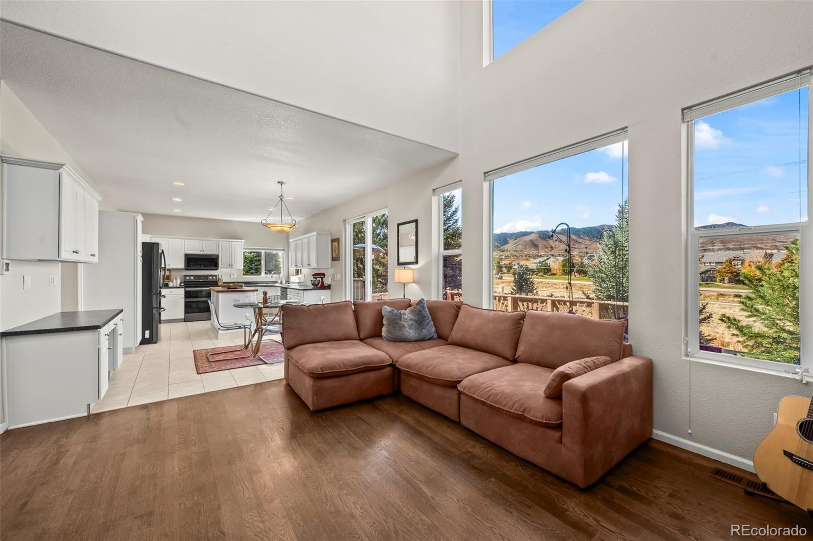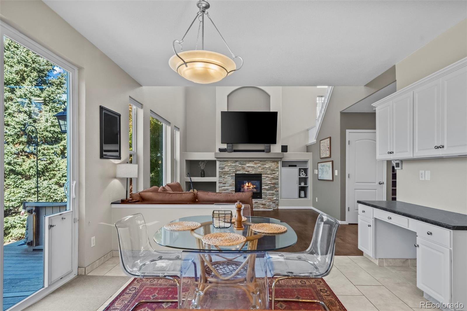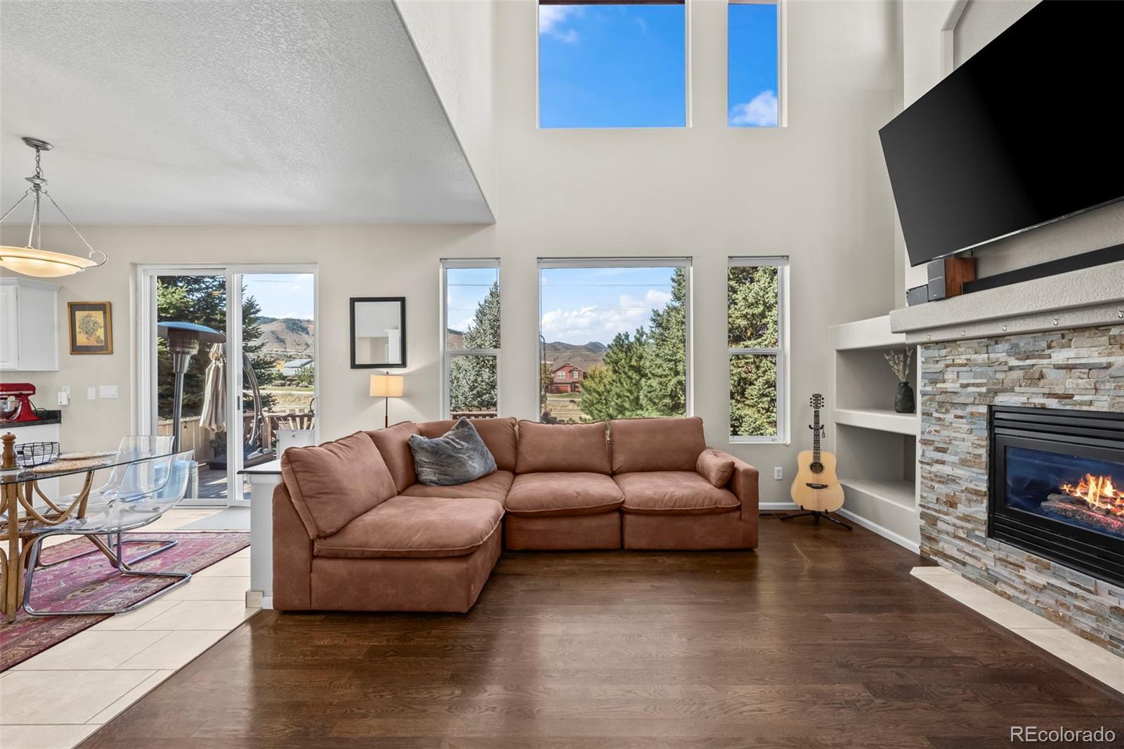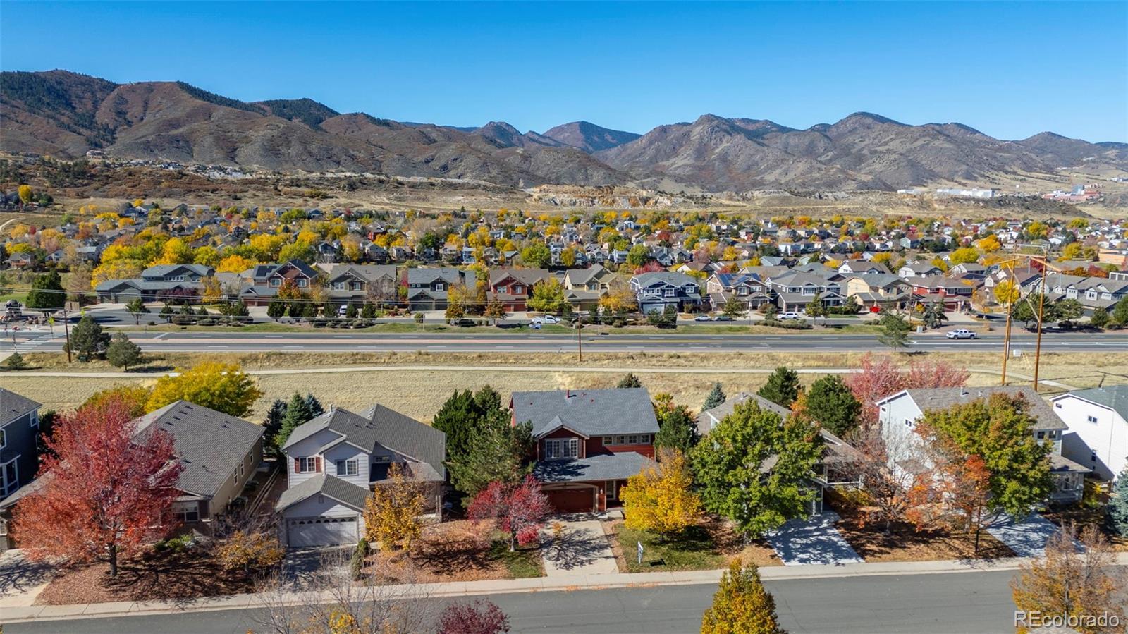 Enjoy breathtaking, unobstructed MOUNTAIN VIEWS from this beautifully updated home in Roxborough Village. Soaring vaulted ceilings, tall windows, and an open floor plan fill the home with natural light and frame the incredible backdrop of Colorado’s Front Range. The main-level living room features a gas fireplace, custom built-ins, and expansive windows showcasing the mountain views, seamlessly connecting to the updated kitchen with newer stainless steel appliances, a kitchen island, and ample counter and storage space, including a large pantry. From the kitchen, step out to the spacious west-facing deck to take in the sunset over the mountains and enjoy true indoor/outdoor living. The front room—currently used as an office—offers flexible space and would make an ideal formal dining room. The main level also includes a powder bath, a large laundry room, and an attached two-car garage. Upstairs, the primary suite captures stunning mountain views and features a en suite bath and large walk-in closet. Two additional bedrooms and a full bath complete the upper level. Ideally located near open space and scenic trails, including Crystal Lake, Roxborough State Park, and the Arrowhead Golf Course, this home offers the best of Colorado living. Shops, restaurants, and groceries are all within walking distance. Don’t miss this opportunity to own a home with unbeatable views and an incredible lifestyle!