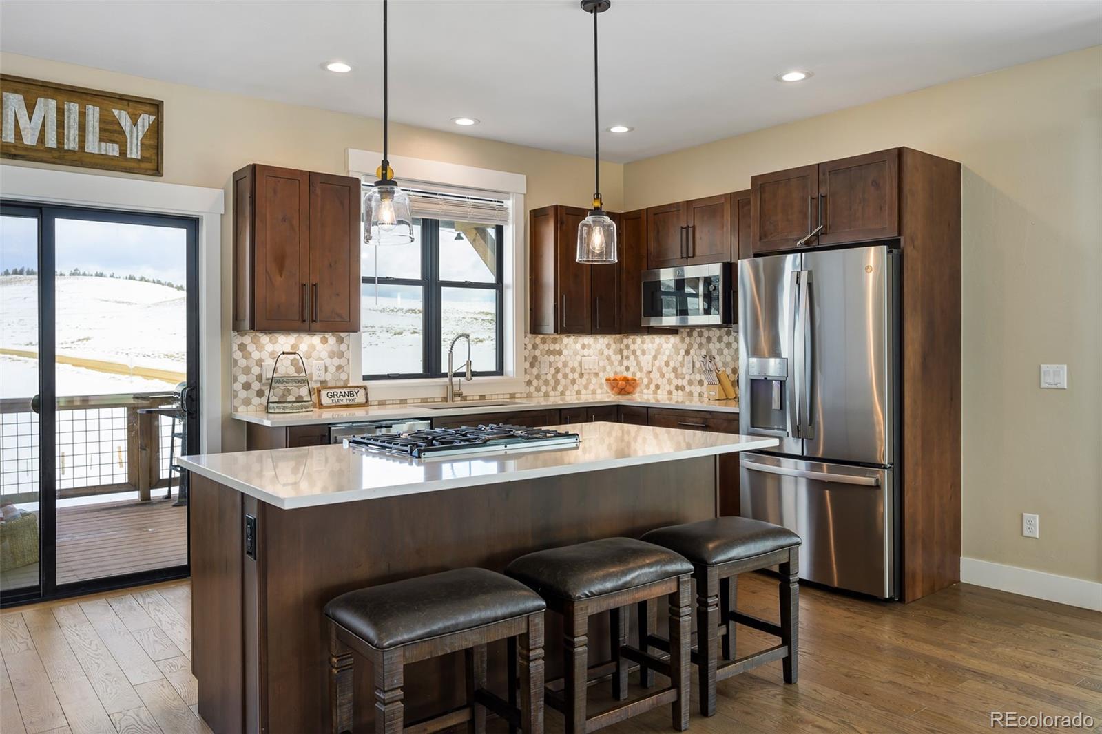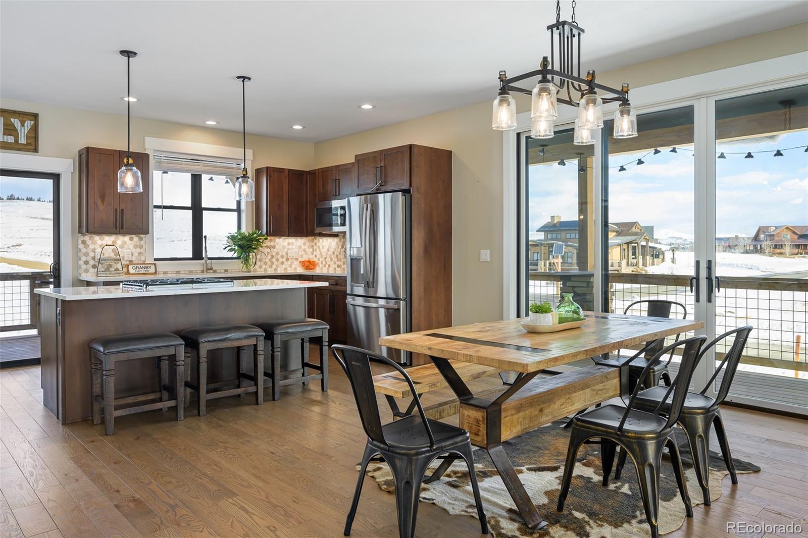 This exquisite 4-bedroom, 3.5-bathroom residence, completed in 2022, offers a remarkable investment opportunity, having generated $93,000 in gross rental income last year. The wrap-around deck on this corner lot enhances views of Rocky Mountain National Park, Grand Elk Golf Course, and expansive landscapes. The home features premium finishes, including quartz countertops, genuine hardwood flooring, and custom tile work. The open great room layout is highlighted by upscale light fixtures and a fully stacked surround fireplace, combining elegance with comfort. With two living areas and four spacious bedrooms, this home is perfect for families and guests, providing ample space for everyone. Adjacent to Linke Ranch, the property ensures unmatched privacy and stunning views from every window, complemented by an abundance of natural light. A large wrap-around deck beckons you to unwind and enjoy the beauty of the surrounding scenery. Situated in the prestigious Grand Elk Golf Community, this home comes with a membership that offers access to various amenities, including unlimited golf, a swimming pool, and hot tubs. This property is distinguished by its exceptional quality and meticulous attention to detail, providing a luxurious living experience without the complications of new construction.