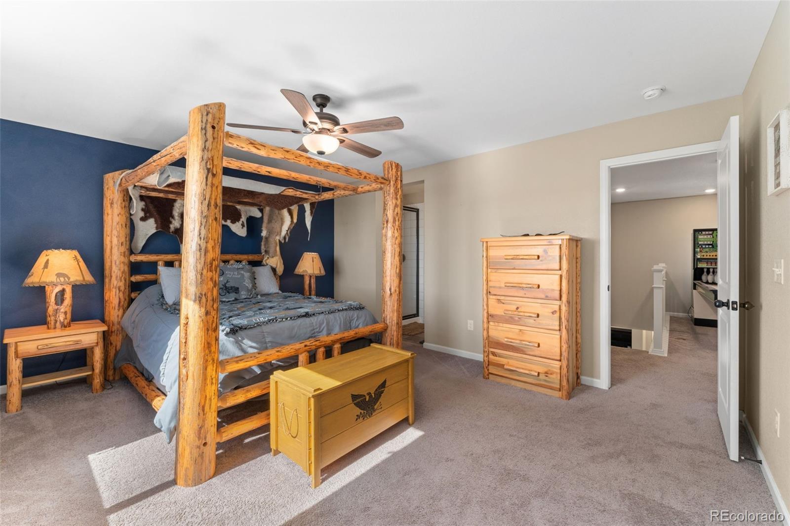 Looking for a golf course home without the high price tag? Then this fantastic 4-bedroom, 3-bath home built in 2021, perfectly situated in the sought-after Coyote Creek Golf Course community is it! Offering nearly 2,500 sq ft of modern living space, this home features an open-concept design with a spacious great room, gourmet kitchen with granite countertops, stainless appliances, and a large island. The layout is ideal for entertaining or family gatherings. The main floor includes an office space and one bedroom, while the upper level offers a loft, two more bedrooms, convenient laundry, and a luxurious primary suite with a walk-in closet and en-suite bath. Enjoy outdoor living on the large patio overlooking the scenic greens and mountain views, plus a three-car garage and large shed for extra storage. With its blend of comfort, style, and location, this home captures the best of Colorado living in a peaceful golf course setting.