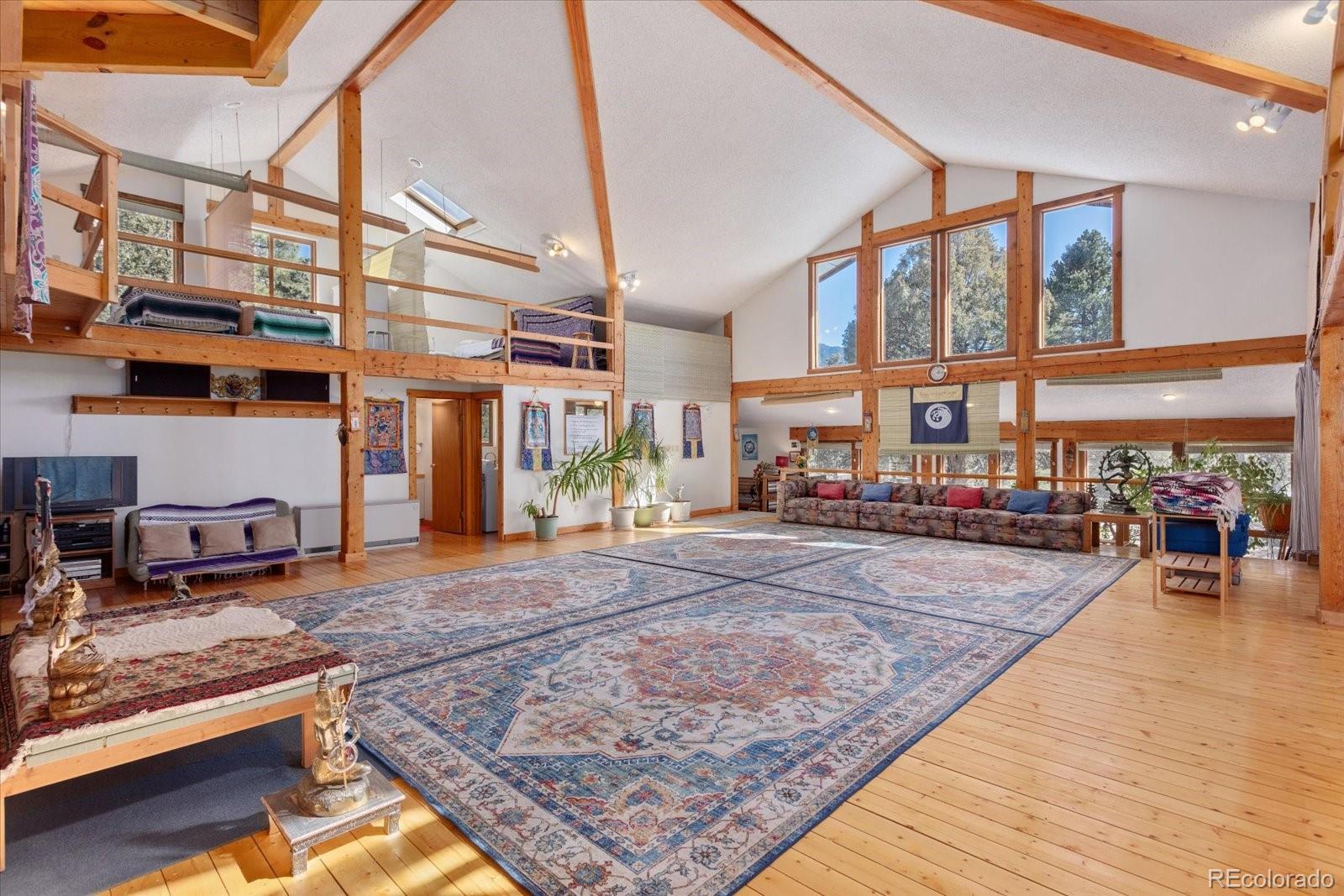 Discover Your Crestone Sanctuary: Flexible Home or Business Opportunity Escape to a world of tranquility and inspiration with this exceptional Crestone property, a rare gem tucked away in a private cul-de-sac along a paved road. Enveloped by majestic juniper, piñon, and mature lodgepole pine trees, this property offers unparalleled natural beauty and limitless potential, making it ideal for private residential living, a retreat center, or a creative business venture. The 3,584-square-foot facility is designed to foster connection, wellness, and creativity. This versatile space is perfect for meditative arts, yoga, martial arts, or wellness programs, or convert it into a home. With soaring ceilings and elegant post-and-beam construction, the area is flooded with natural light and exudes openness. The property also features a spacious kitchen for communal or private dining, two bathrooms, a sunroom for quiet reflection or meals, laundry facilities, and a combination of private and open loft-style accommodations upstairs. Whether you are seeking a serene home, a professional retreat venue, or a combination of both, this extraordinary property offers unmatched flexibility and a unique opportunity to create your vision in the heart of Crestone, where natural beauty, privacy, and inspiration converge. Additionally, this property could be purchased with 1691 Columbine (a 4-bed/3-bath manufactured home and 1693 Columbine, a 1.03-acre vacant lot) for a 3.78-acre homestead.