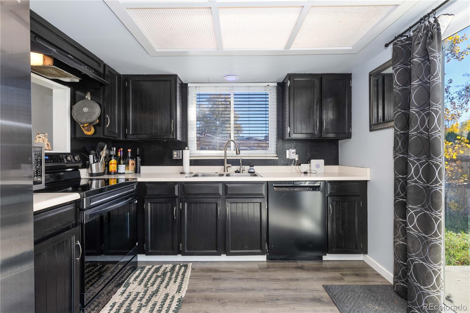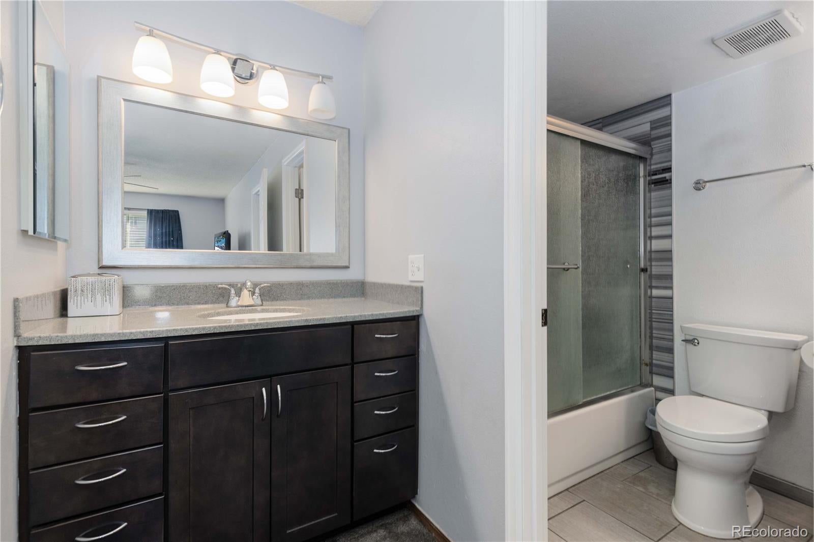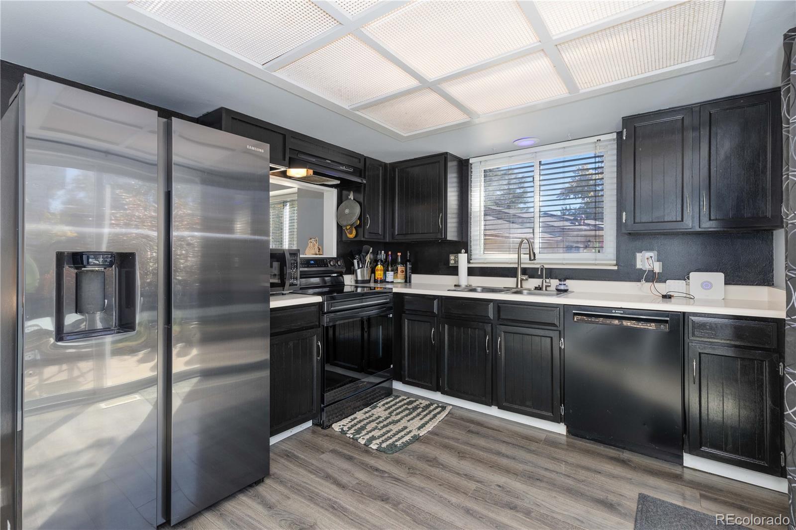 Fantastic Littleton location on a large corner lot in a quiet, well-loved community, great restaurants, and convenient shopping nearby. Enjoy the foothills lifestyle, just over an hour to world-class ski resorts. Step inside to find a warm, inviting home! The cozy living room with fireplace and soaring 2-story ceilings flows into the formal dining room and features new LVP flooring. The spacious kitchen includes a pass-through to the dining area and a sliding door to the private backyard and large patio—ideal for outdoor dining and relaxation. The main level offers two bedrooms, including the primary suite with a walk-in closet, private vanity, and direct access to the full bath. Upstairs, a versatile loft area and large bedroom—both with new LVP flooring—provide great flexibility for work or play. The newly finished basement expands your living space with two bedrooms featuring egress windows, a family room, LVP flooring, and a full bathroom—perfect for guests or a teen retreat. Extensive updates throughout include a new roof (January 2024), new exterior paint (January 2024), new interior paint (2024–2025), and new doors on the main level. The remodeled upstairs bedroom, bathroom, and loft feature updated tile, vanity, mirror, and fresh finishes. Additional recent improvements include a new furnace and central air (2022), new water heater (2022), solar panels (2024), new electrical panel (2024), and new side gate (May 2025). Energy-efficient solar keeps utility costs low, while proximity to great schools makes this home an exceptional find in Littleton. Welcome home!