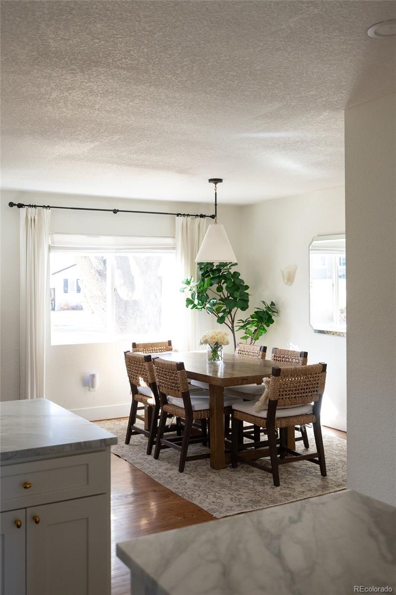 Welcome home to this thoughtfully upgraded ranch on a quiet street in University Hills. The seller invested heavily in high end finishes that are rarely seen at this price point. The kitchen features Calacatta marble countertops, a Zellige tile backsplash, Waterworks plumbing fixtures, custom woodworking and hood, and a Thermador appliance package. Designer Visual Comfort lighting and custom Roman shades are installed throughout the home, setting it apart from typical developer renovations. Between 2020 and 2021, the home underwent major system upgrades including a new roof, siding, windows, HVAC with central air, plumbing, and a fully updated electrical system with a new panel. Additional interior improvements include solid oak hardwood flooring and remodeled bathrooms. Both the front and backyard have been professionally landscaped with new irrigation and drip systems. The landscaping was fully redone with new sod, a premium wood fence, and upscale plantings including Limelight hydrangeas, a peach tree, roses, boxwoods, and dogwood shrubs. Behind the garage is a dedicated kitchen garden with four planter boxes. This is a turnkey home where high end quality was prioritized at every stage, don't miss this rare opportunity!